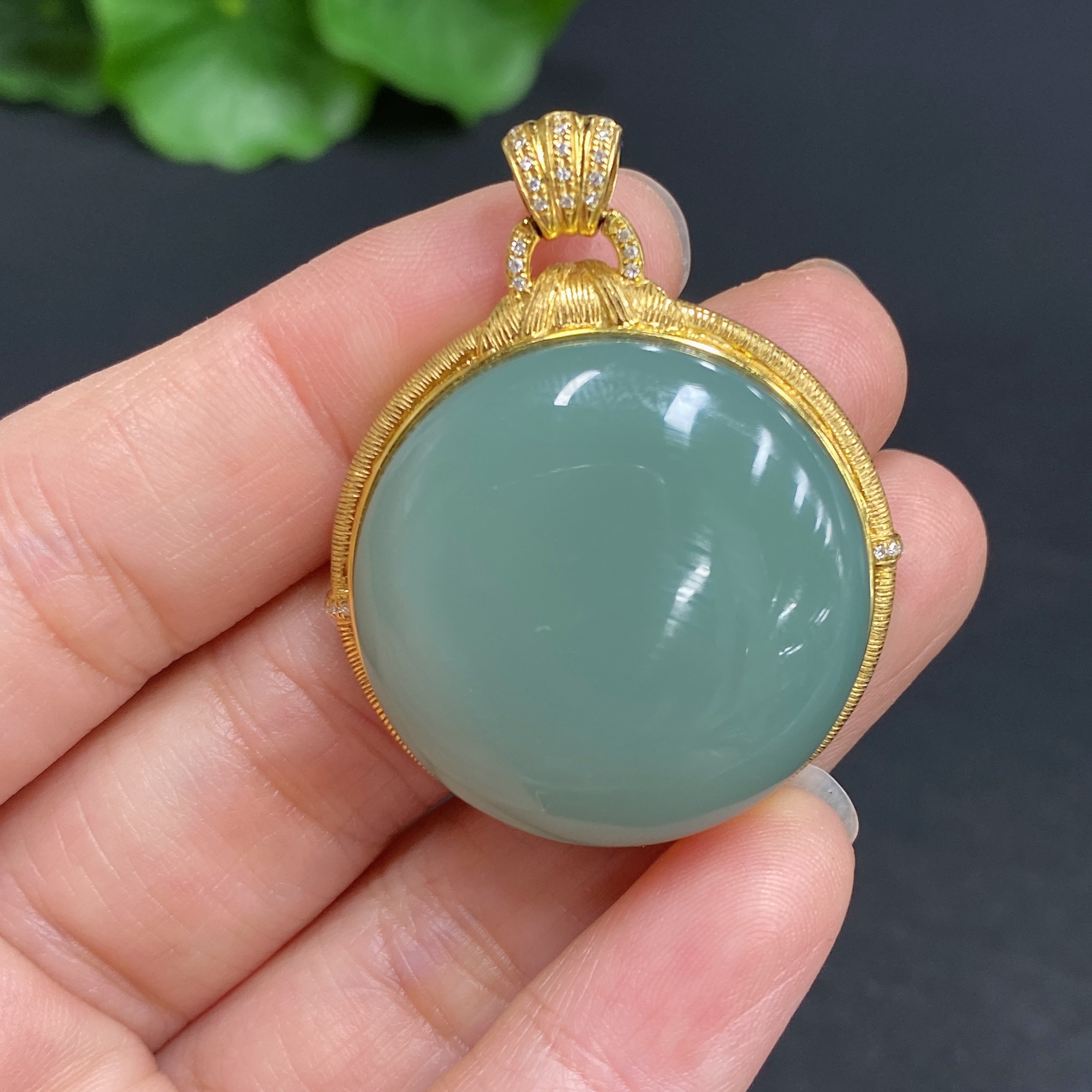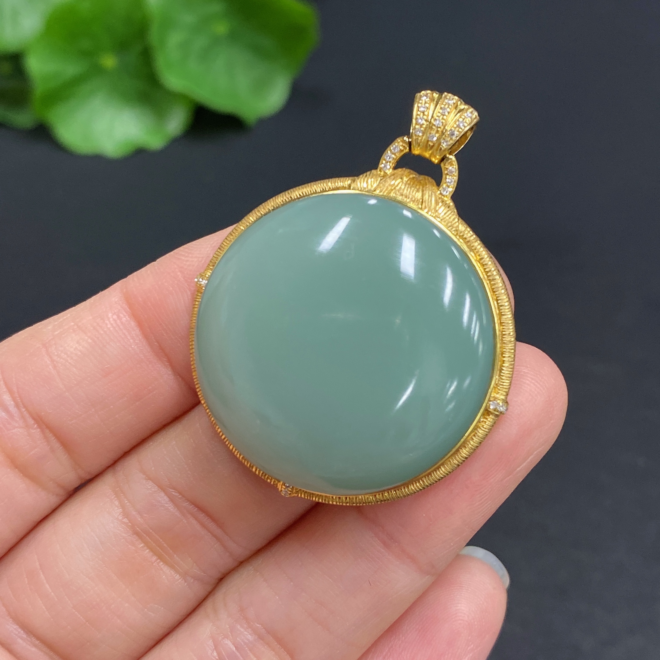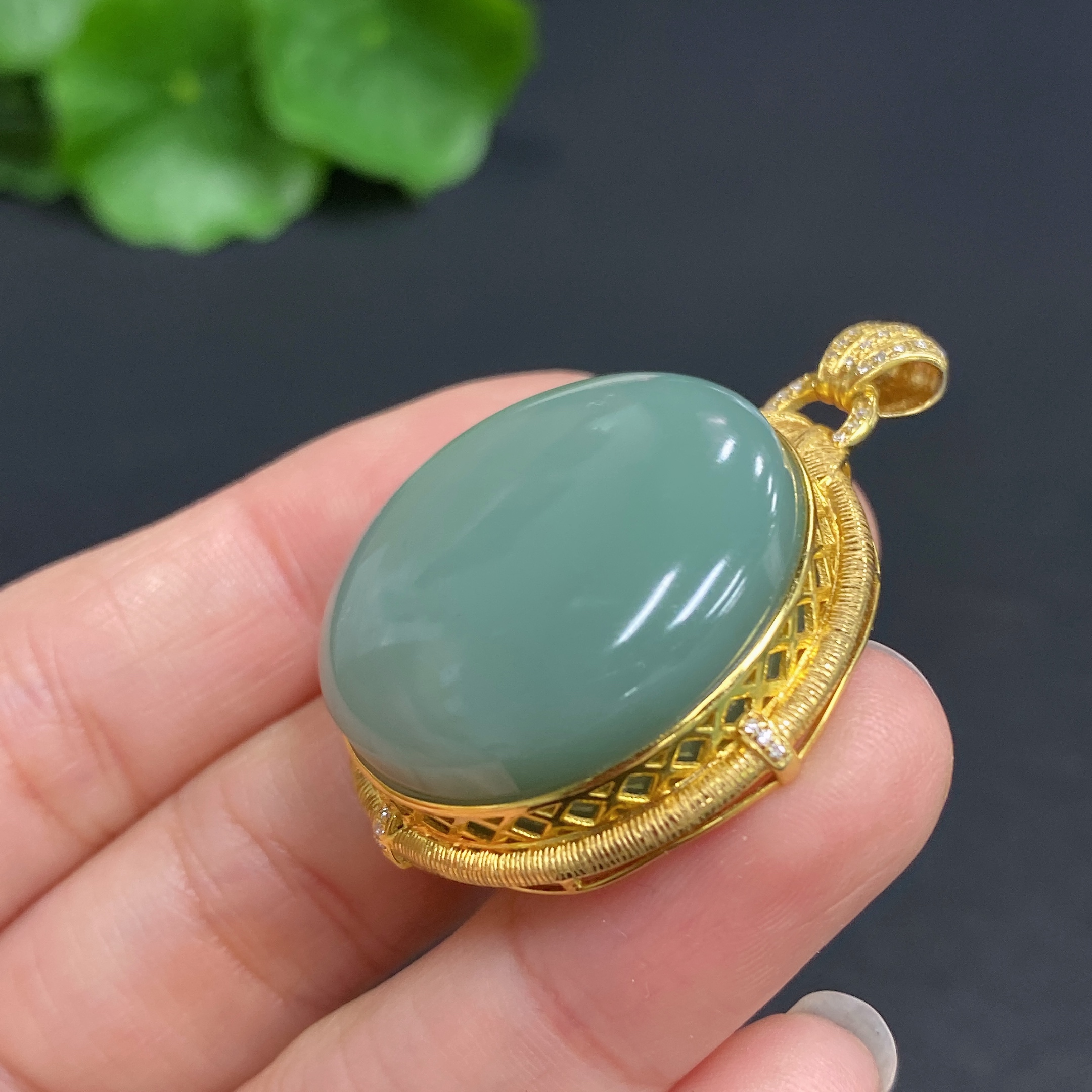 Hetian Jade Inlaid Plain Pendant 18k Gold Total Weight Approx.18.2g