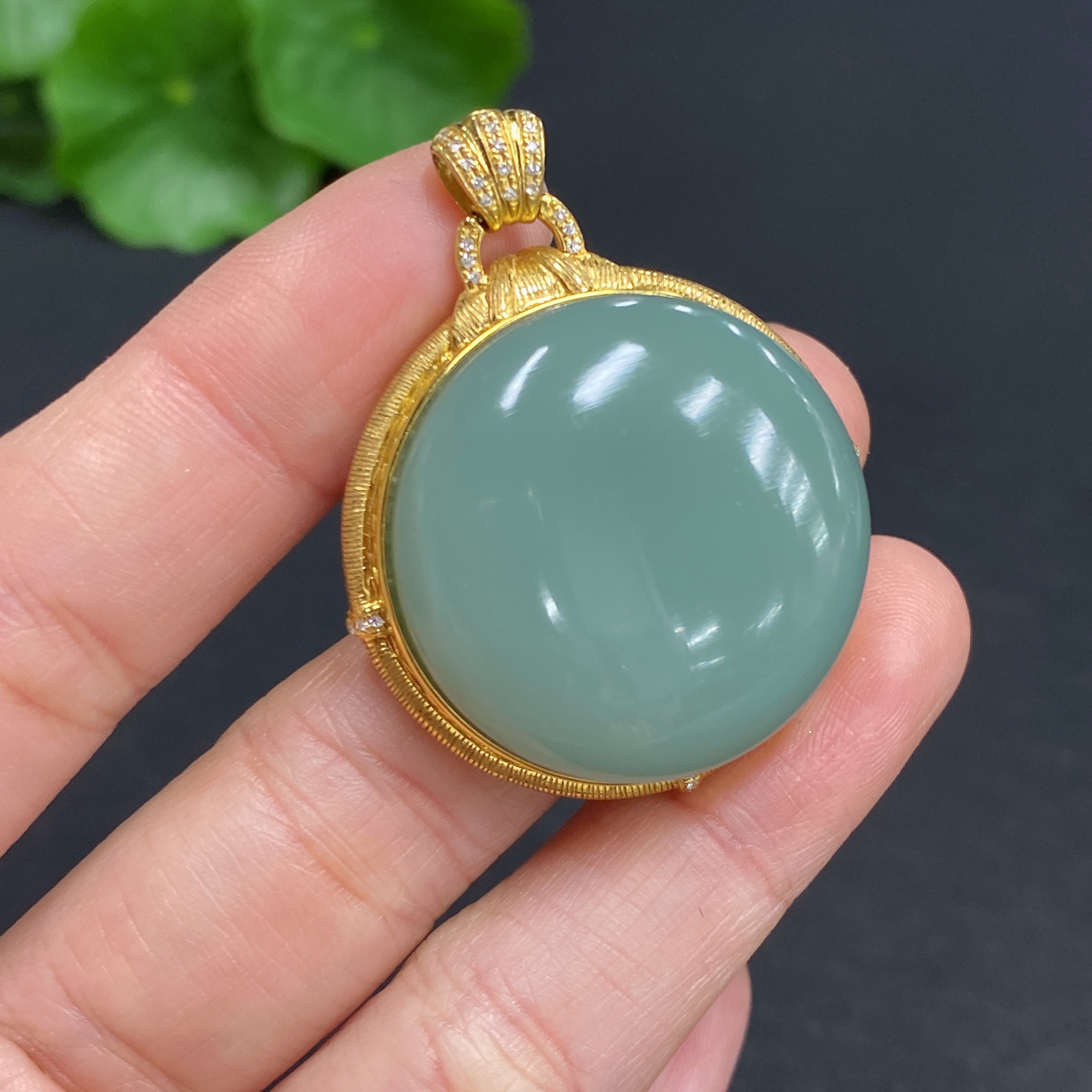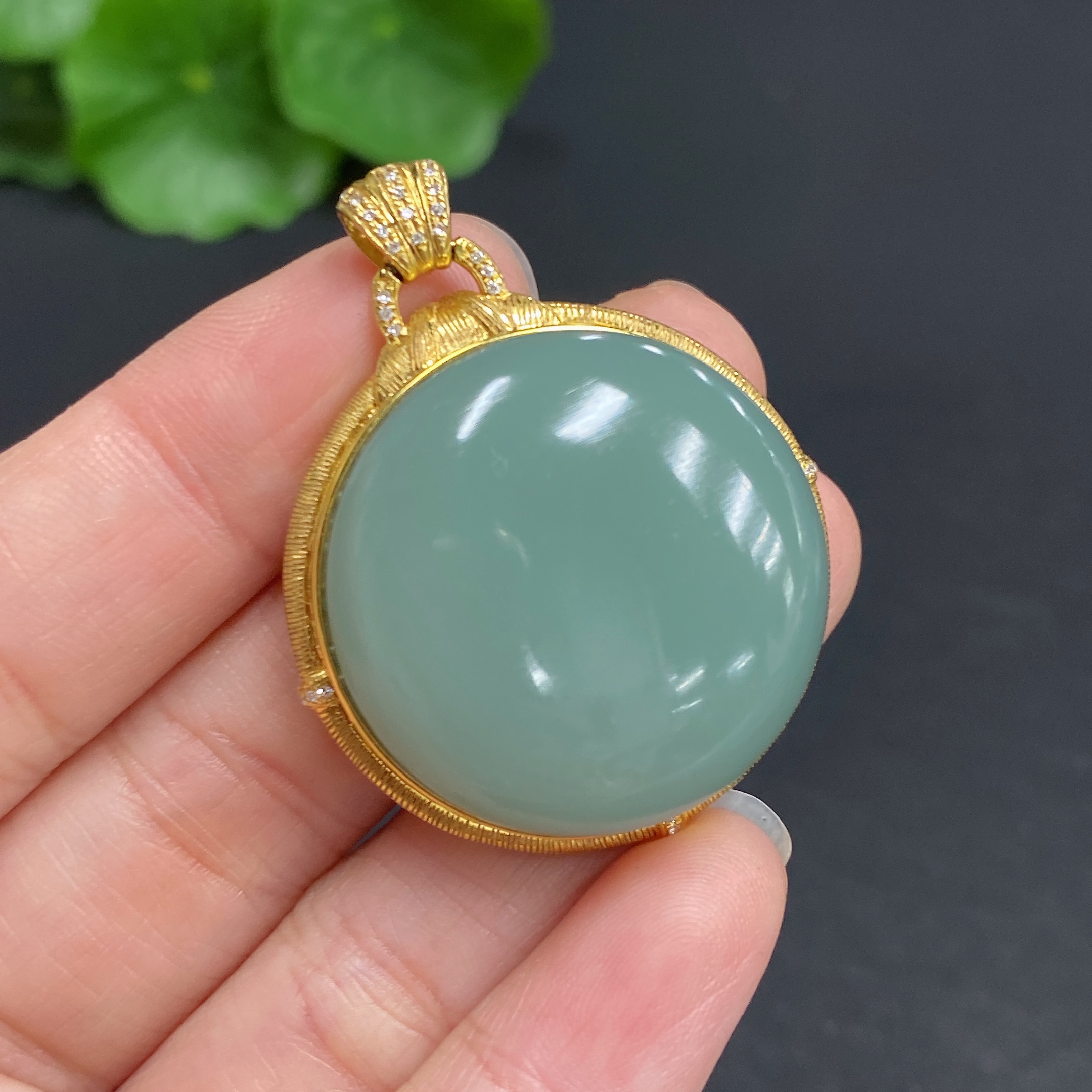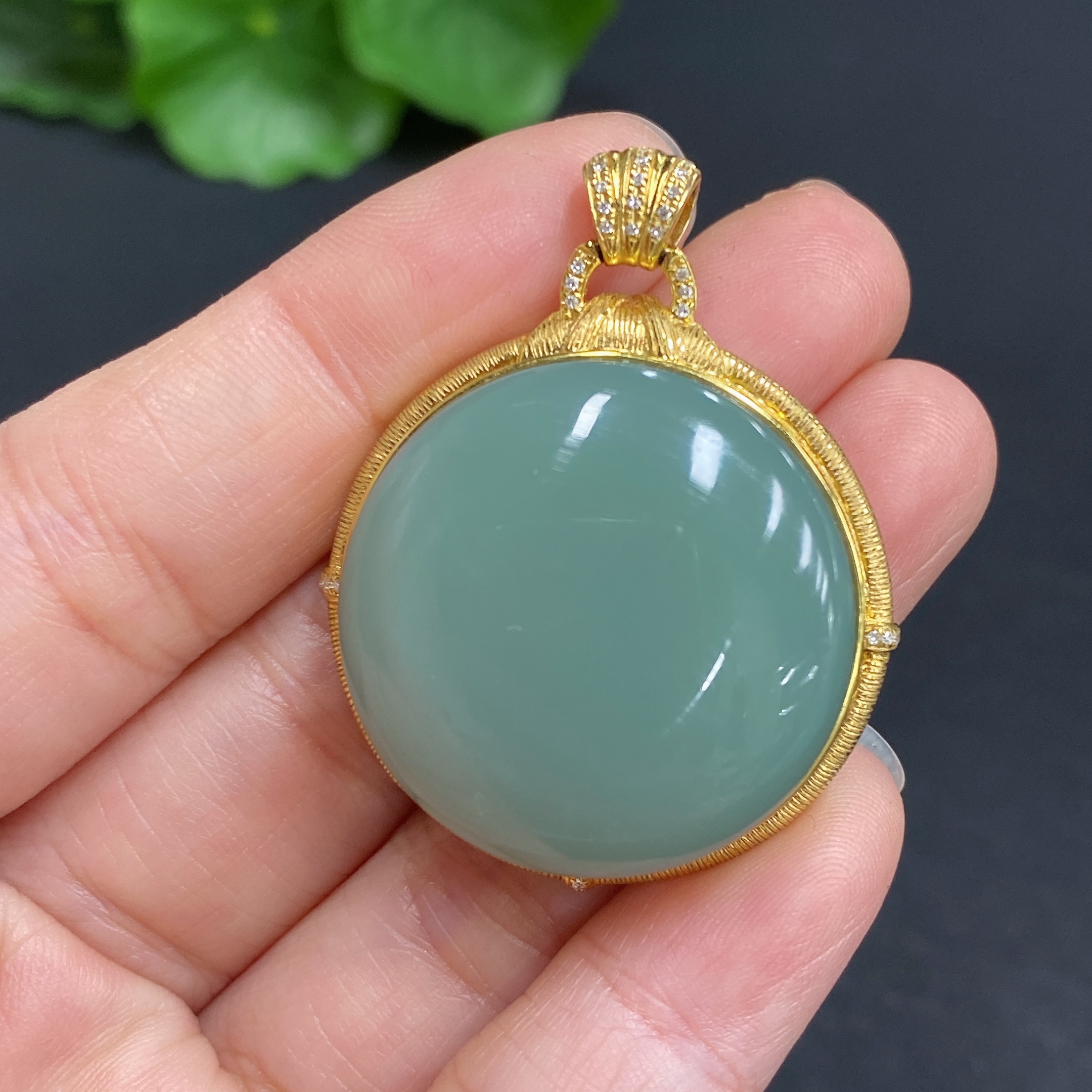 Trezaar - Hetian Jade Inlaid Plain Pendant 18k Gold Total Weight Approx.18.2g