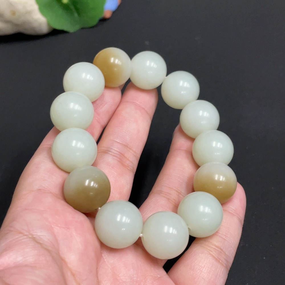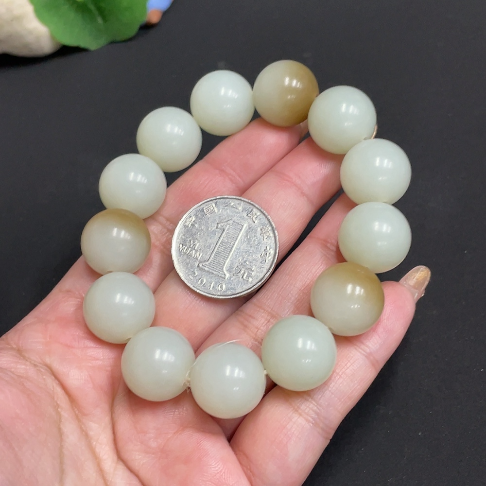 Hetian Jade Bracelet, Approx. 15.9 mm Beads, Total Weight Approx. 81.8g
