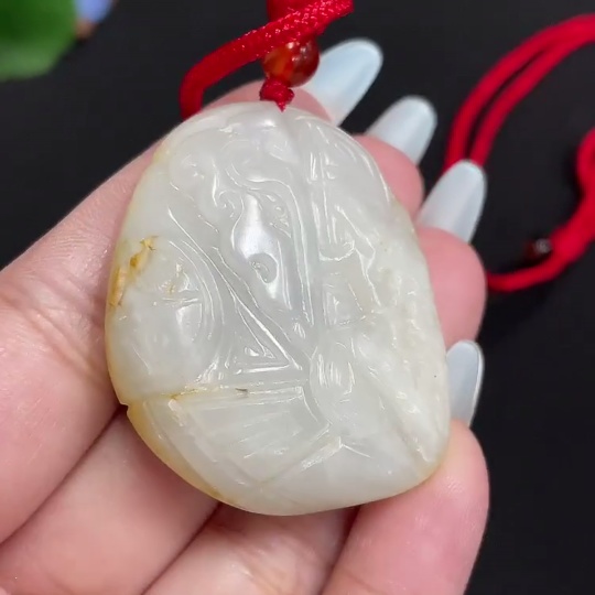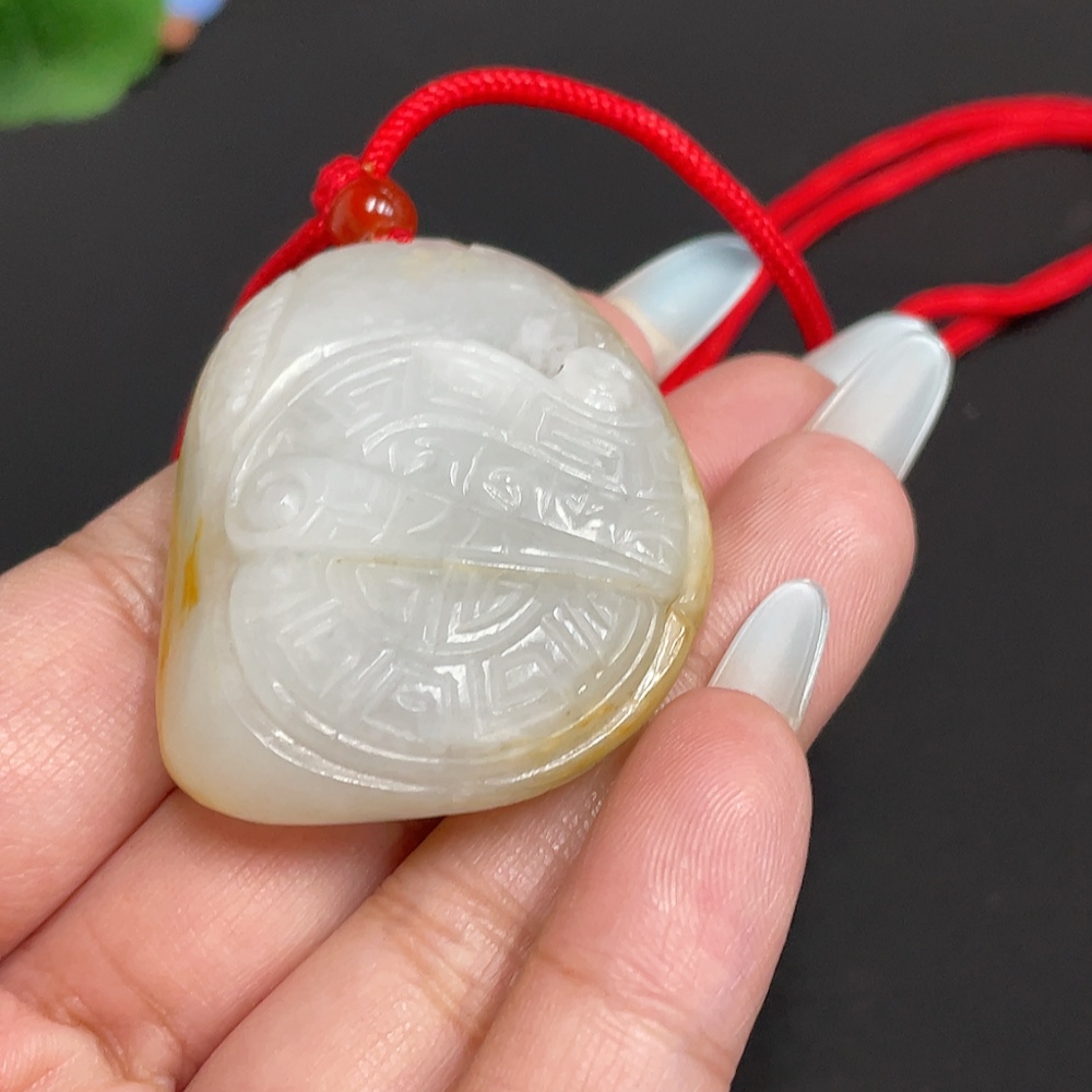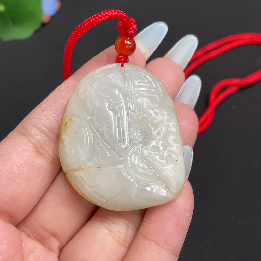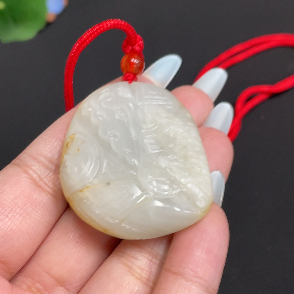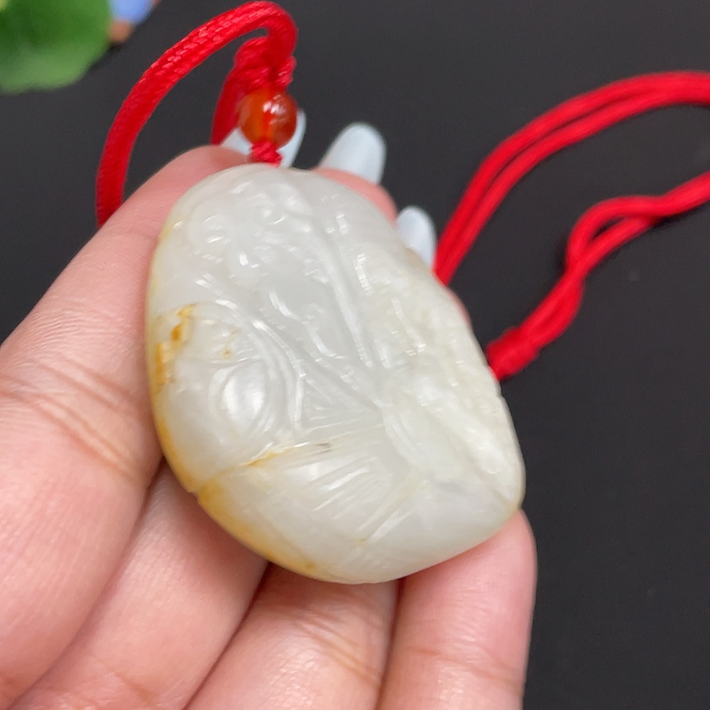 Hetian Jade Seed Material Pendant, Antique-style Piece, Total Weight Approximately [including rope] 40.8g, Undetermined Skin Color Origin
