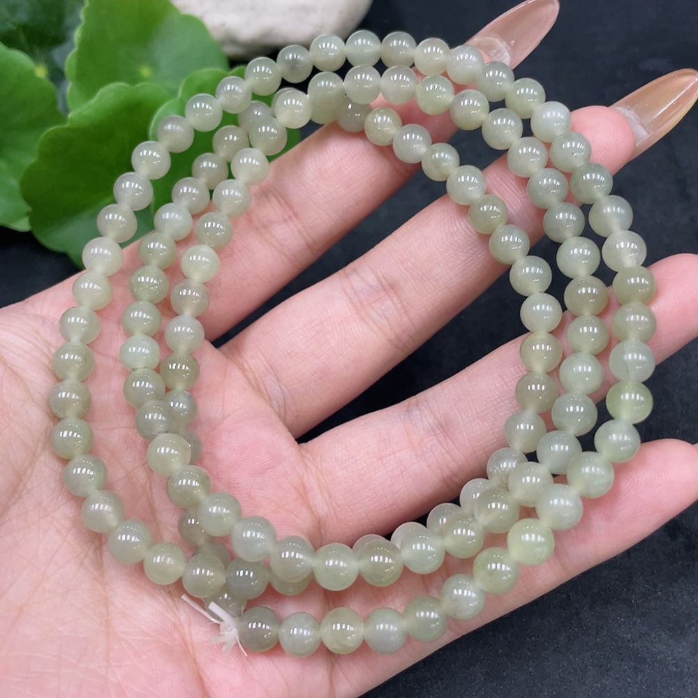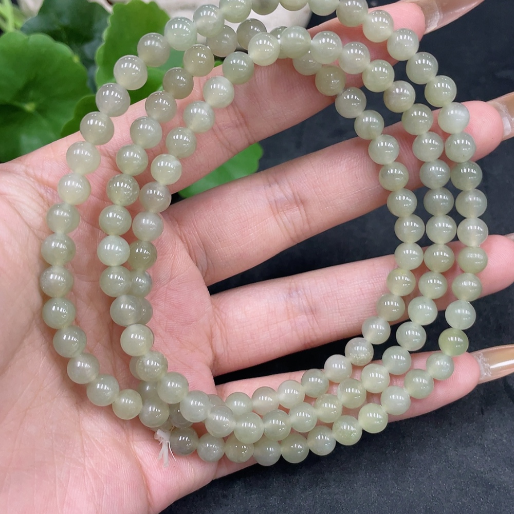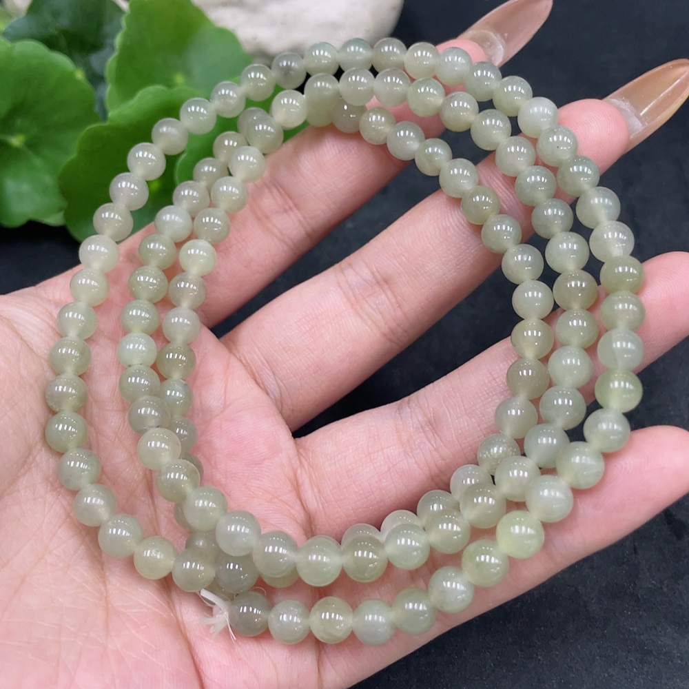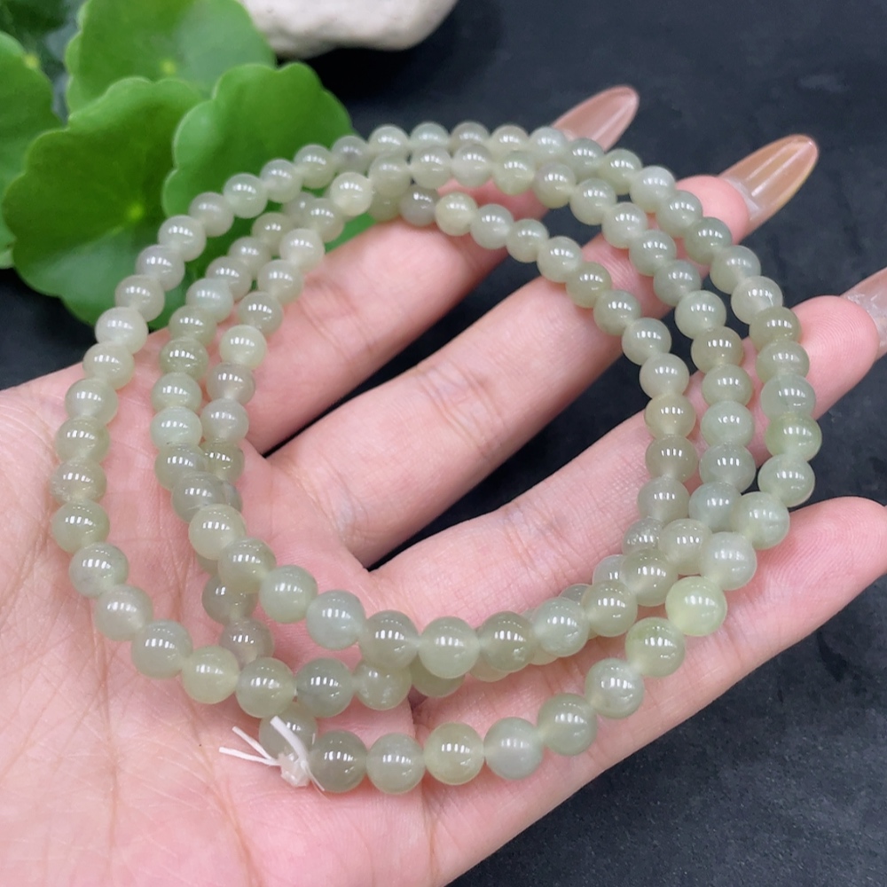 Hetian Jade Bead Necklace Approx. 5.6mm Total Weight Approx. 37.8g