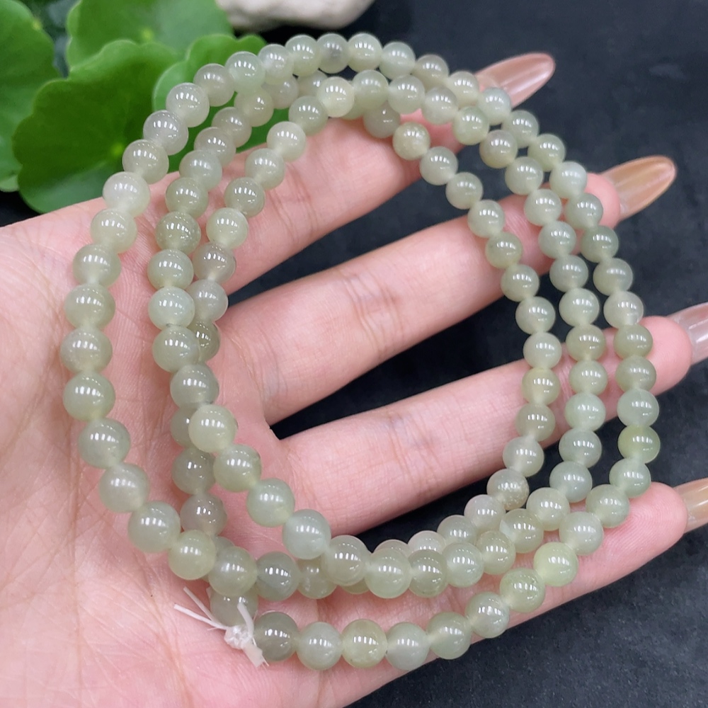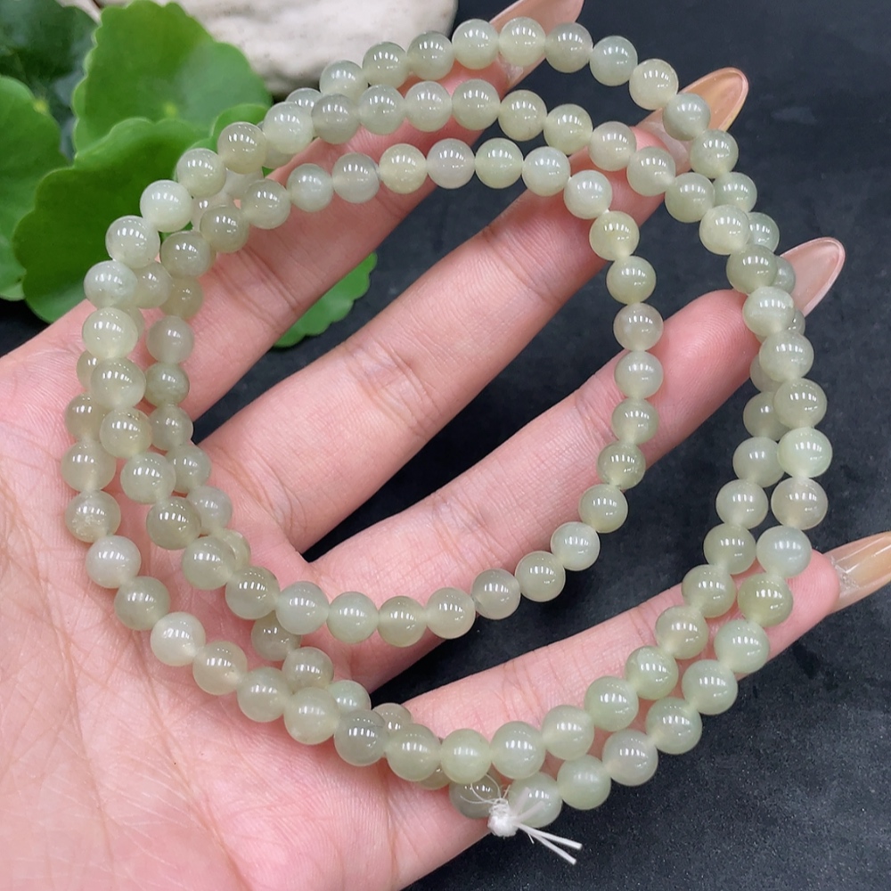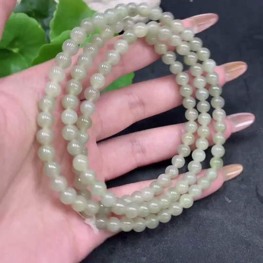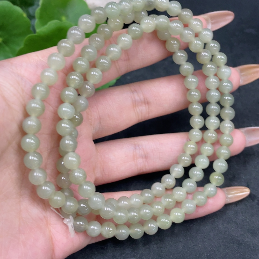 Hetian Jade Bead Necklace Approx. 5.6mm Total Weight Approx. 37.8g