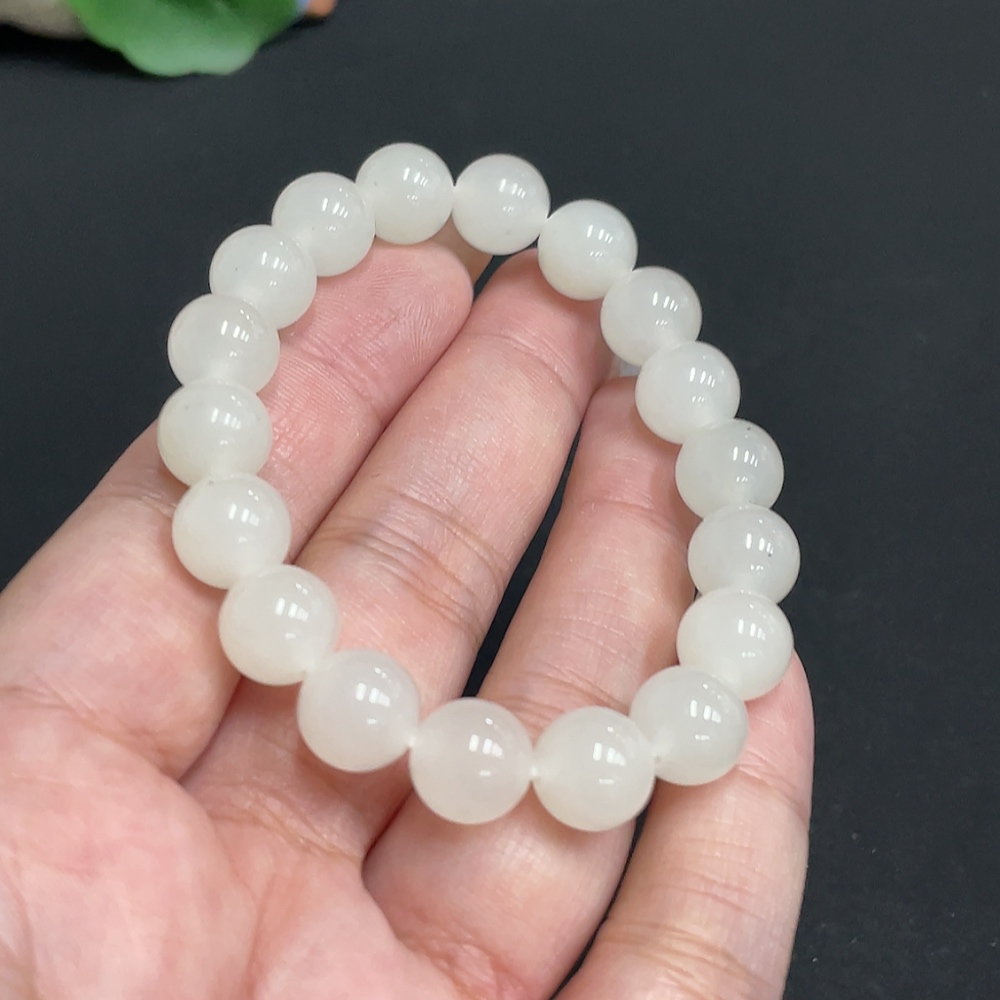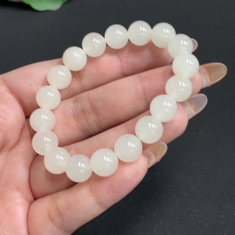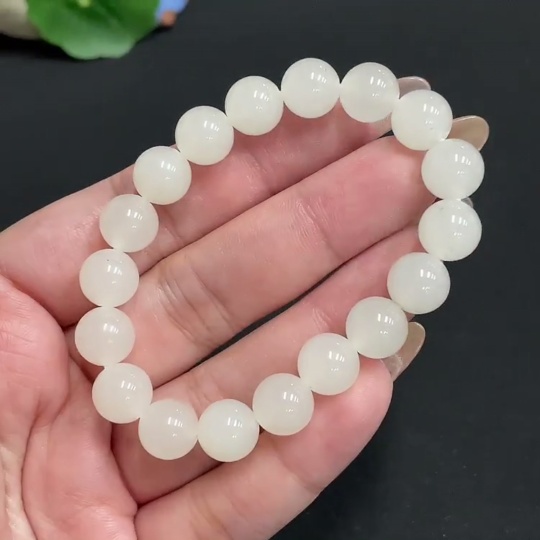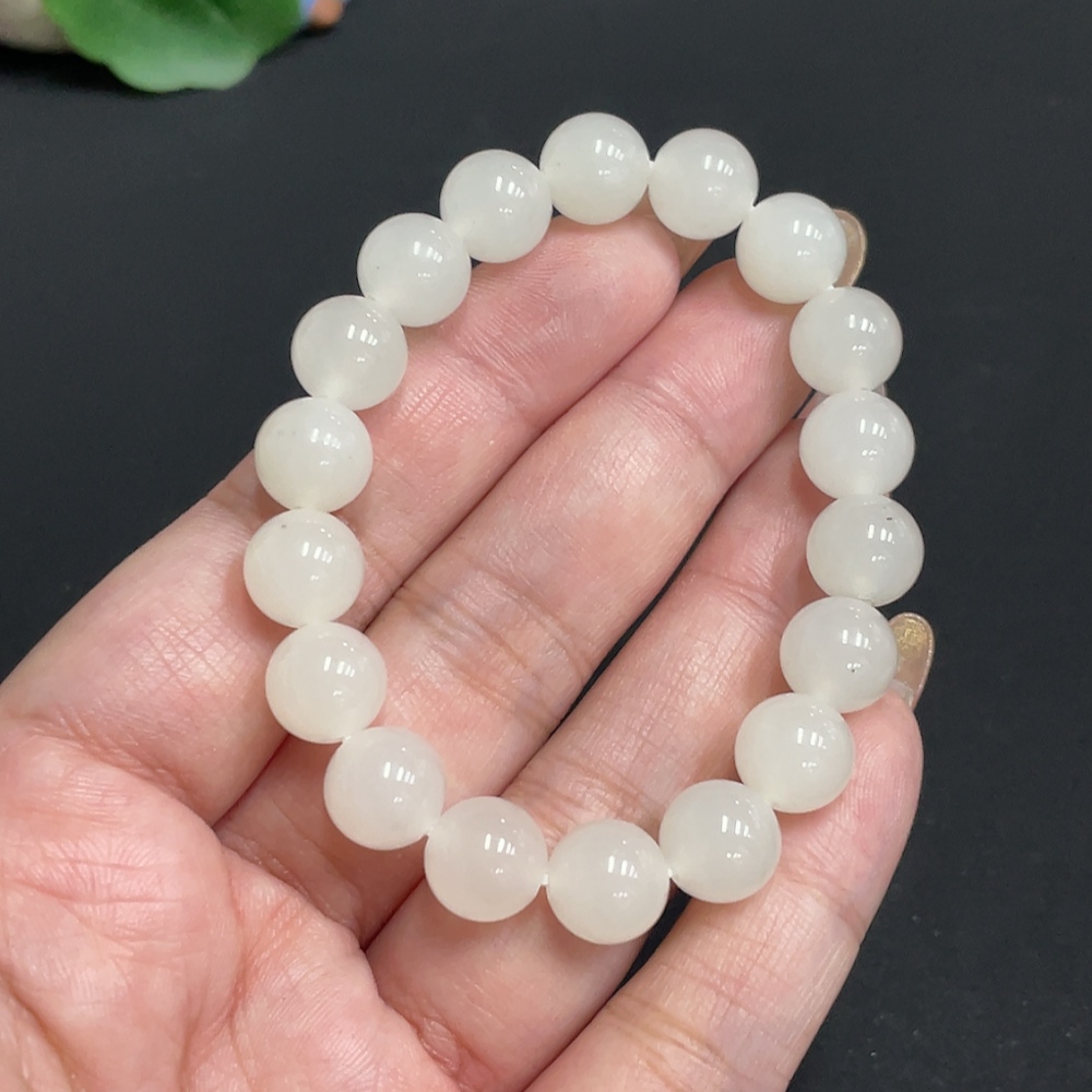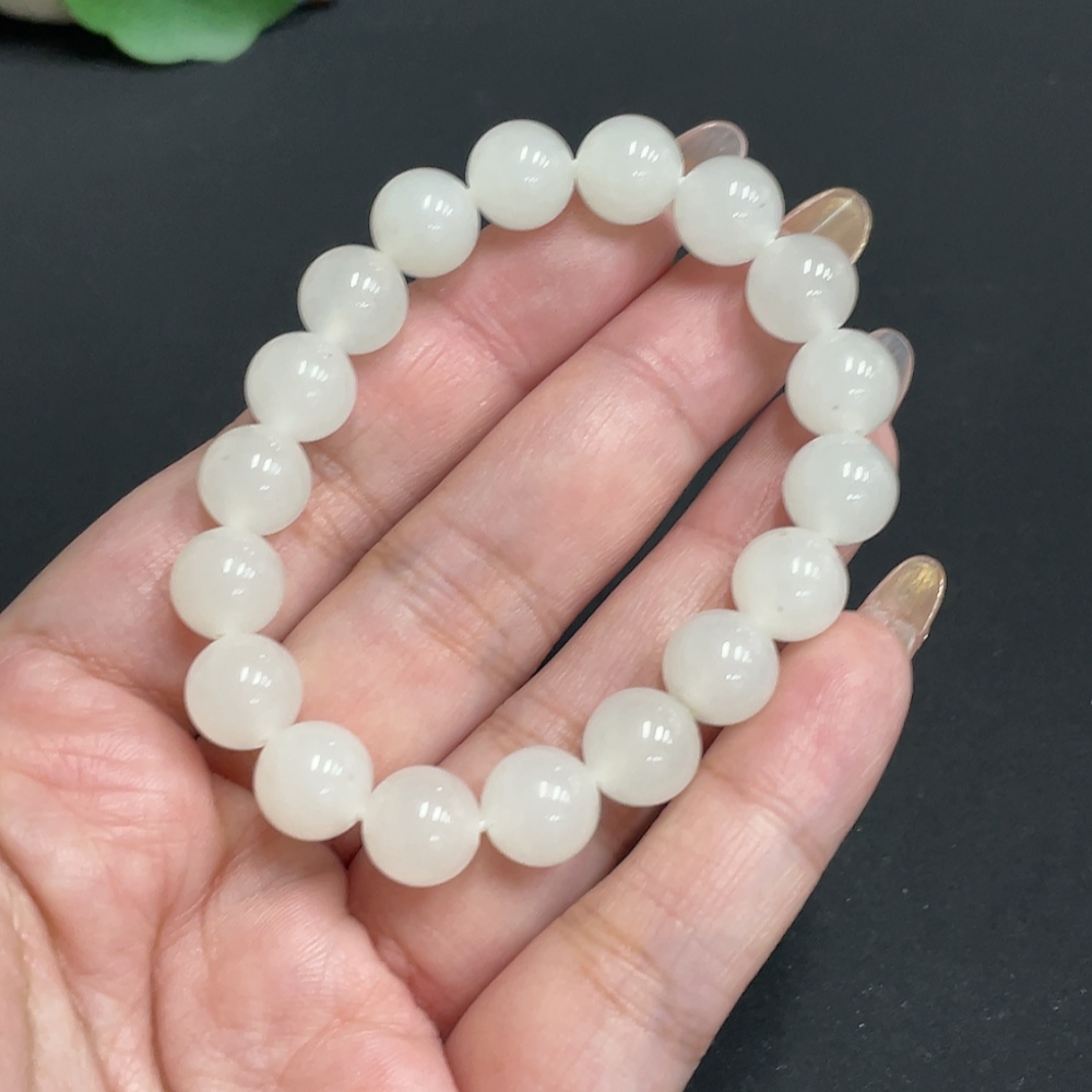 Hetian Jade Bead Bracelet, Approx. 9.7mm, Total Weight Approx. 25.6g