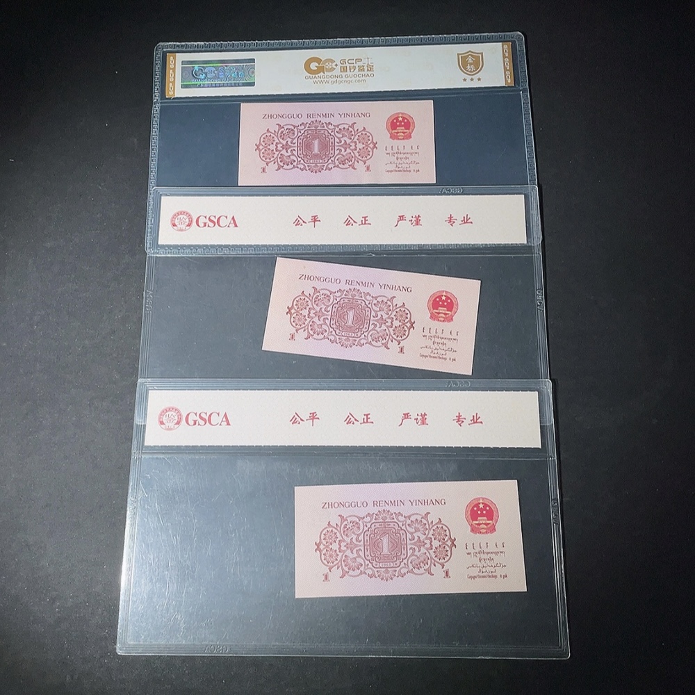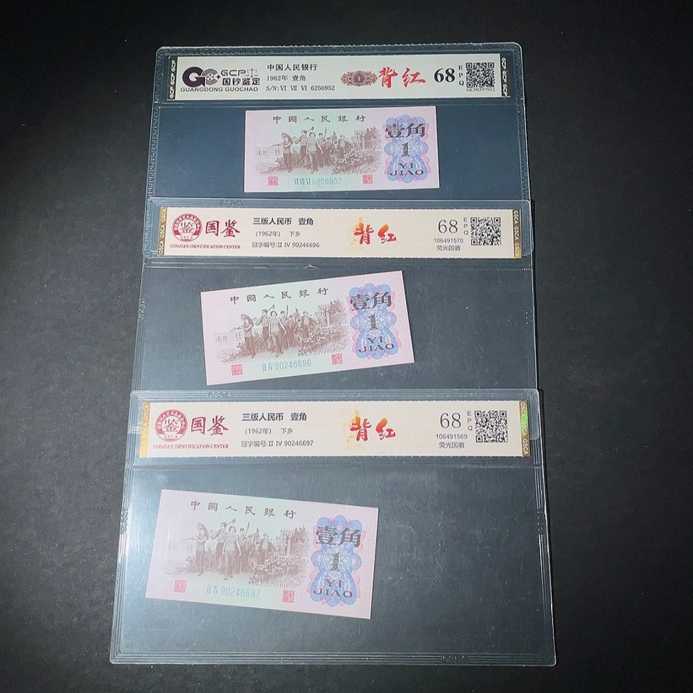 Third Set of RMB One Jiao Three Pieces Red Back Graded Banknotes