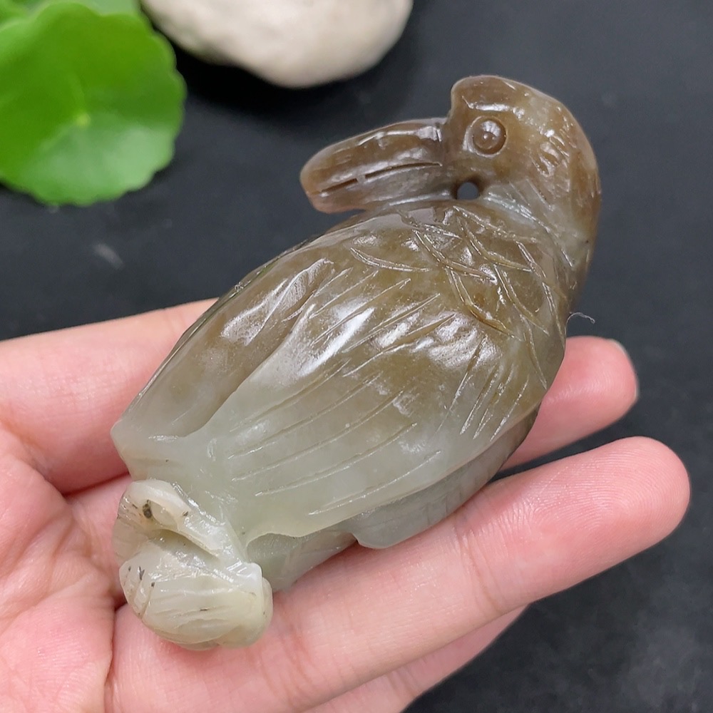 Hetian Jade Hand-held Ornament - Crane, Total Weight Approx. 127.4g