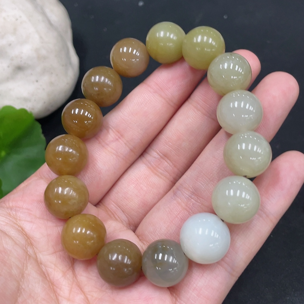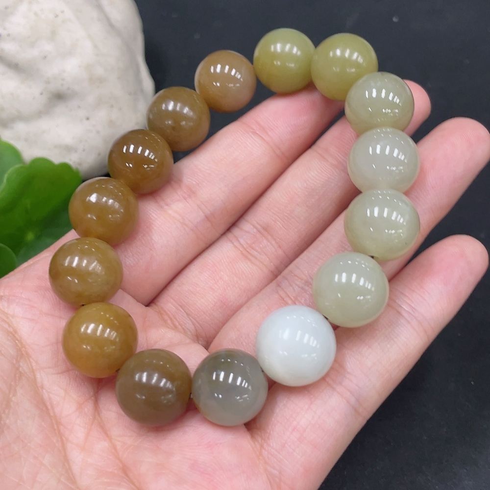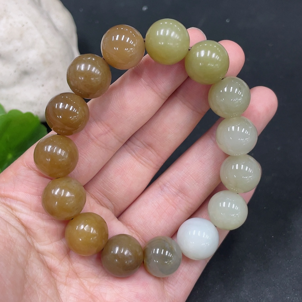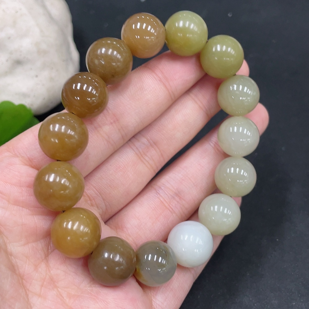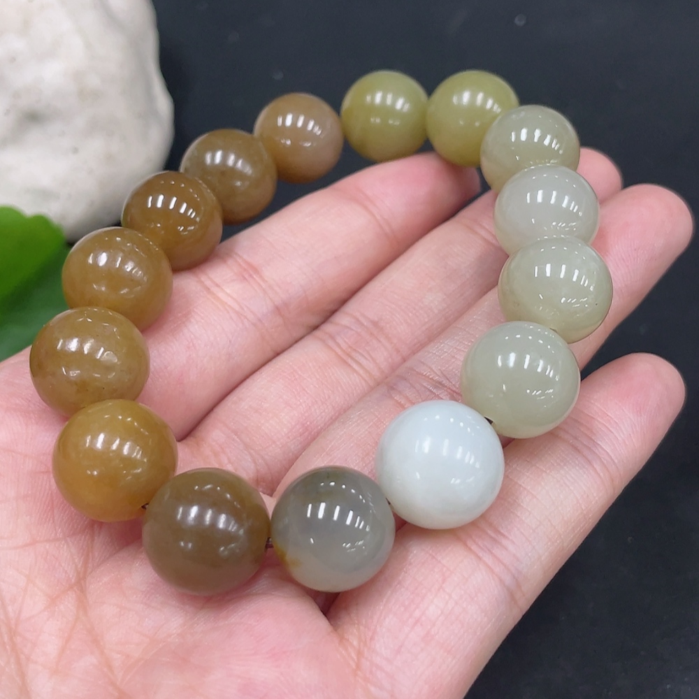 Hetian Jade Bracelet, Approx. 12.9mm, Total Weight Approx. 53.2g Including Other Mineral Components