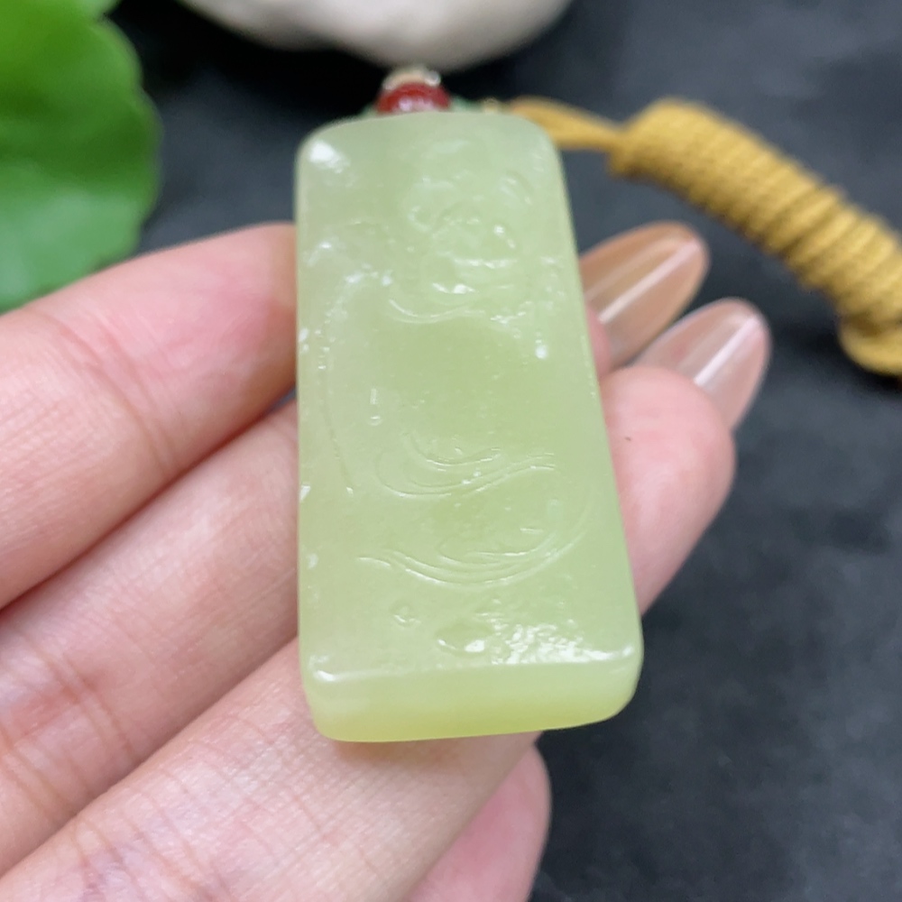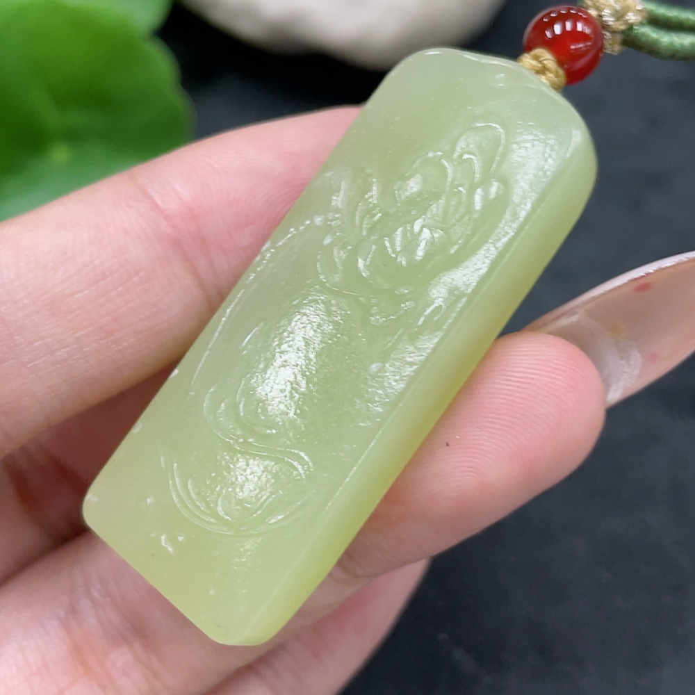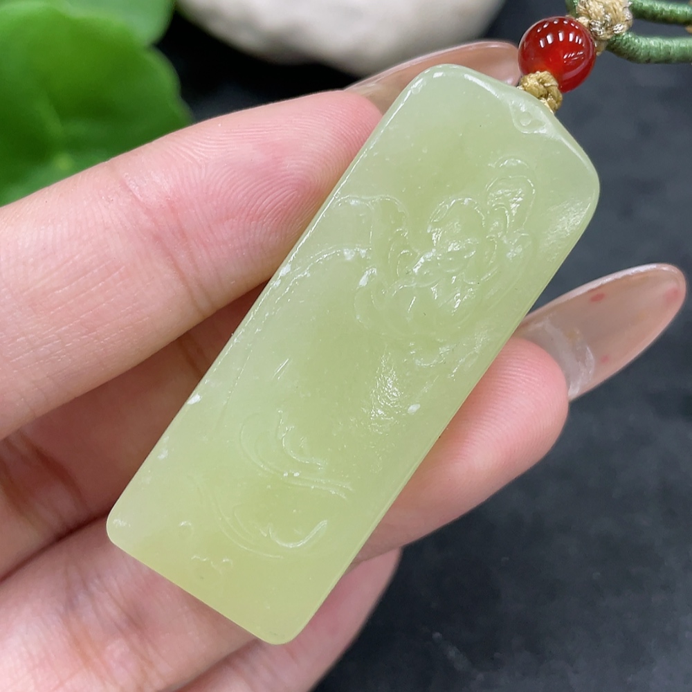 Hetian Jade Pendant Lotus Total Weight Approx. (with rope) 21.3g