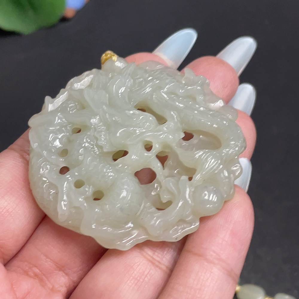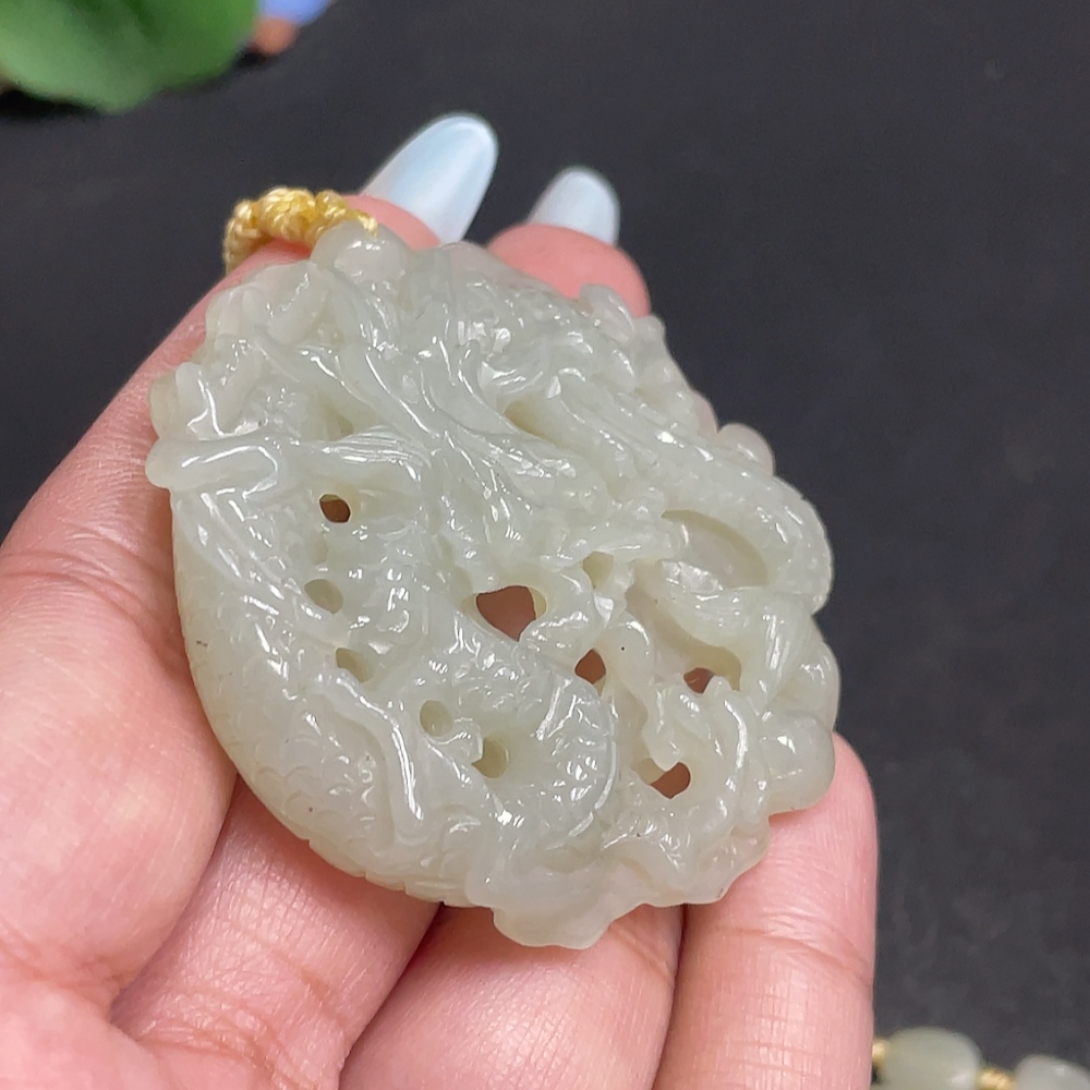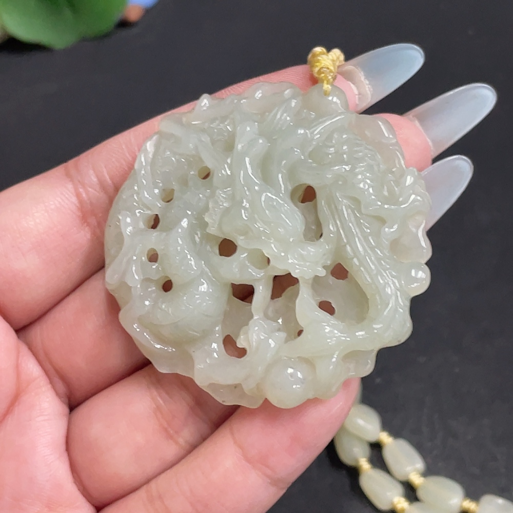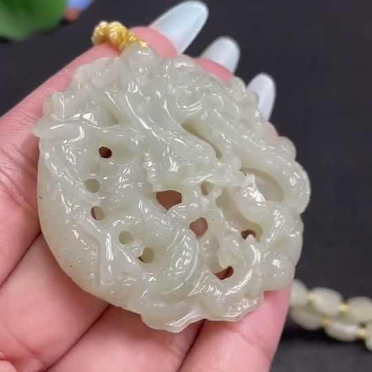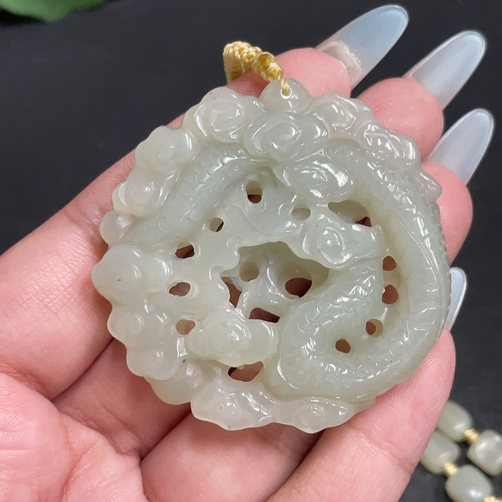 Hetian Jade Pendant, Dragon Plaque, Total Weight Approx. [including chain] 63.3g