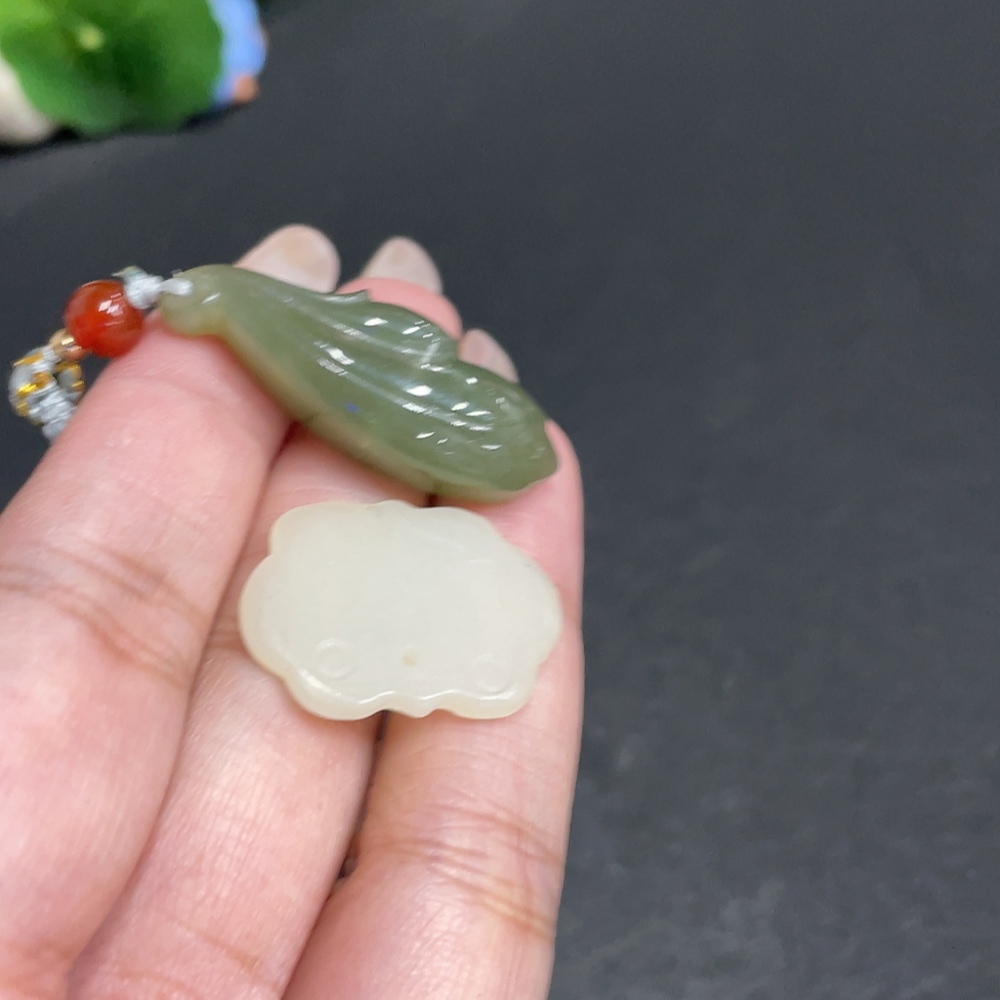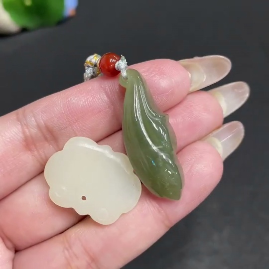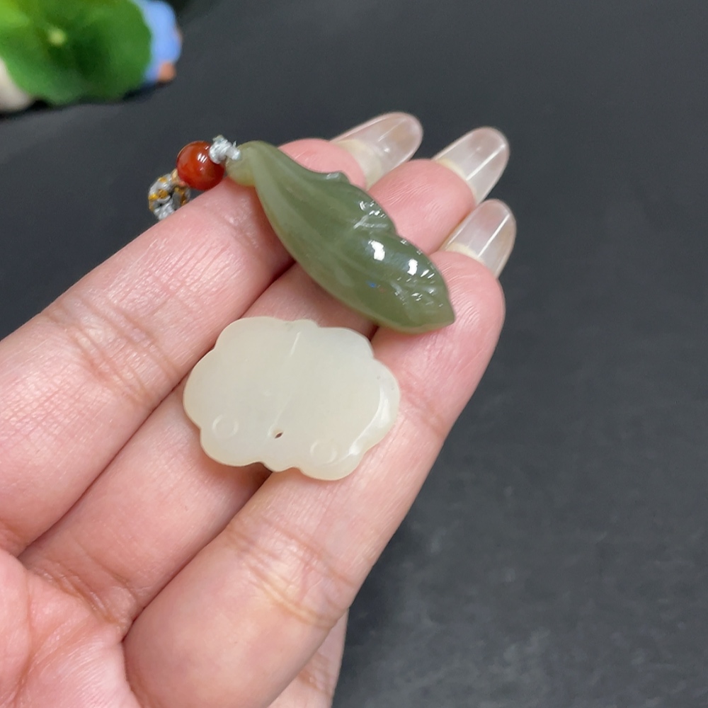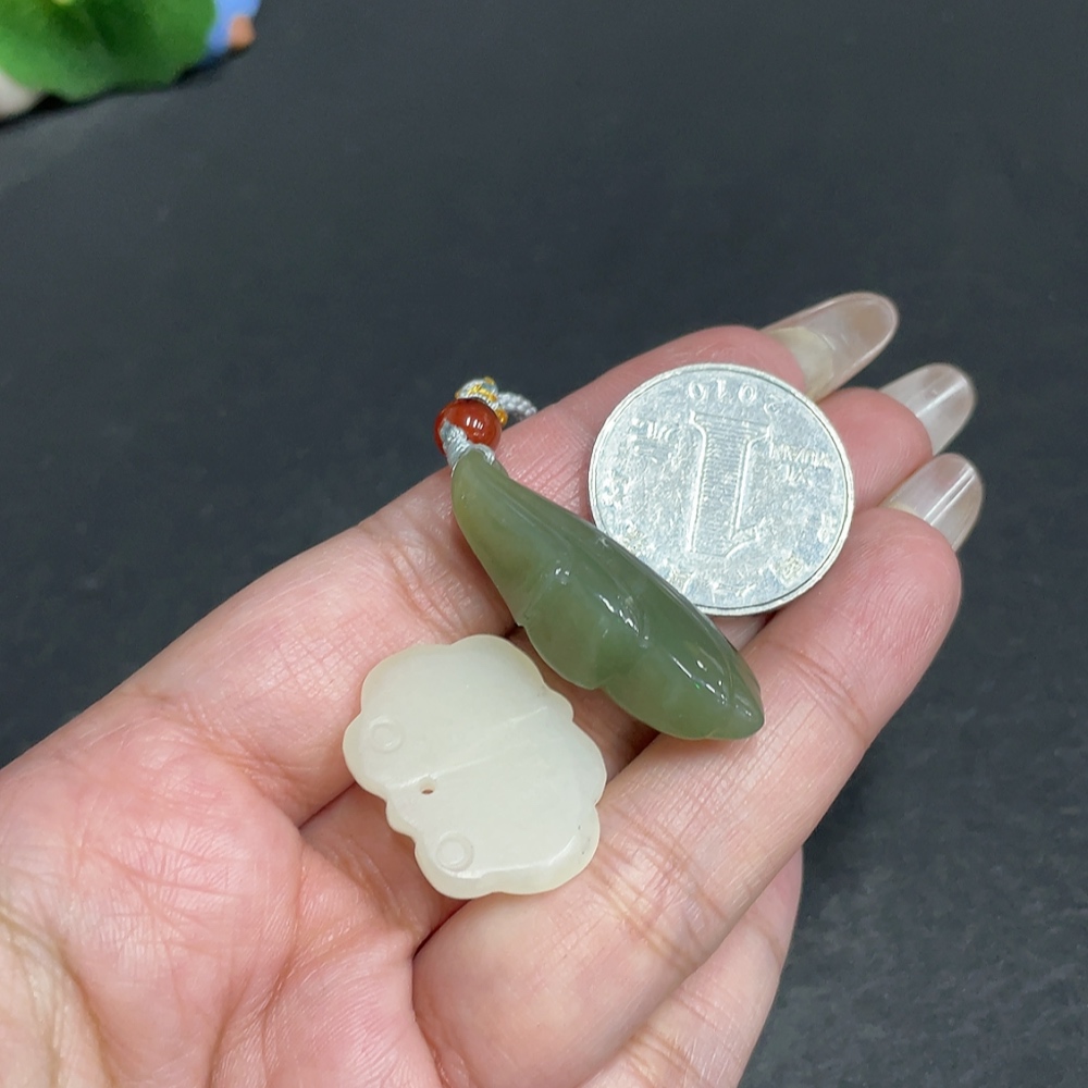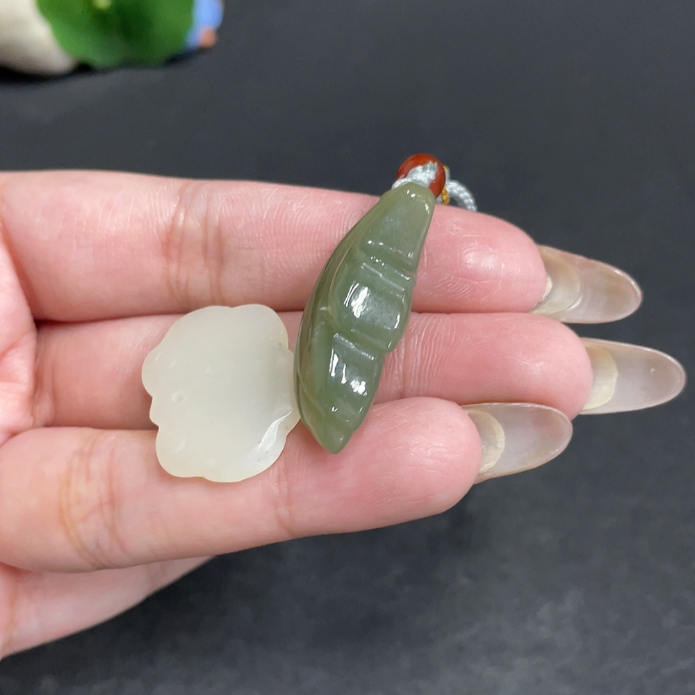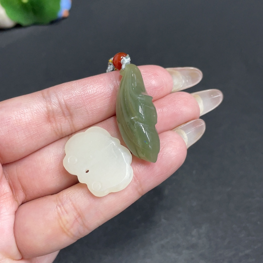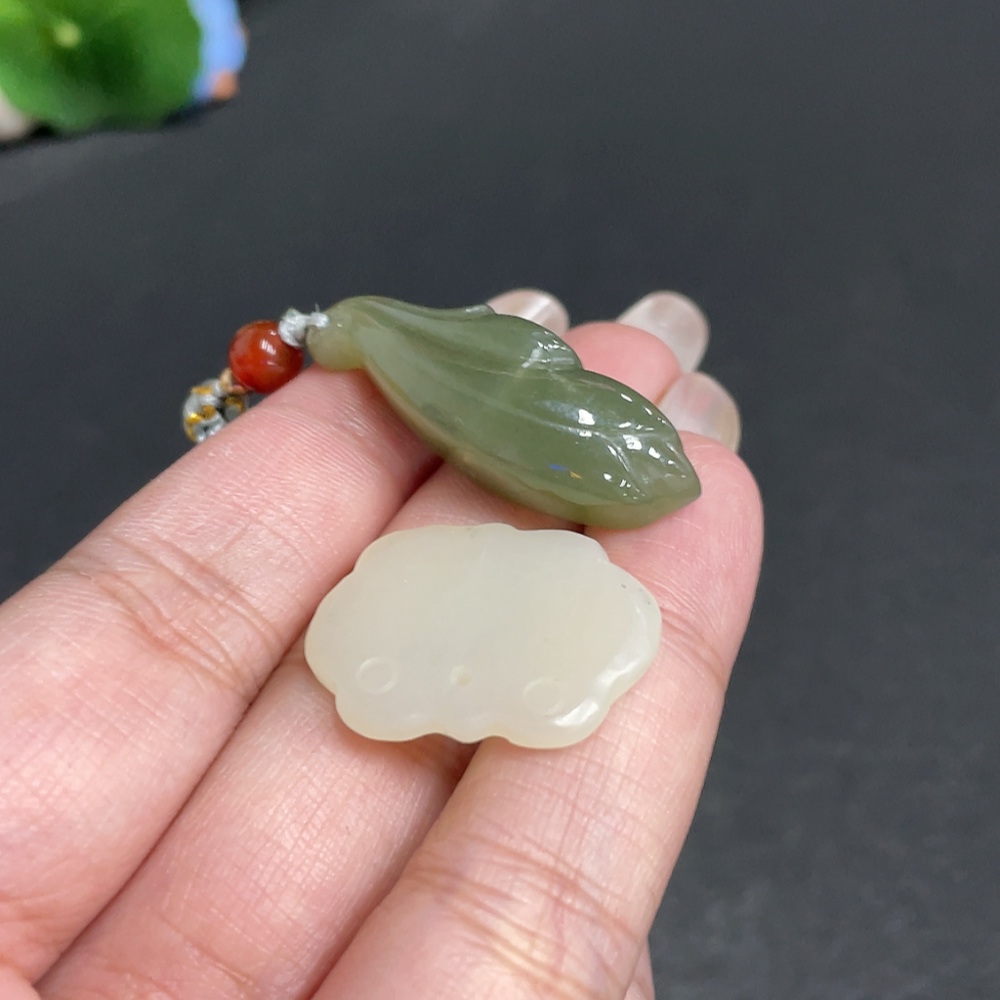 Hetian Jade Pendant, Ruyi, Magnolia, Total Weight (including rope) 12.5g