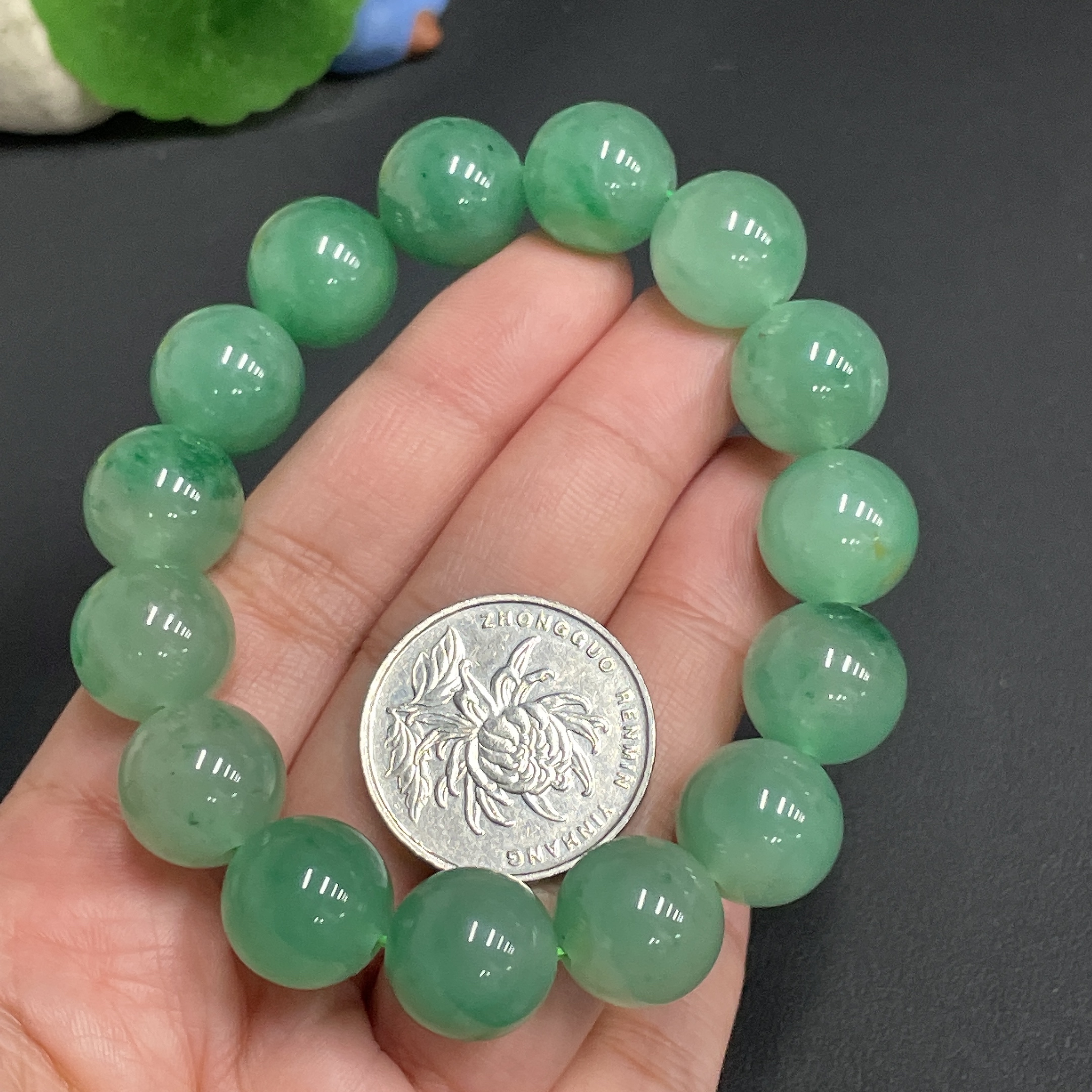 Dulong Jade Bracelet Approximately 13.7mm Beads Total Weight About 55.9g