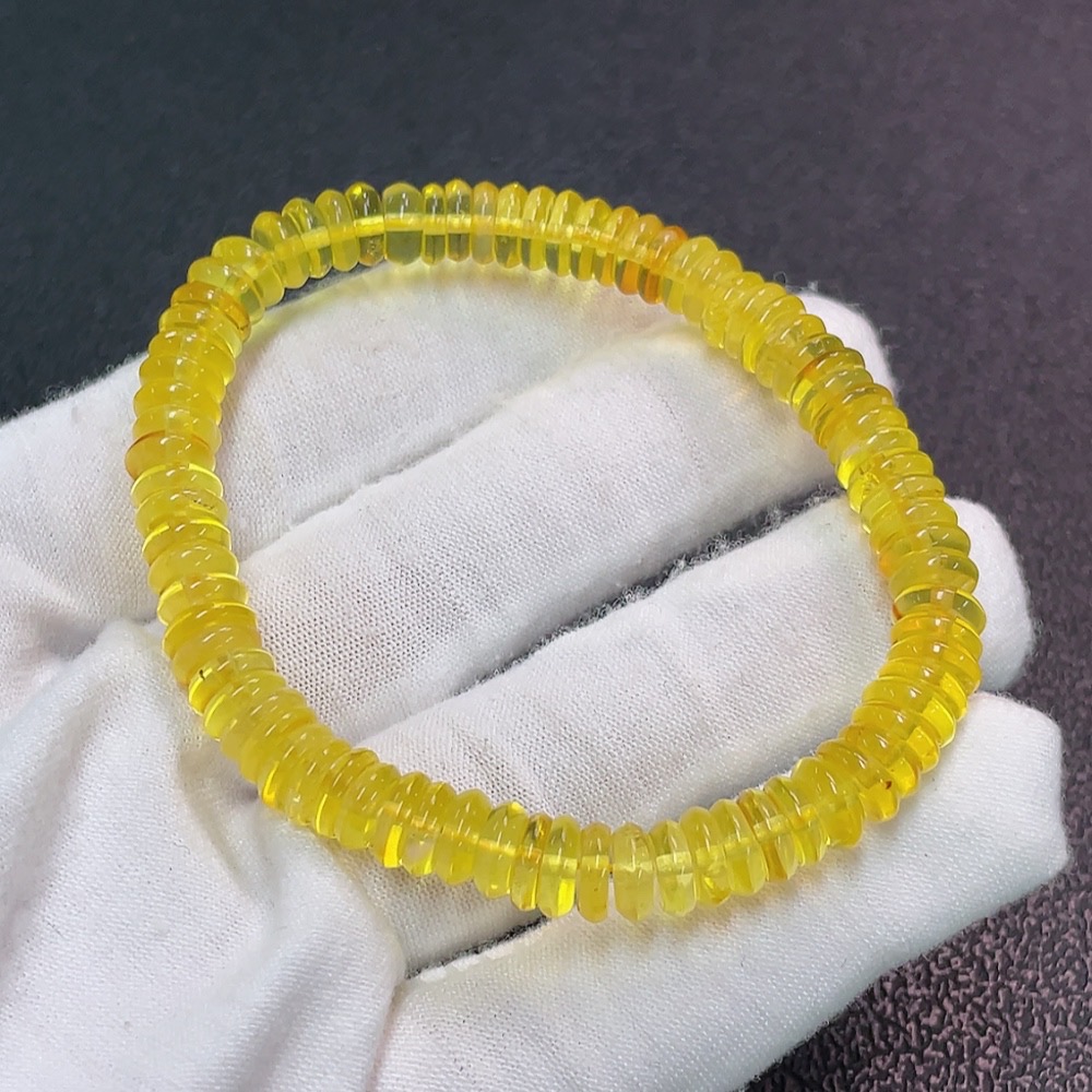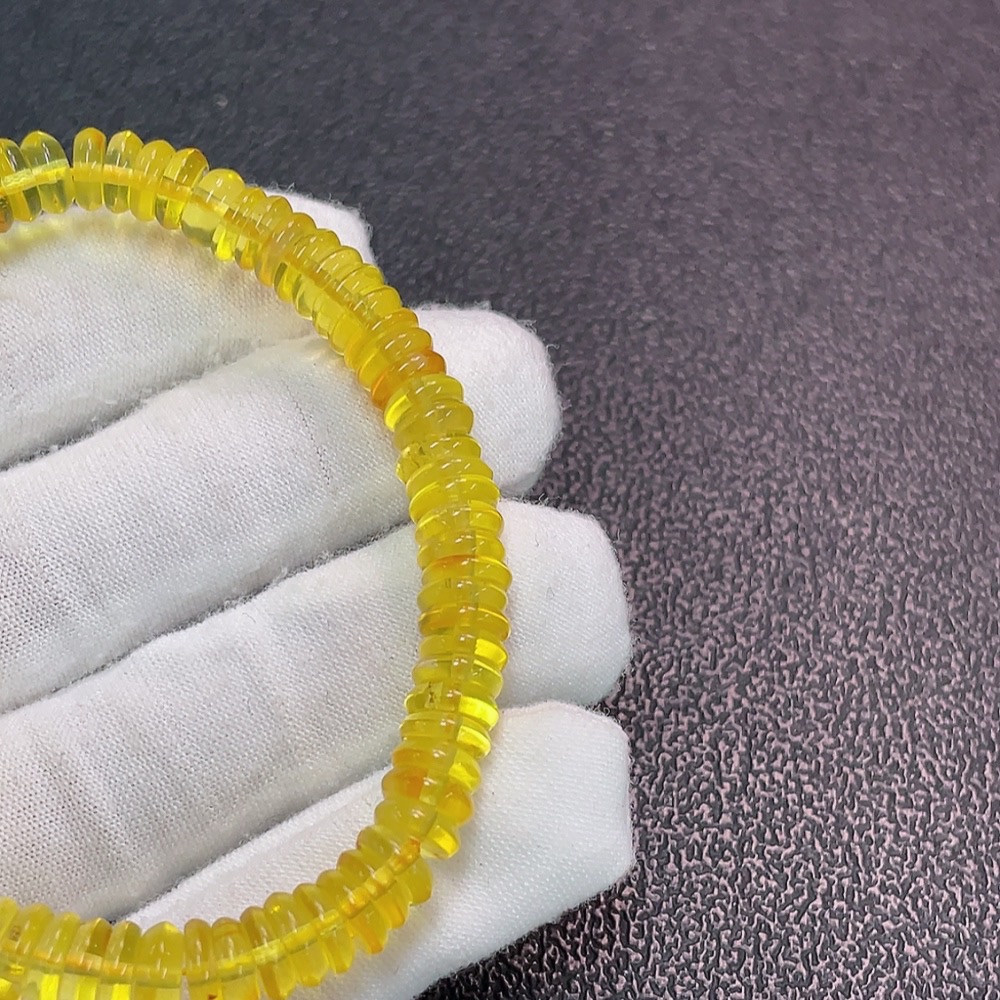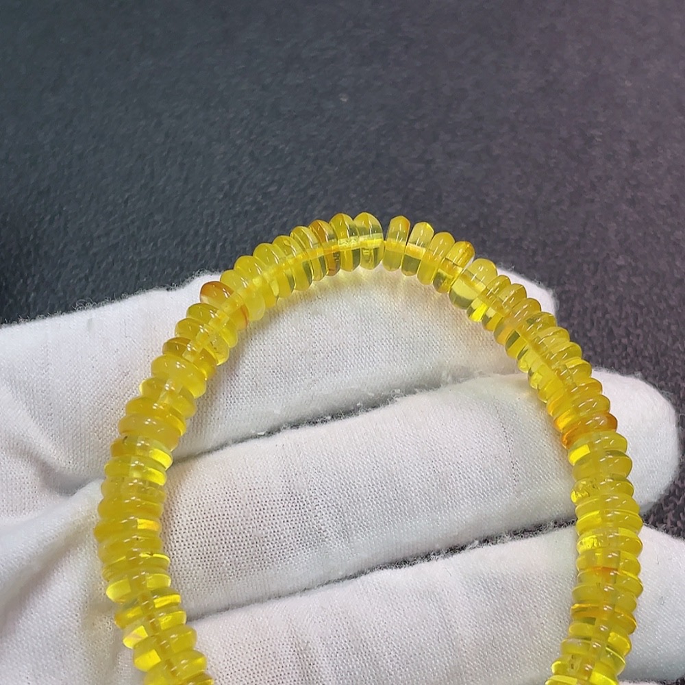 Amber Beeswax Bracelet, Total Weight Approx. 6.79g, Bead Size 7mm