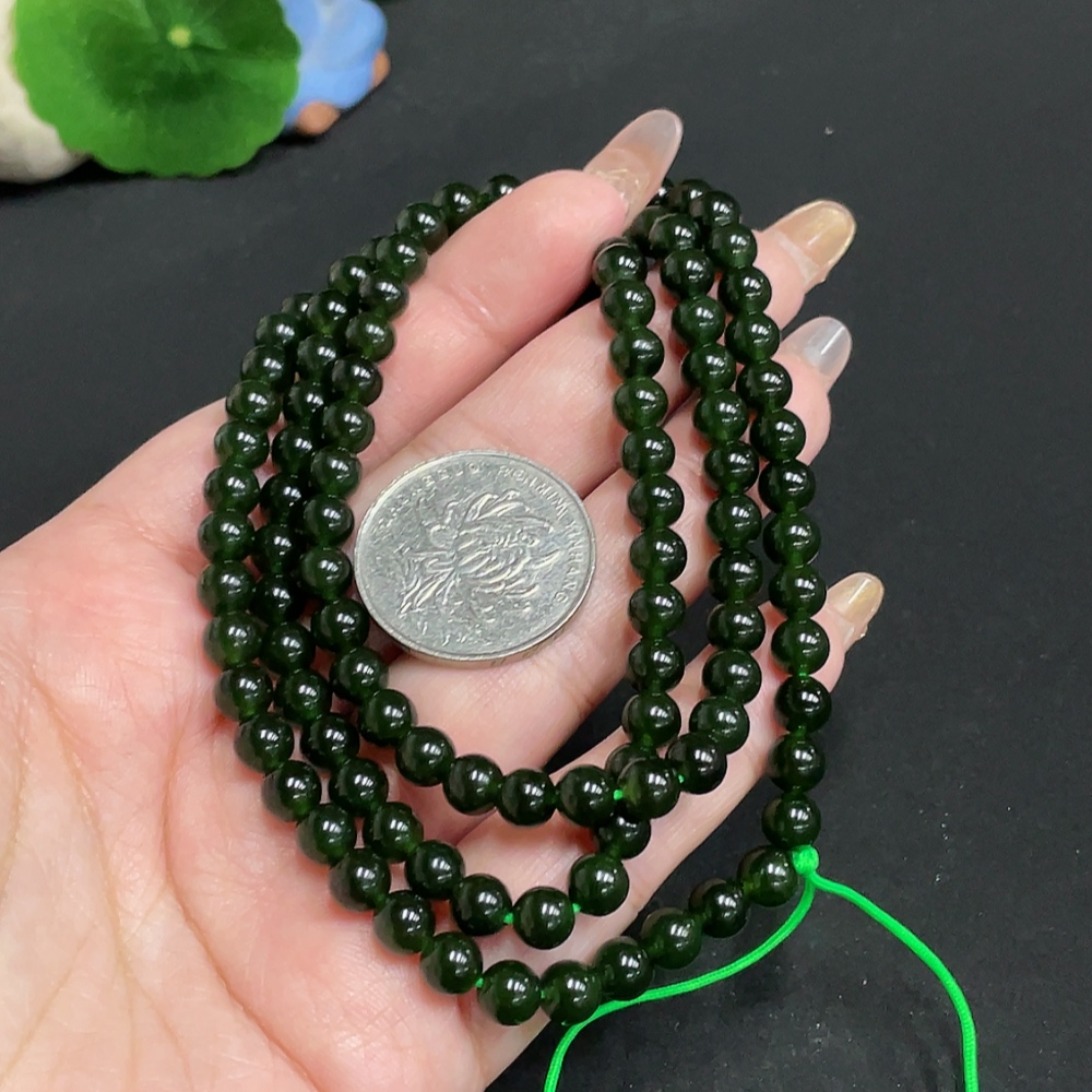 Hetian Jade Bead Necklace, Approx. 5.9 mm, Total Weight Approx. 37.8g