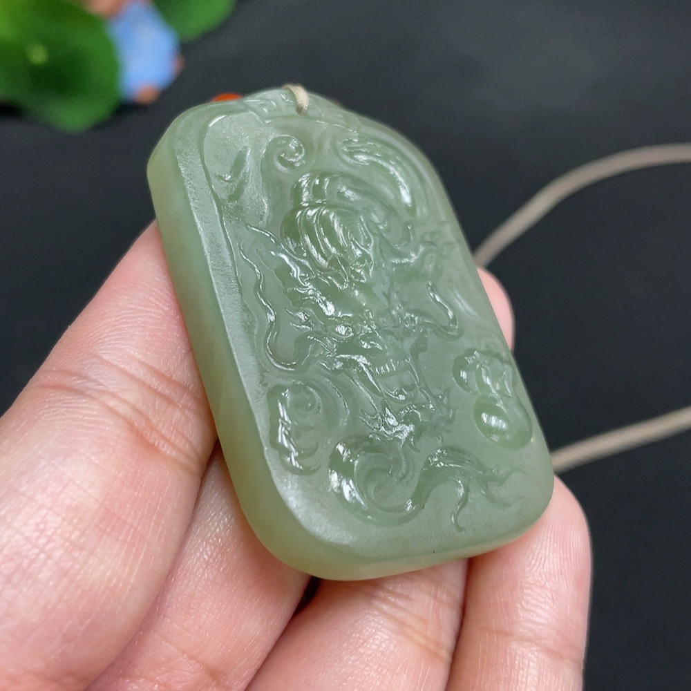 Hetian Jade Pendant Dragon Plaque Total Weight [with rope] 43.9g