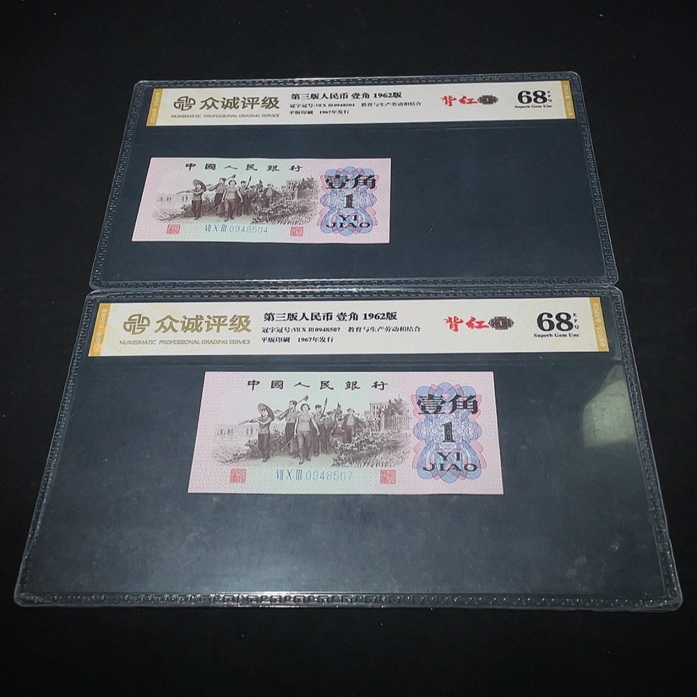 Two Graded Banknotes of 1 Jiao from the Third Series of Renminbi