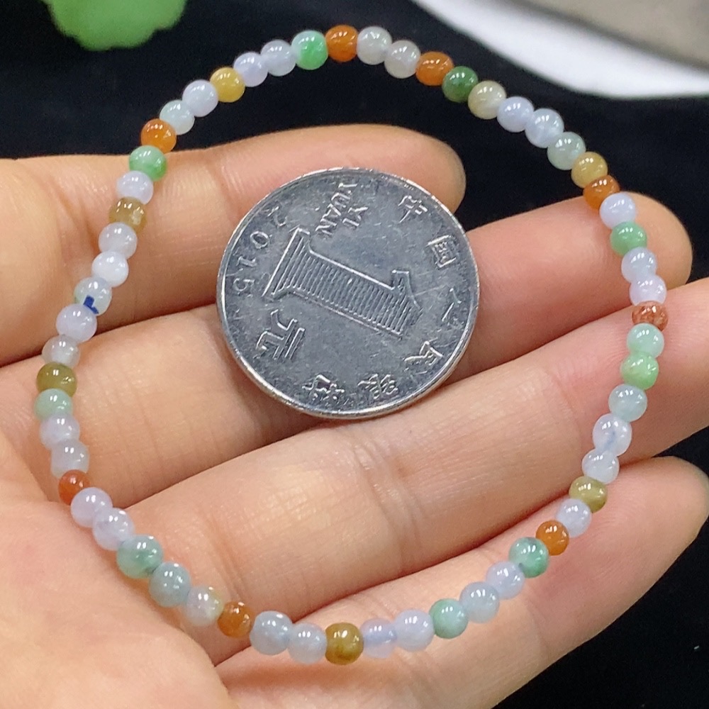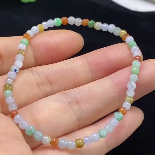 Jadeite Bracelet, Approx. 3.3mm Beads, Total Weight Approx. 3.87g, Color Origin Undetermined