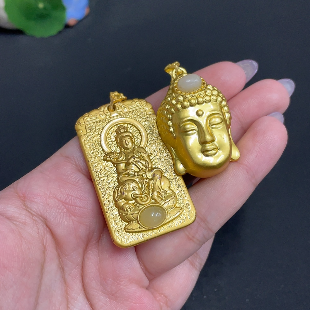 Hetian Jade Inlaid Pendant, Total Weight Approx. 45.7g, Non-Gold