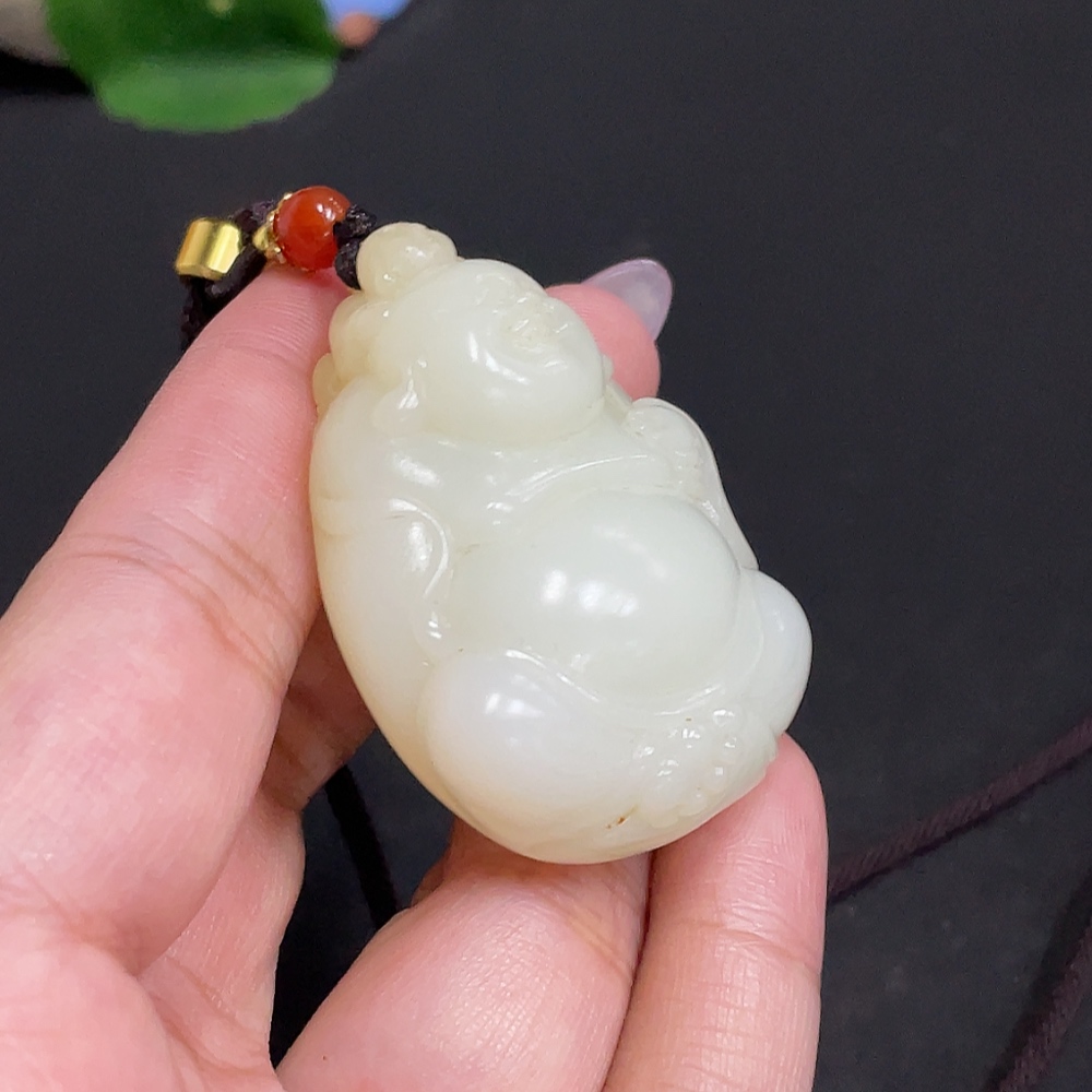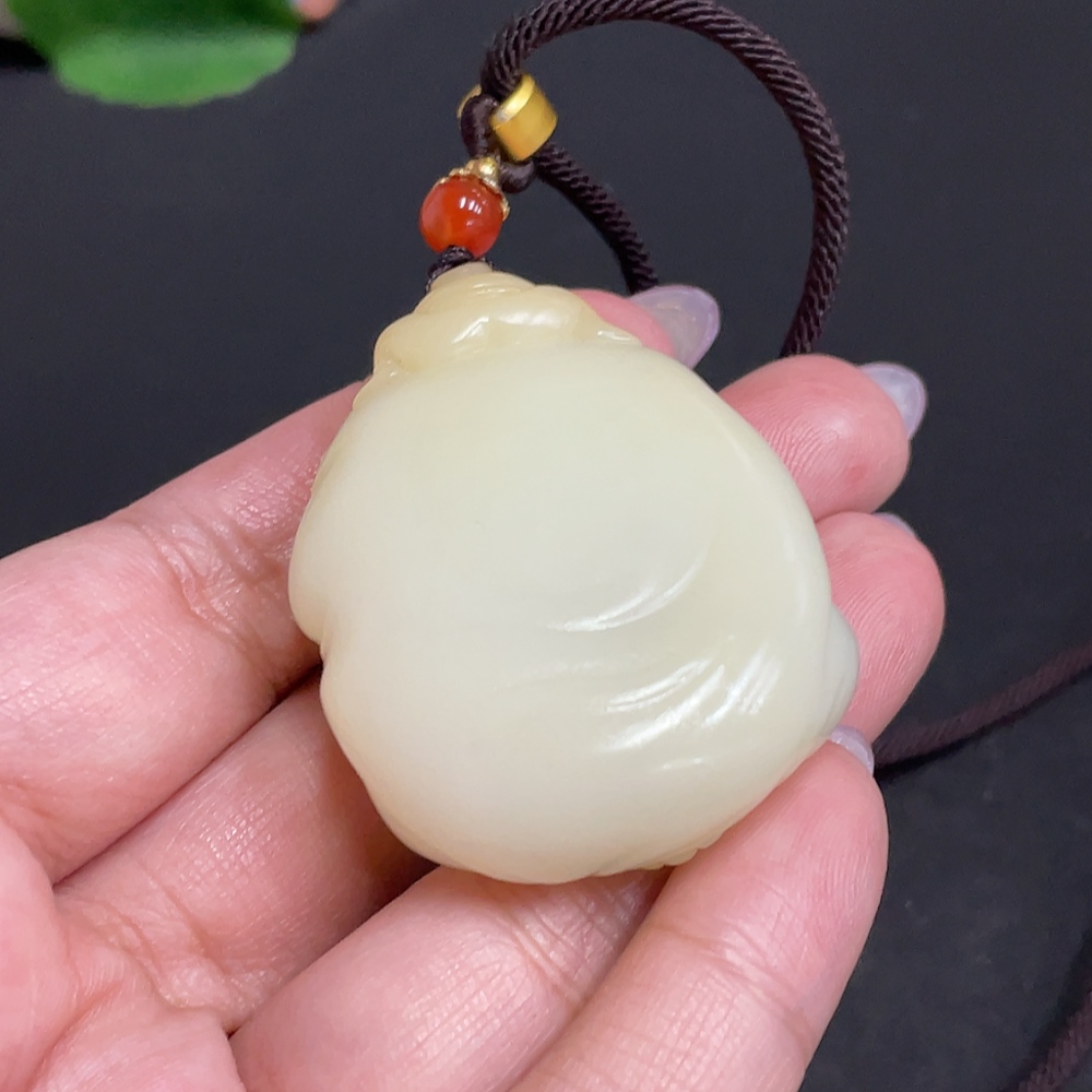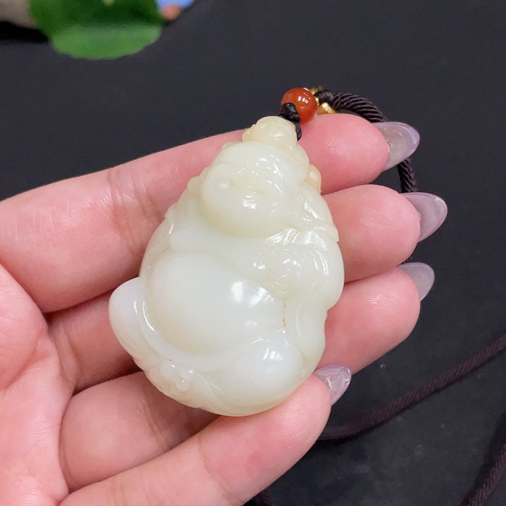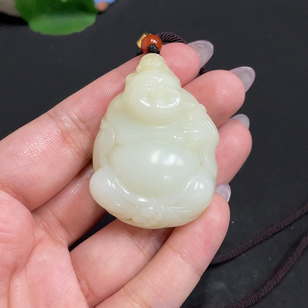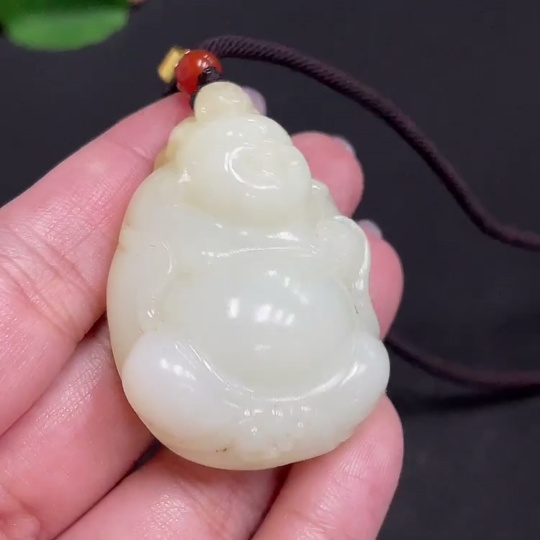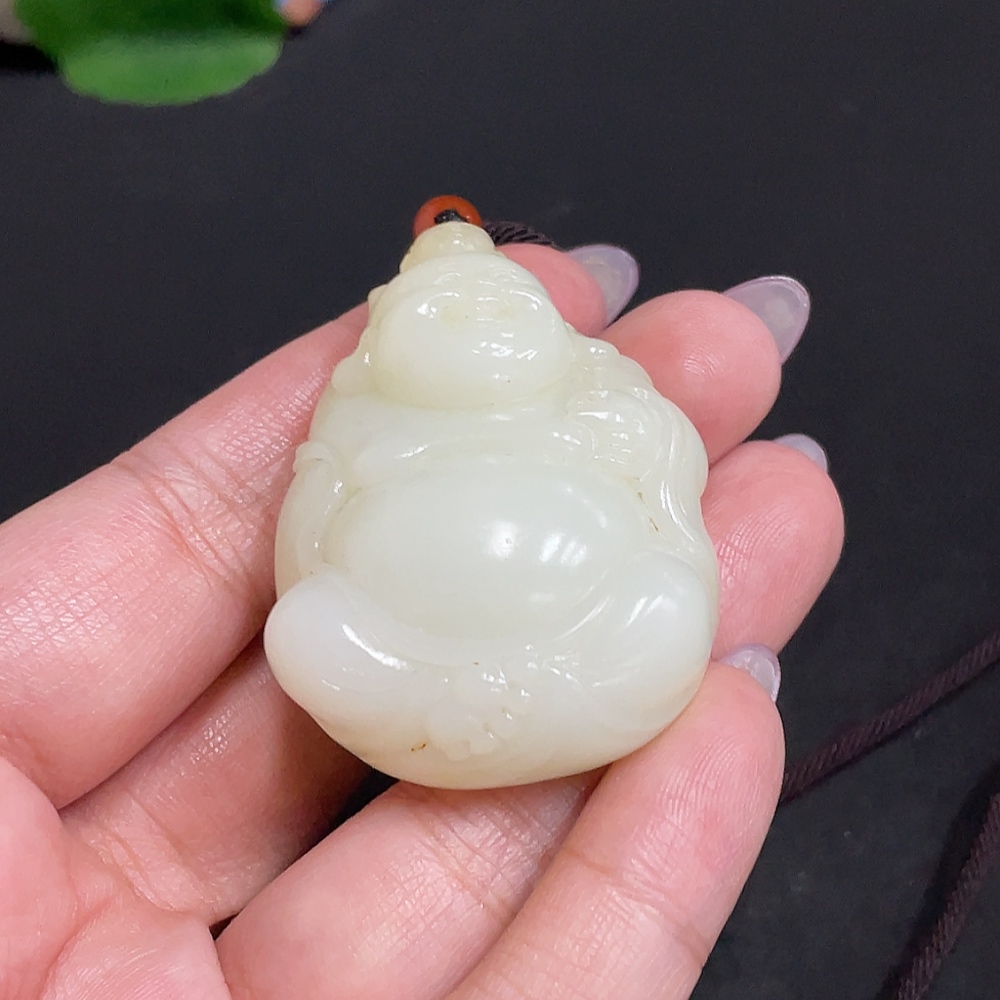 Hetian Jade Pendant - Buddha Figure, Total Weight (including rope) approx. 50.4g