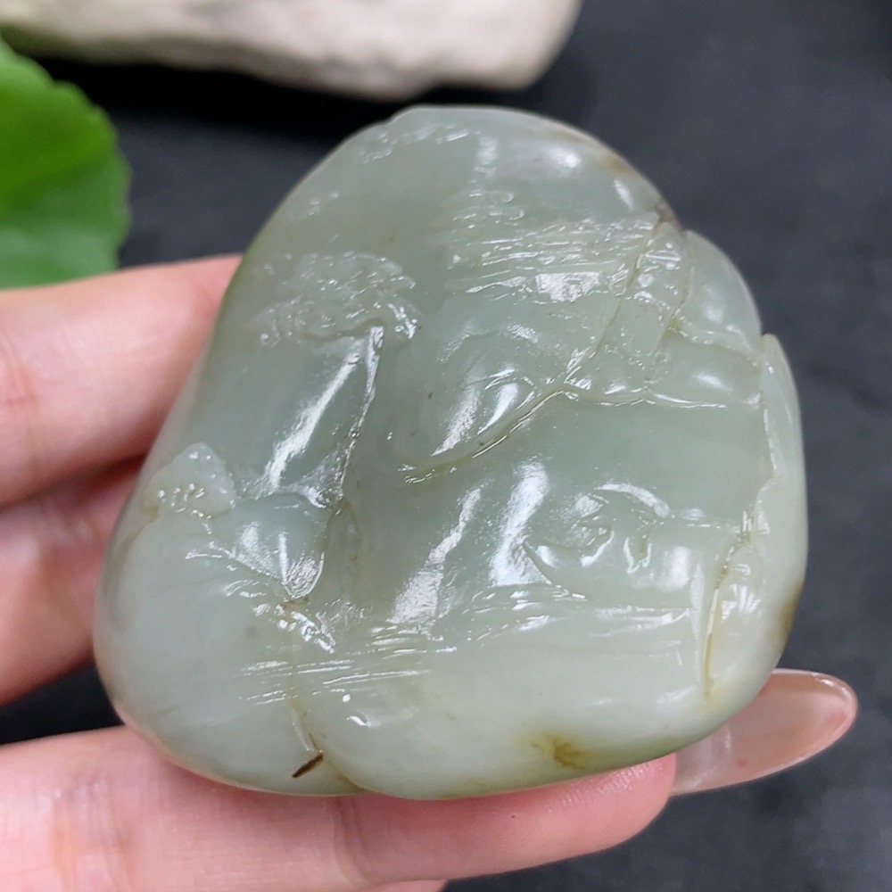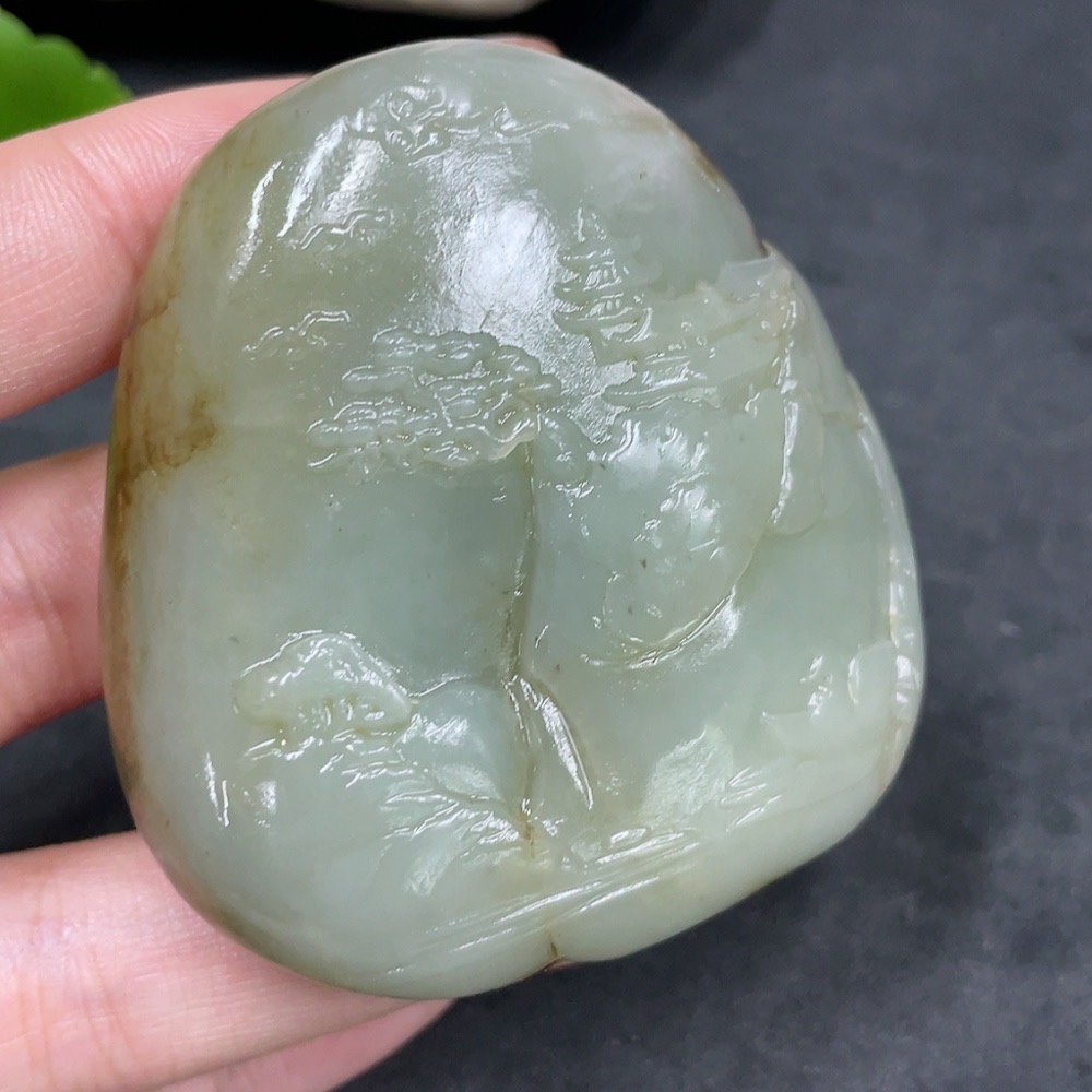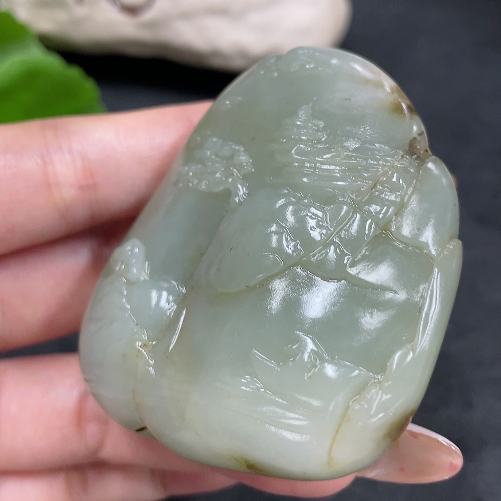 Hetian Jade Handheld Piece - Landscape (Undetermined Skin Color Origin, Total Weight Approximately 120.4g)