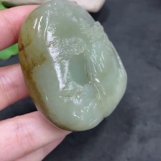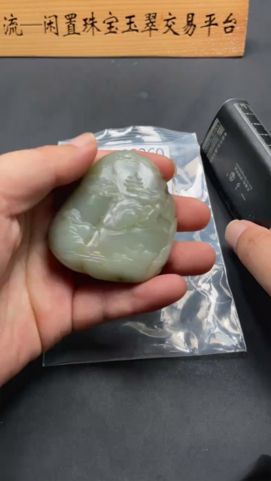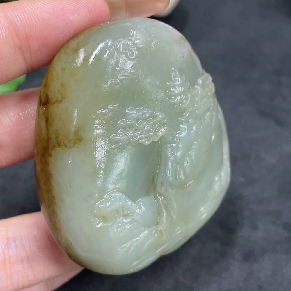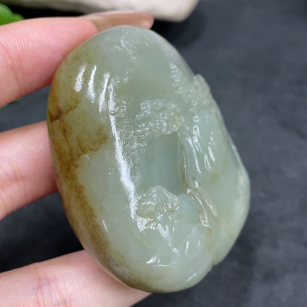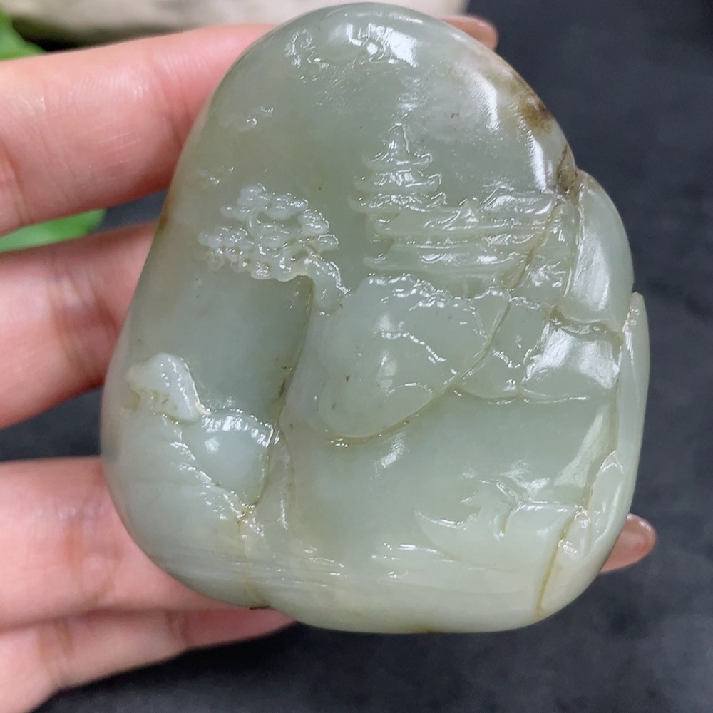 Hetian Jade Handheld Piece - Landscape (Undetermined Skin Color Origin, Total Weight Approximately 120.4g)