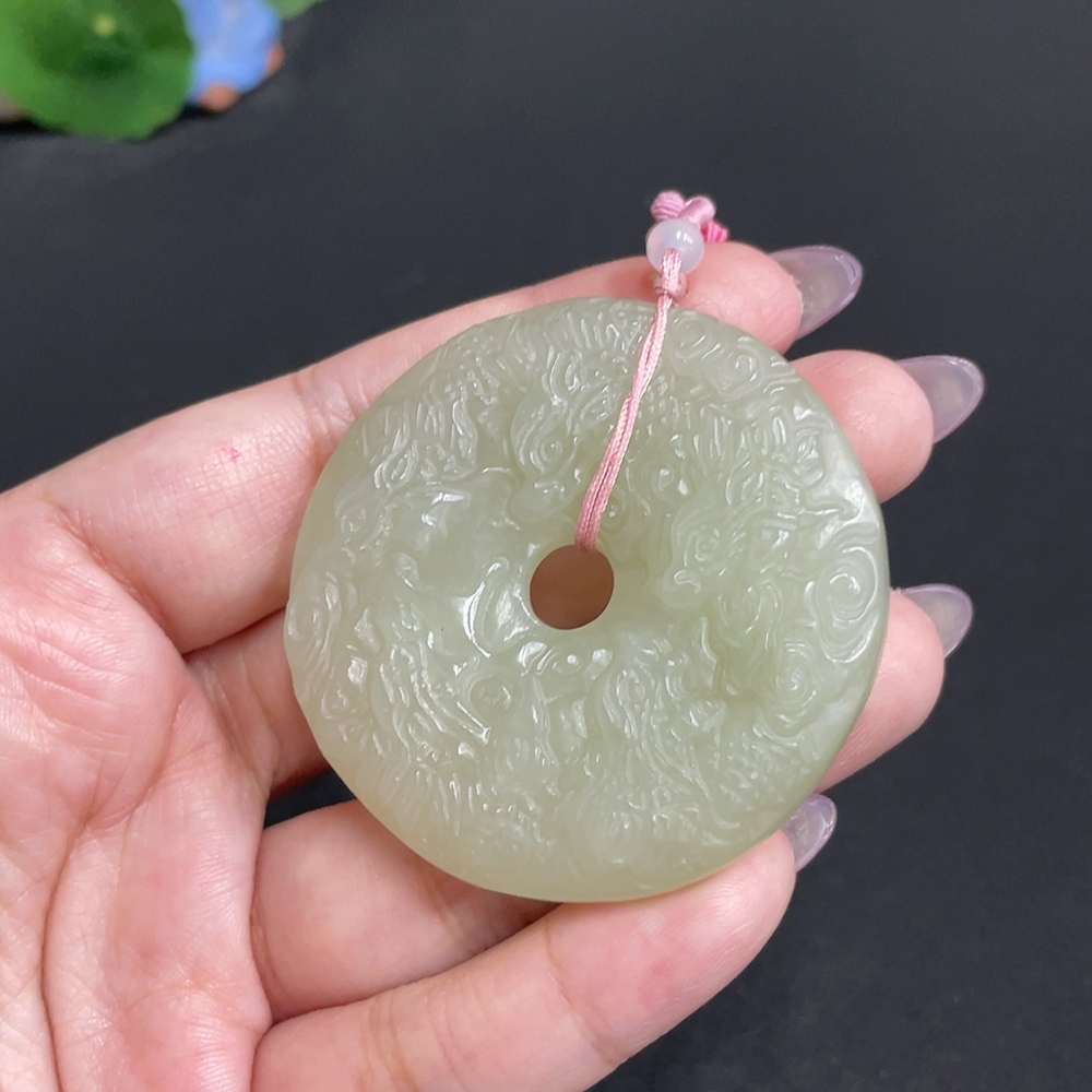 Hetian Jade Pendant - Phoenix - Total Weight (including rope): 50.9g