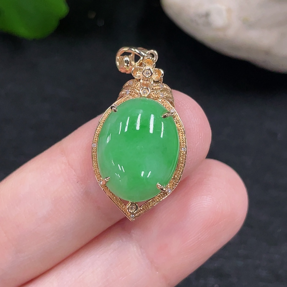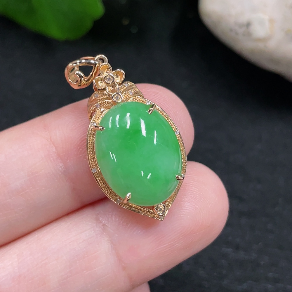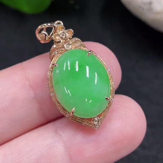Jadeite Cabochon Mounting, 18K Gold Setting with Diamond Accents, Total Weight Approx. 2.64g