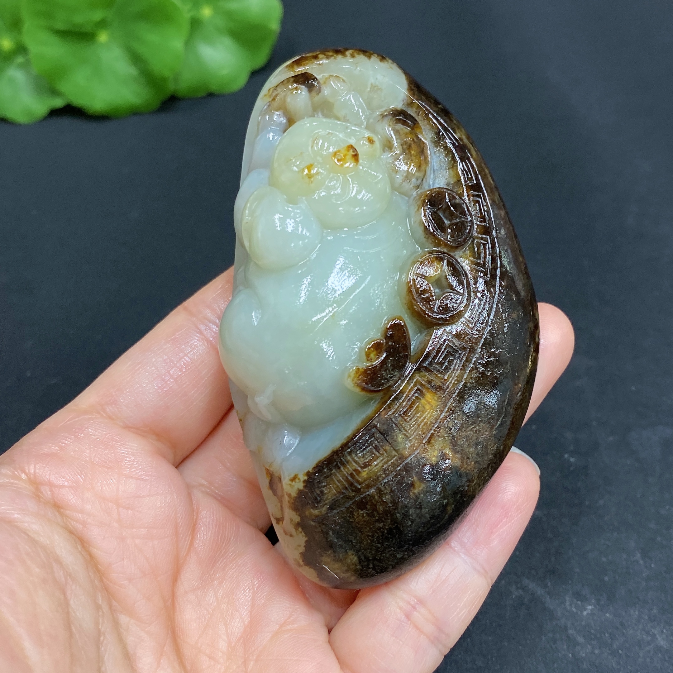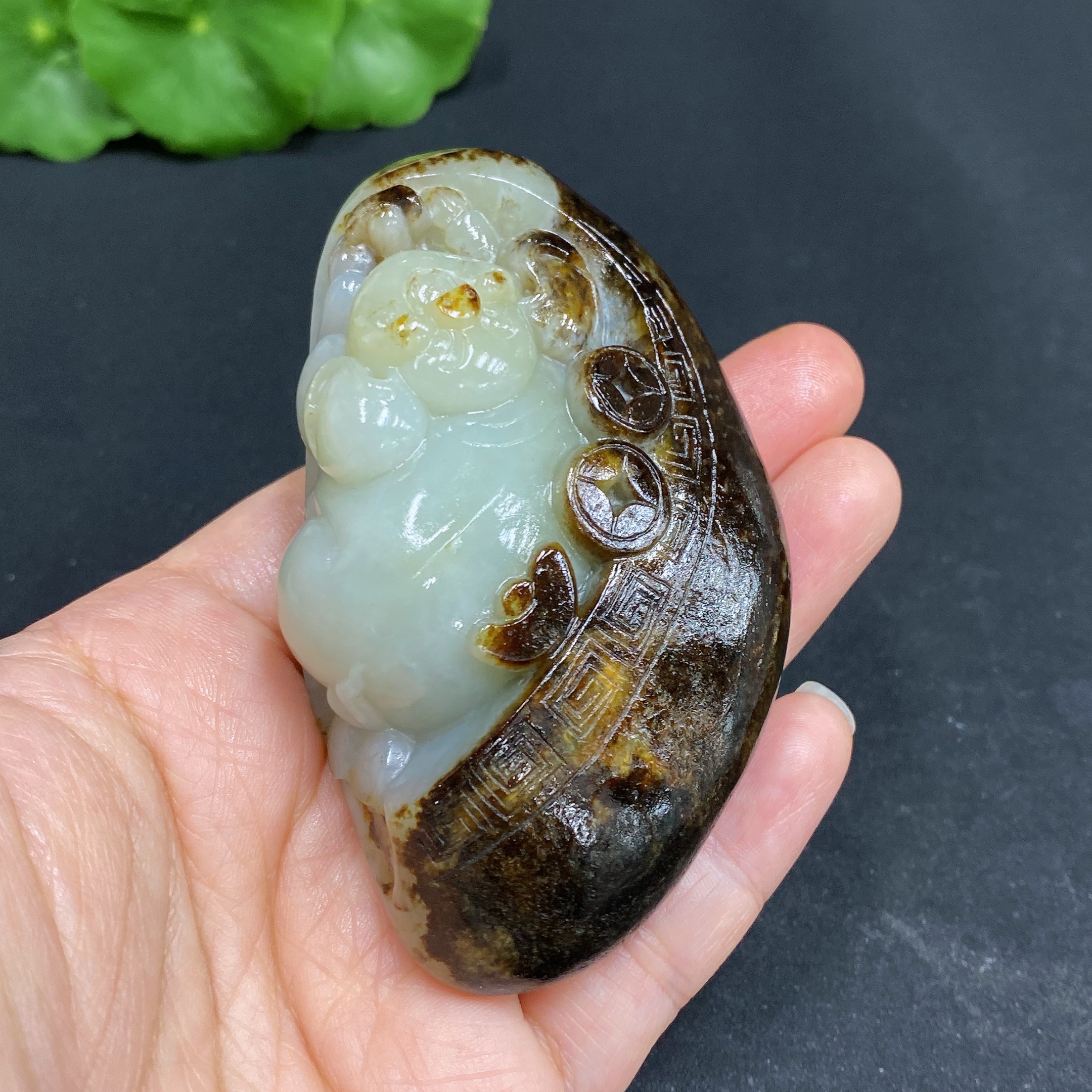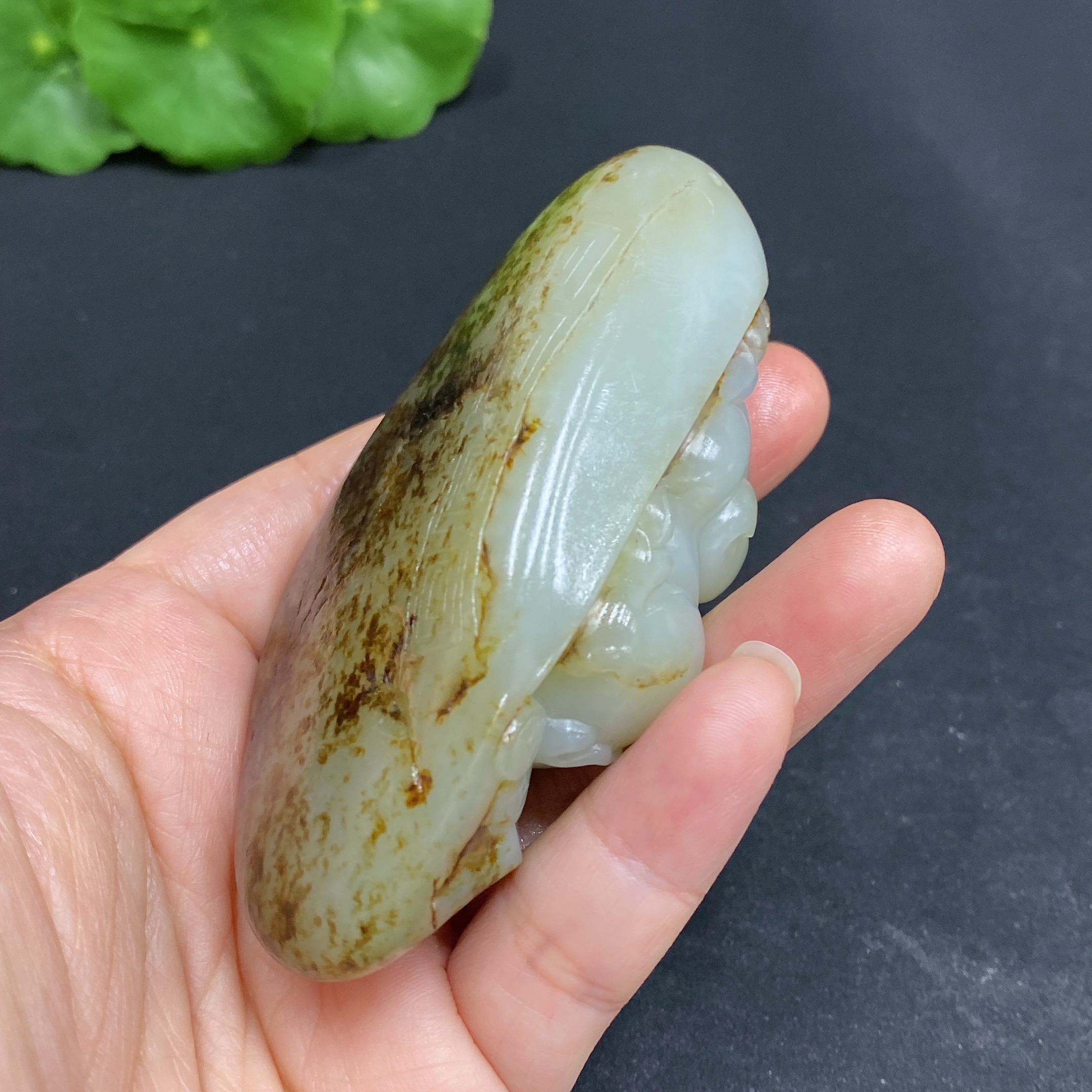 Hetian Jade Handheld Carving - Piglet, Total Weight Approx. 125.6g, Undetermined Skin Color Origin