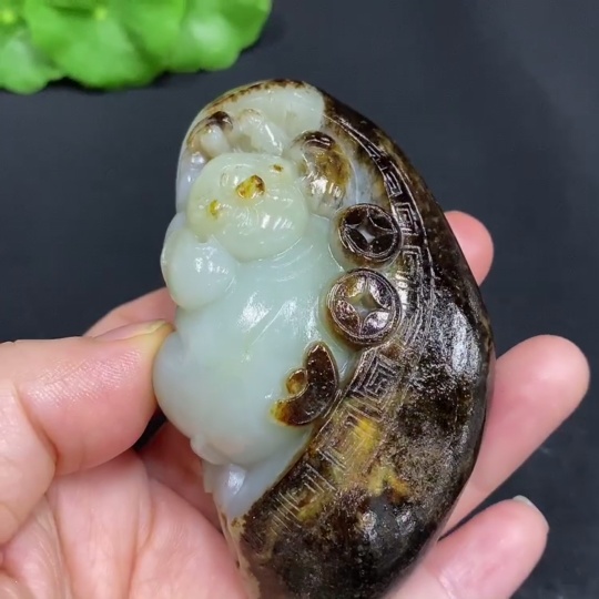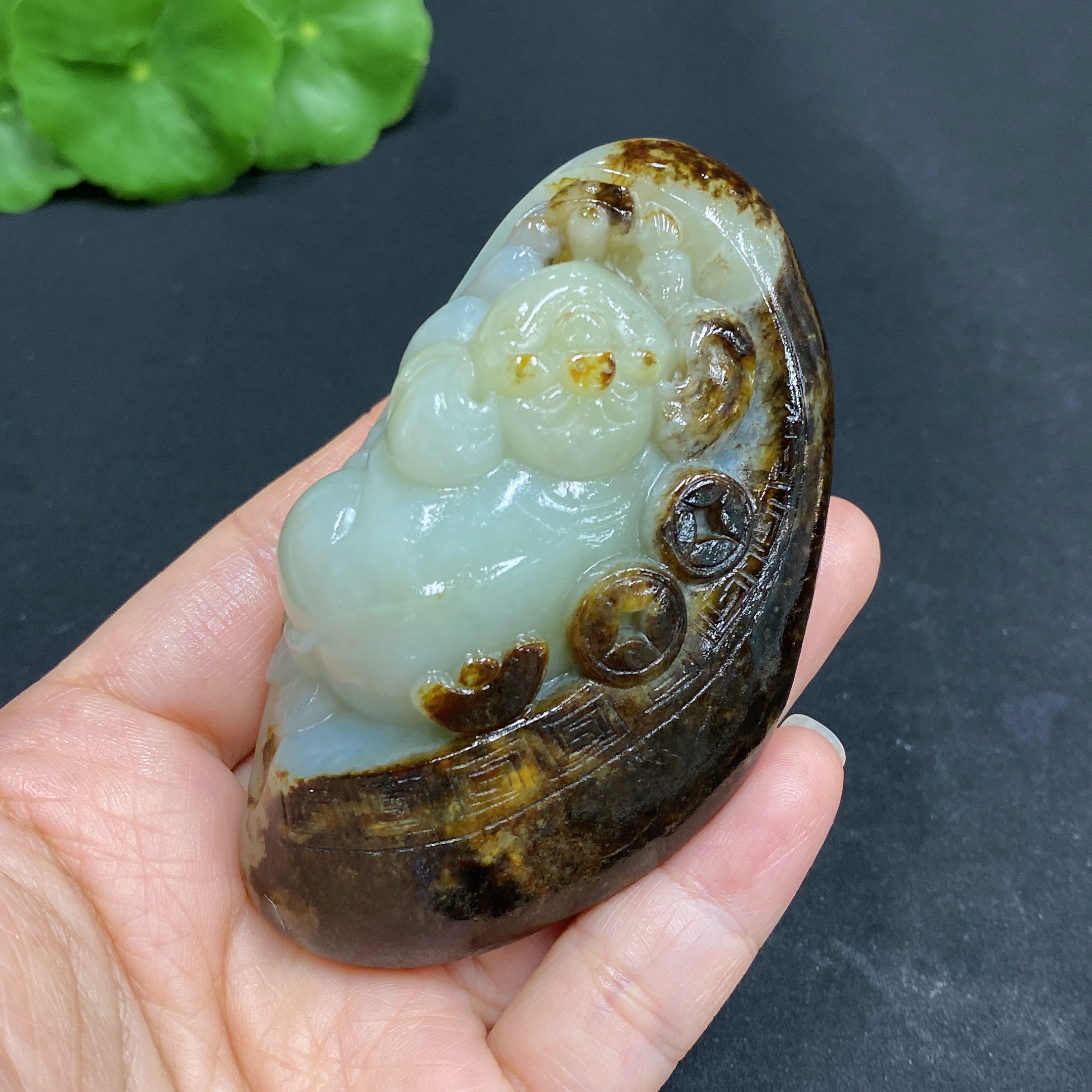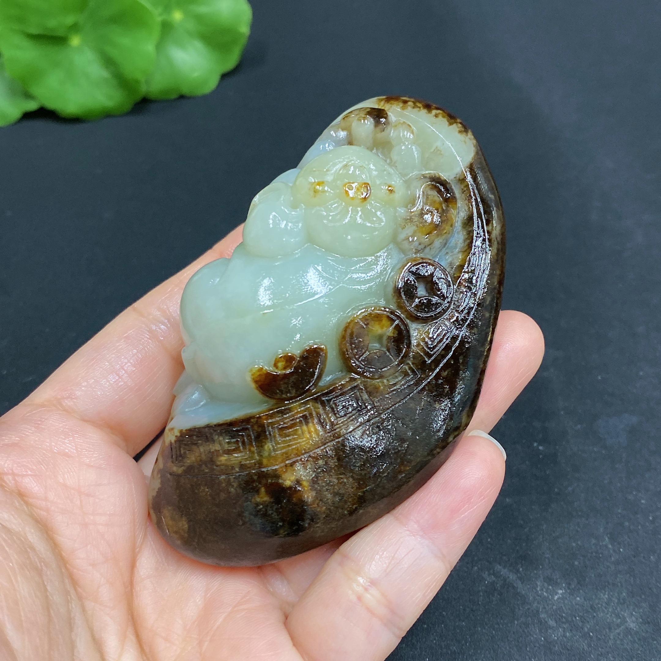 Hetian Jade Handheld Carving - Piglet, Total Weight Approx. 125.6g, Undetermined Skin Color Origin