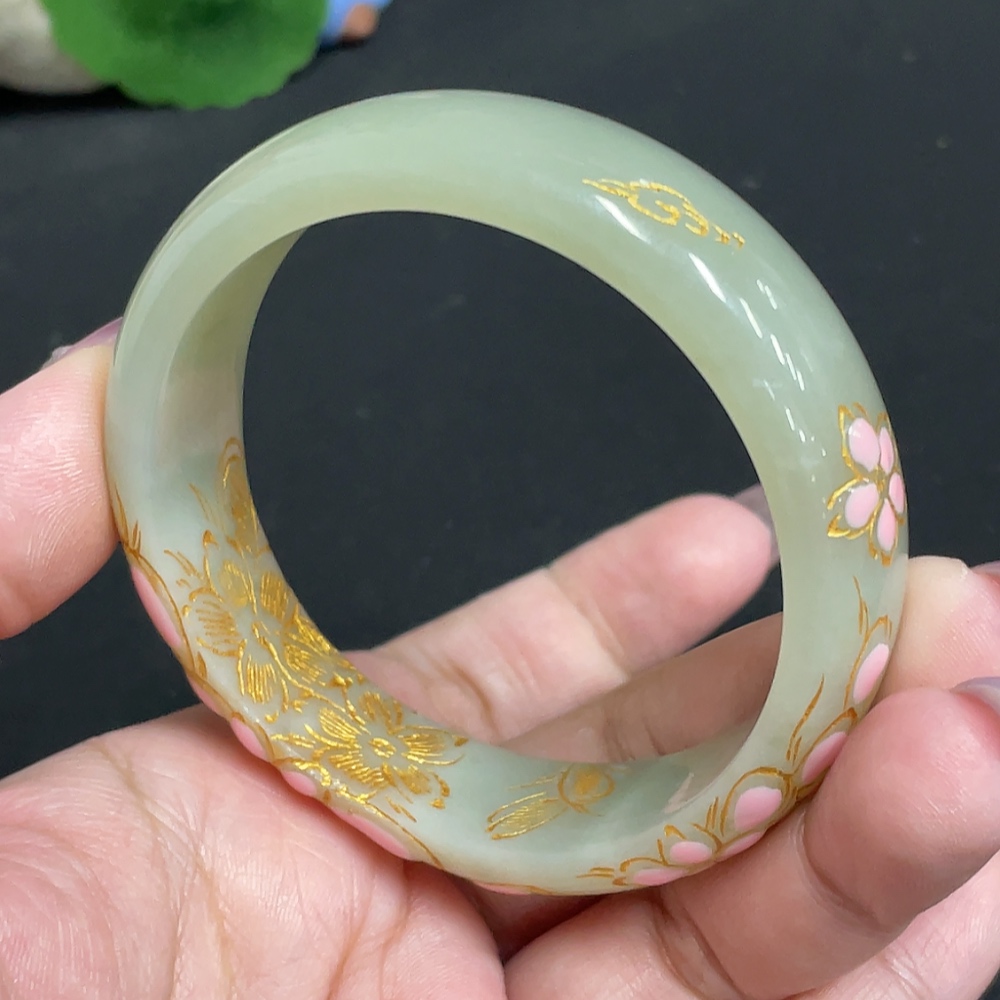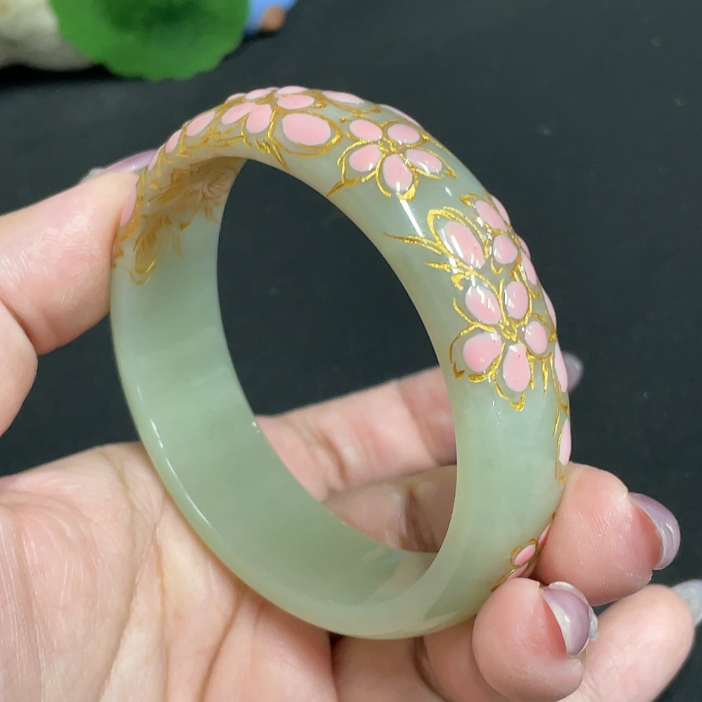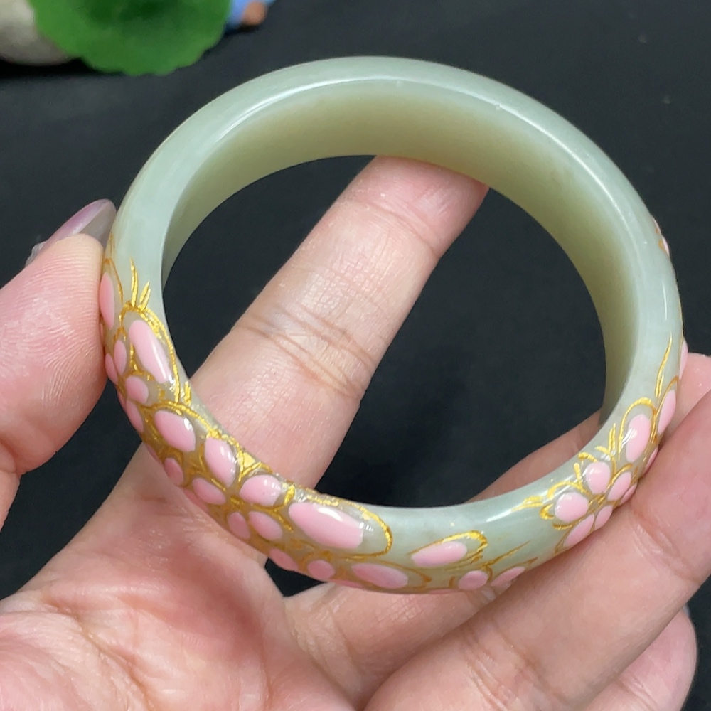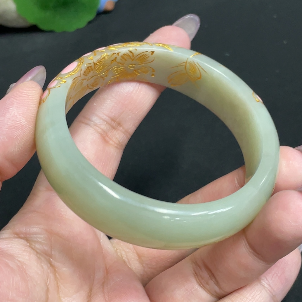 Hetian Jade Round Bracelet, Size 57.2, Visible Craft Coating, Total Weight Approx. 54.7g