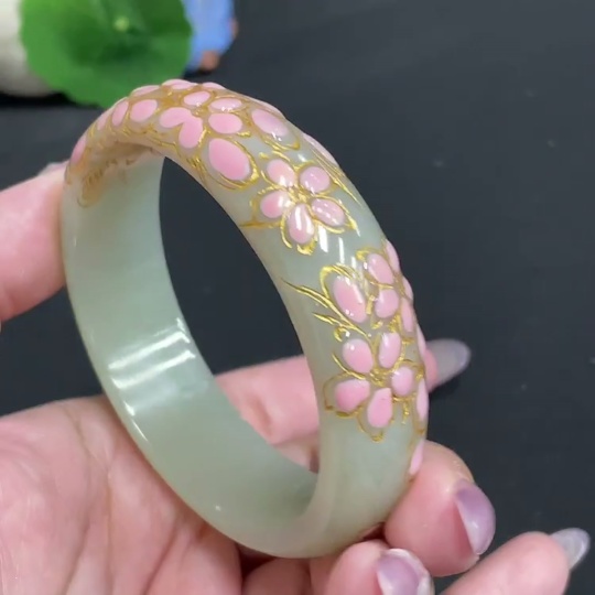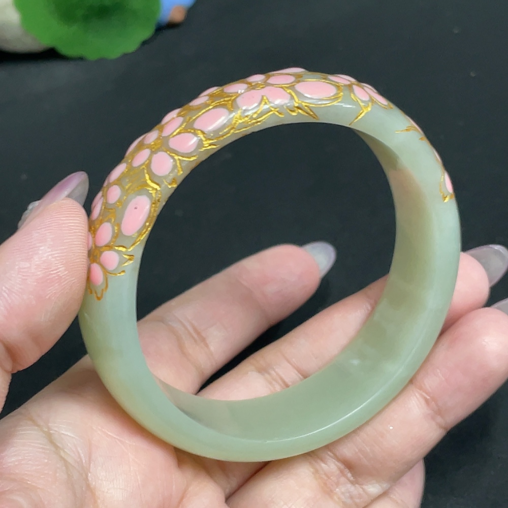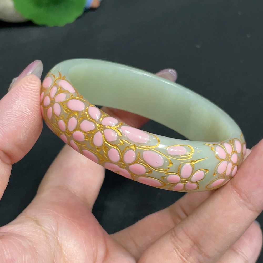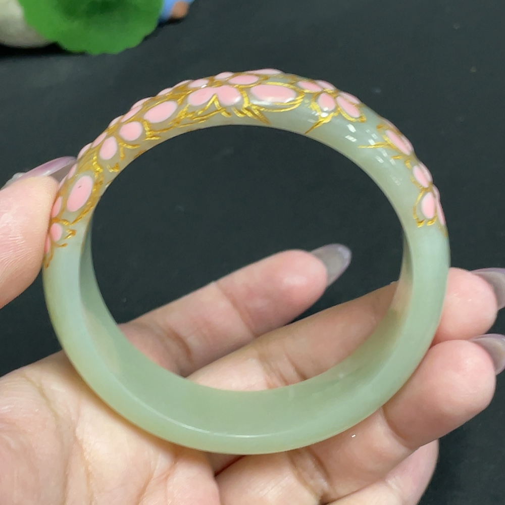Hetian Jade Round Bracelet, Size 57.2, Visible Craft Coating, Total Weight Approx. 54.7g