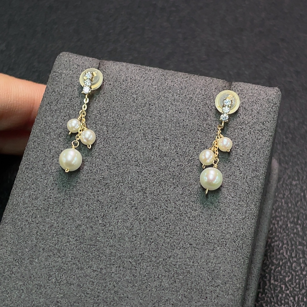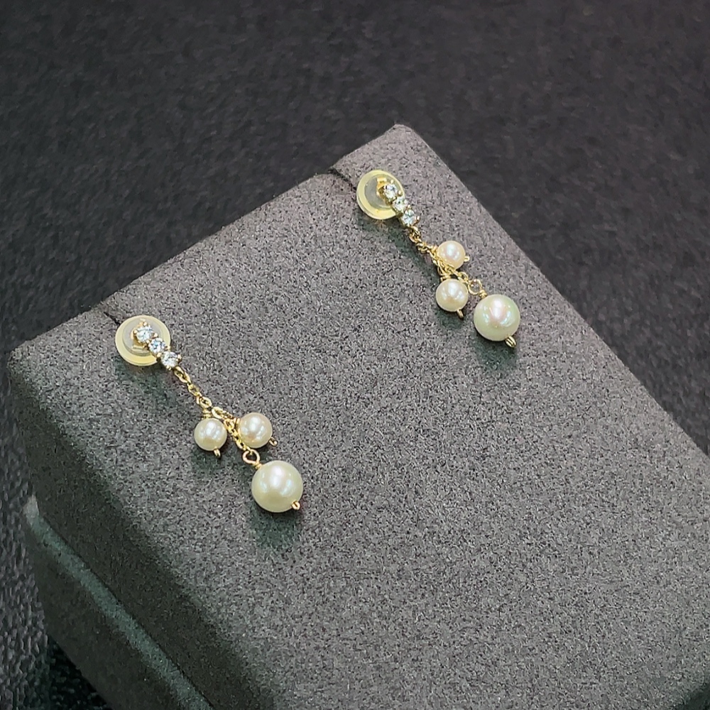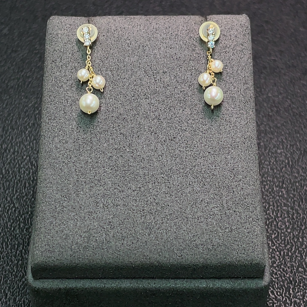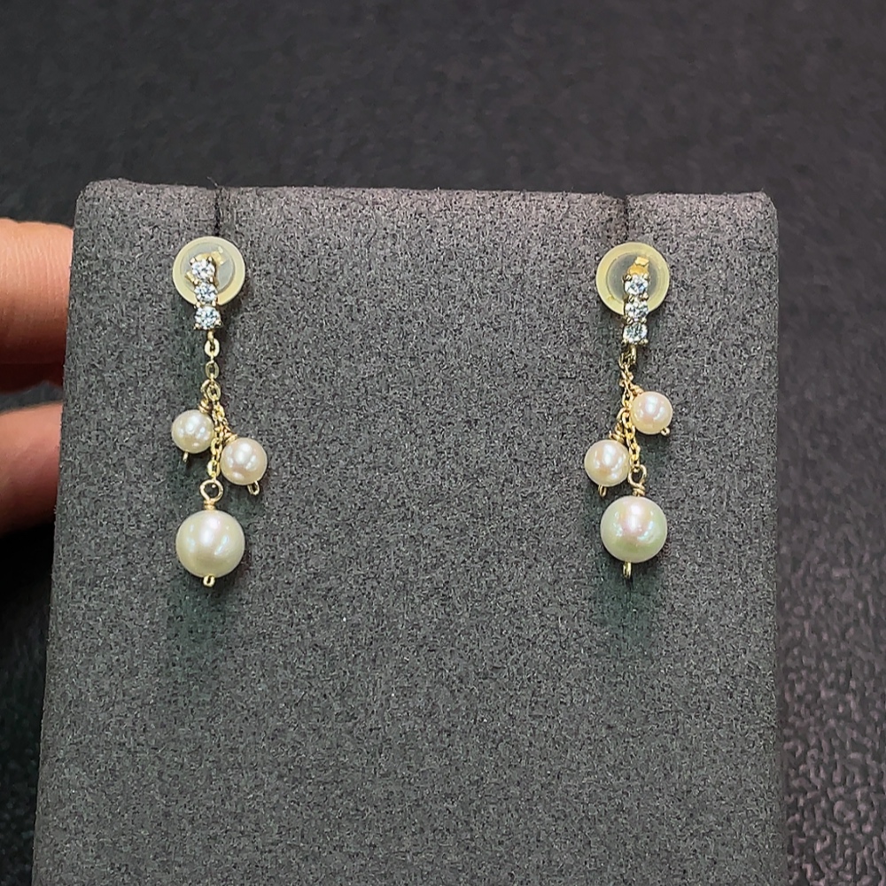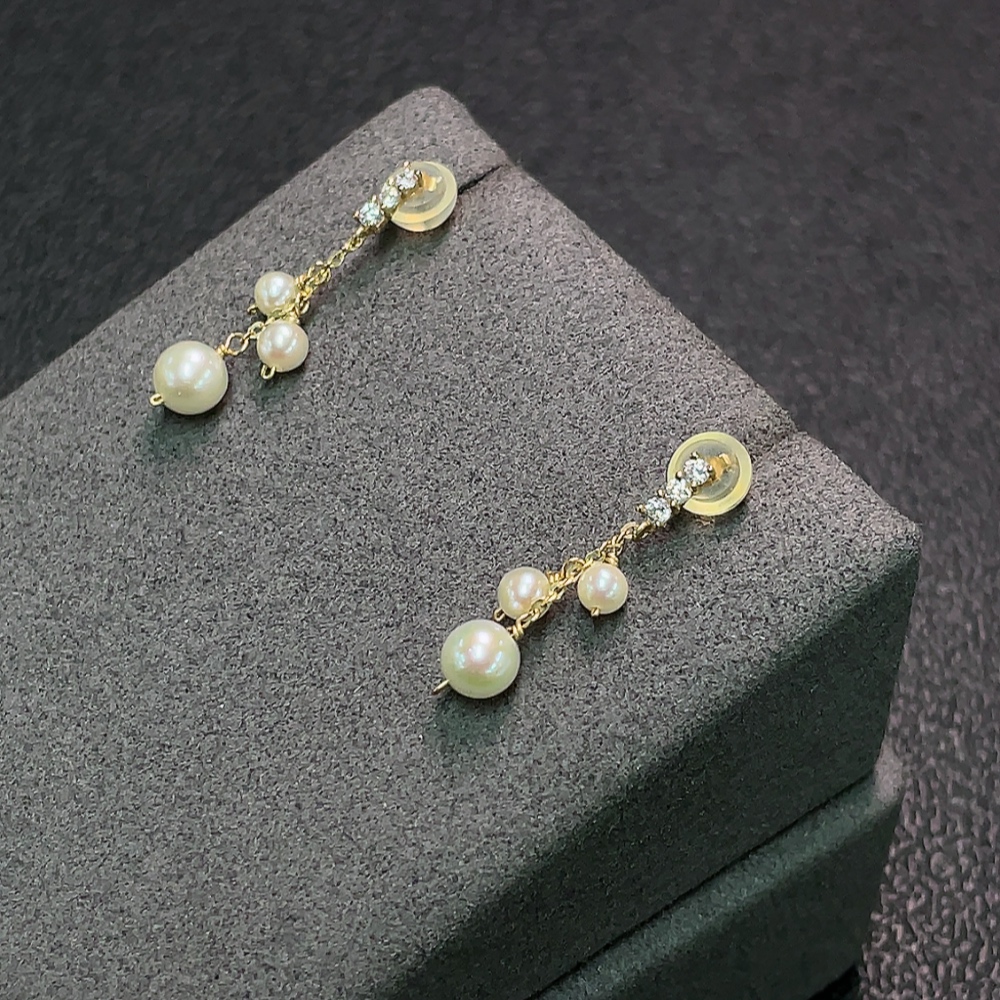Seawater Pearl Earrings with Small Pearl, Needle Au40% Non-Gold Wire, Total Weight Approx. 0.96g, Card 5mm