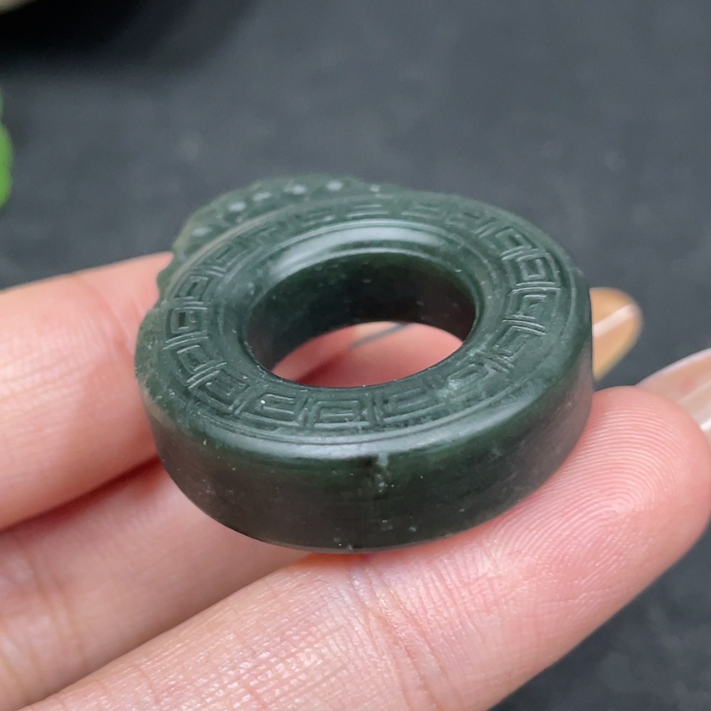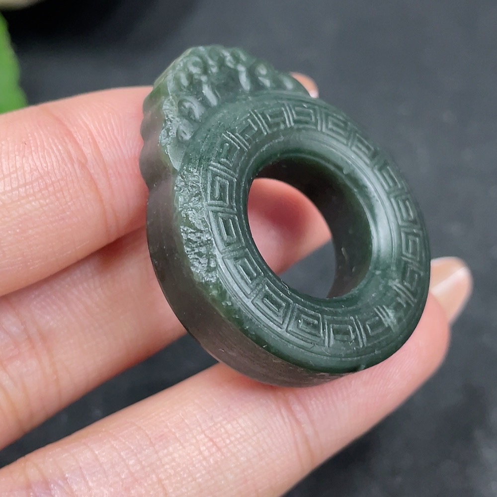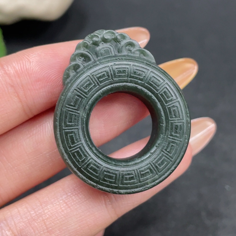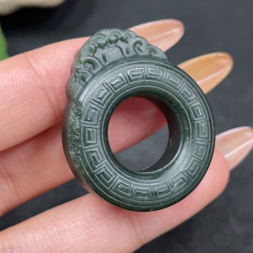 Hetian Jade Pendant - Archaized Ring - Total Weight Approx. 14.5g