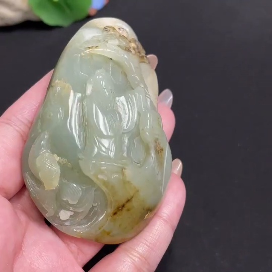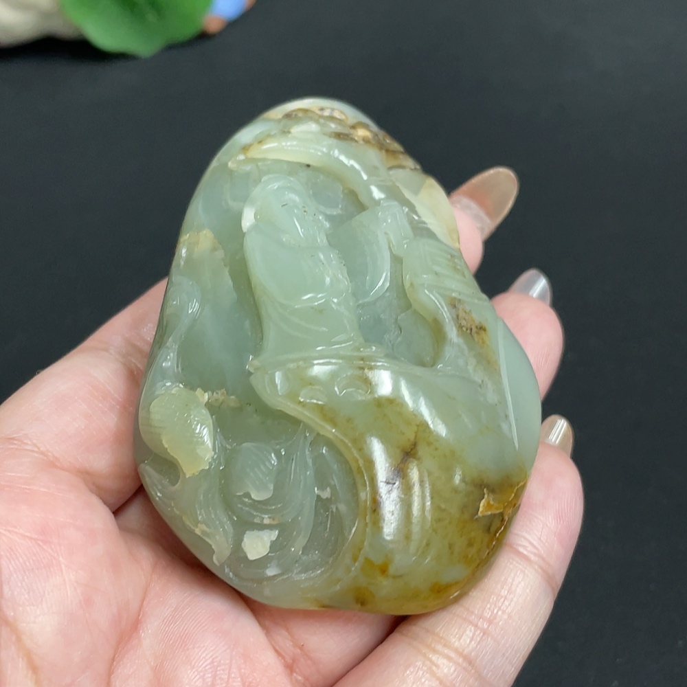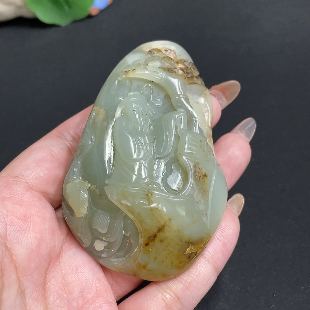 Hetian Jade Handheld Piece "Poet" Total Weight Approximately 151.9g Undetermined Skin Color Origin