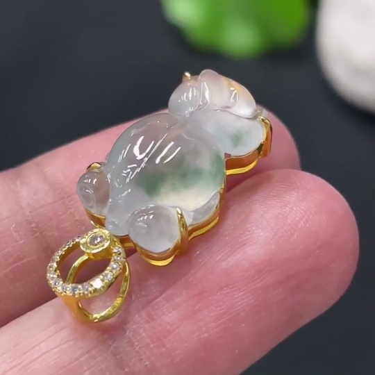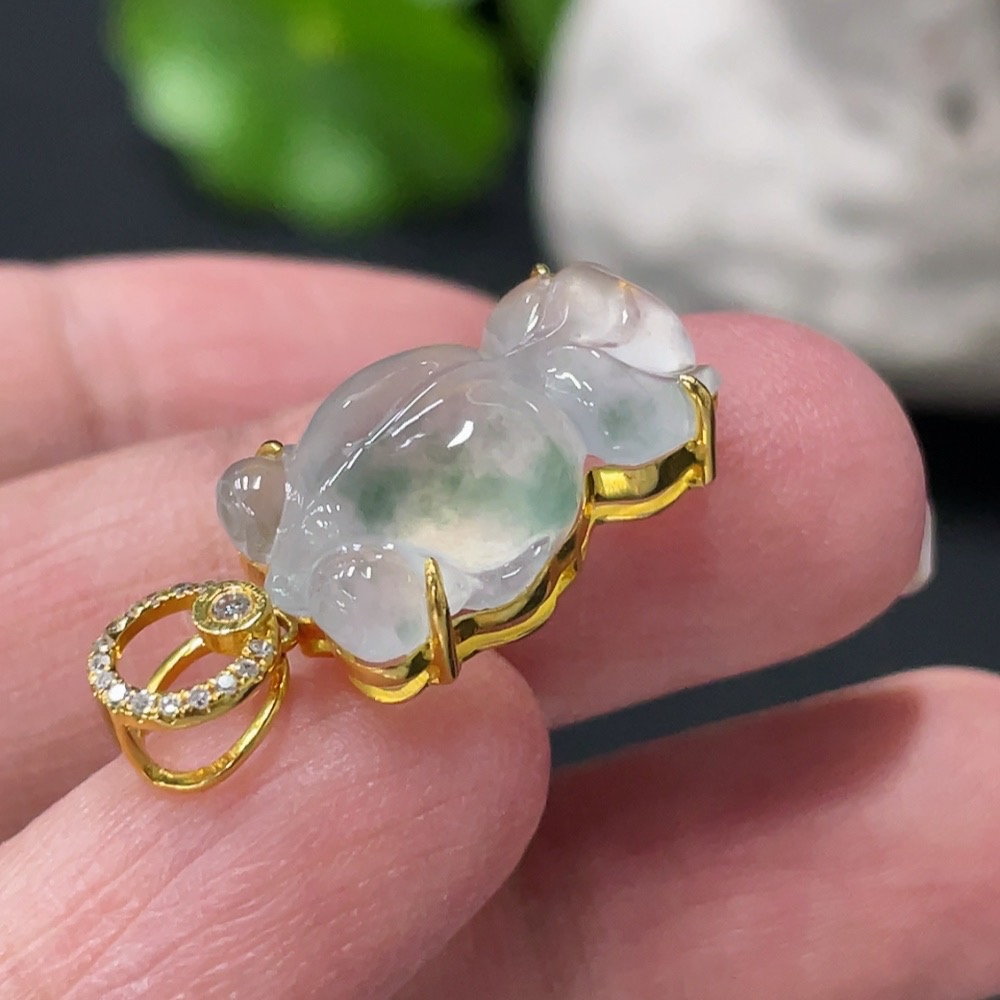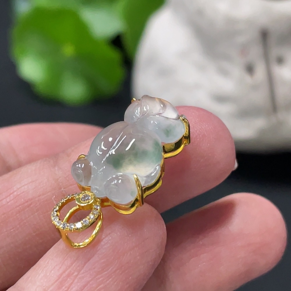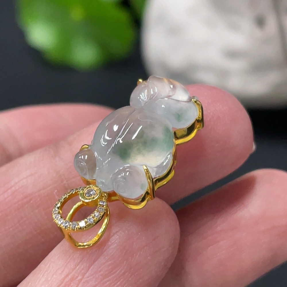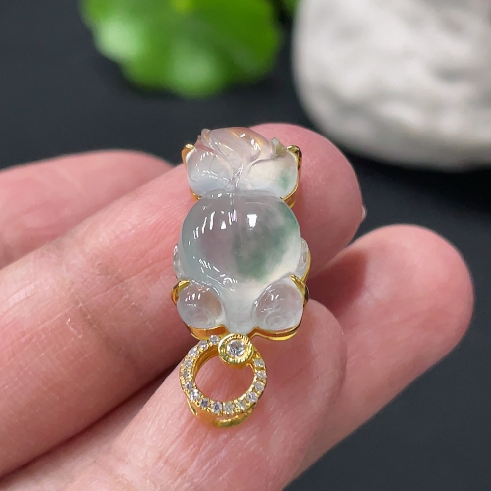 Jadeite Goldfish Inlaid Pendant 18K Gold Setting with Diamond Accents Total Weight Approx. 2.87g