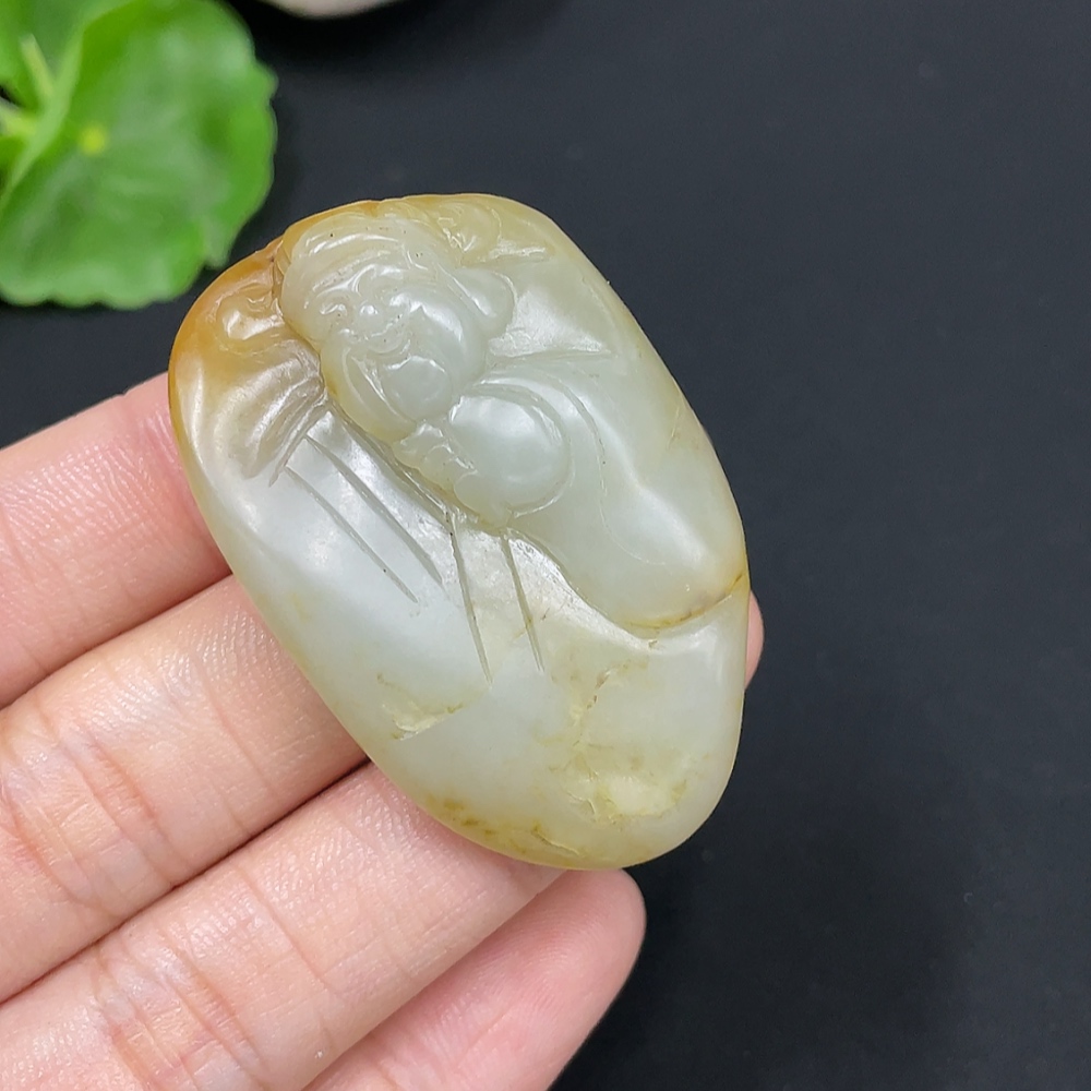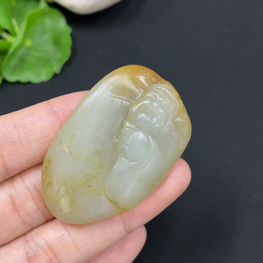 Hetian Jade Pendant - God of Wealth, Total Weight Approx. 27.4g, Undetermined Skin Color Cause