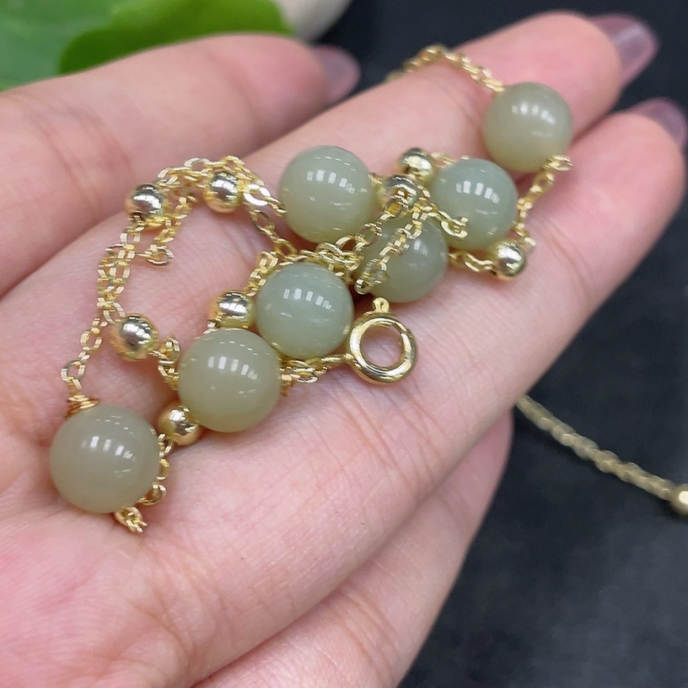 Trezaar - Hetian Jade Bead Necklace Non-Gold Size Approx. 7.5mm Total Weight Approx. 8g