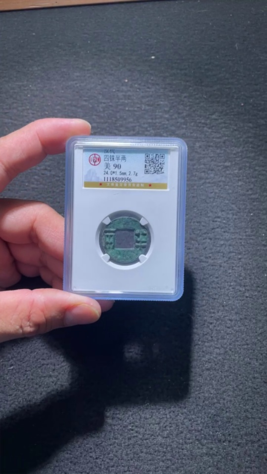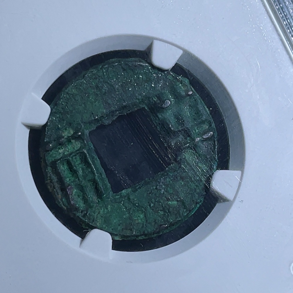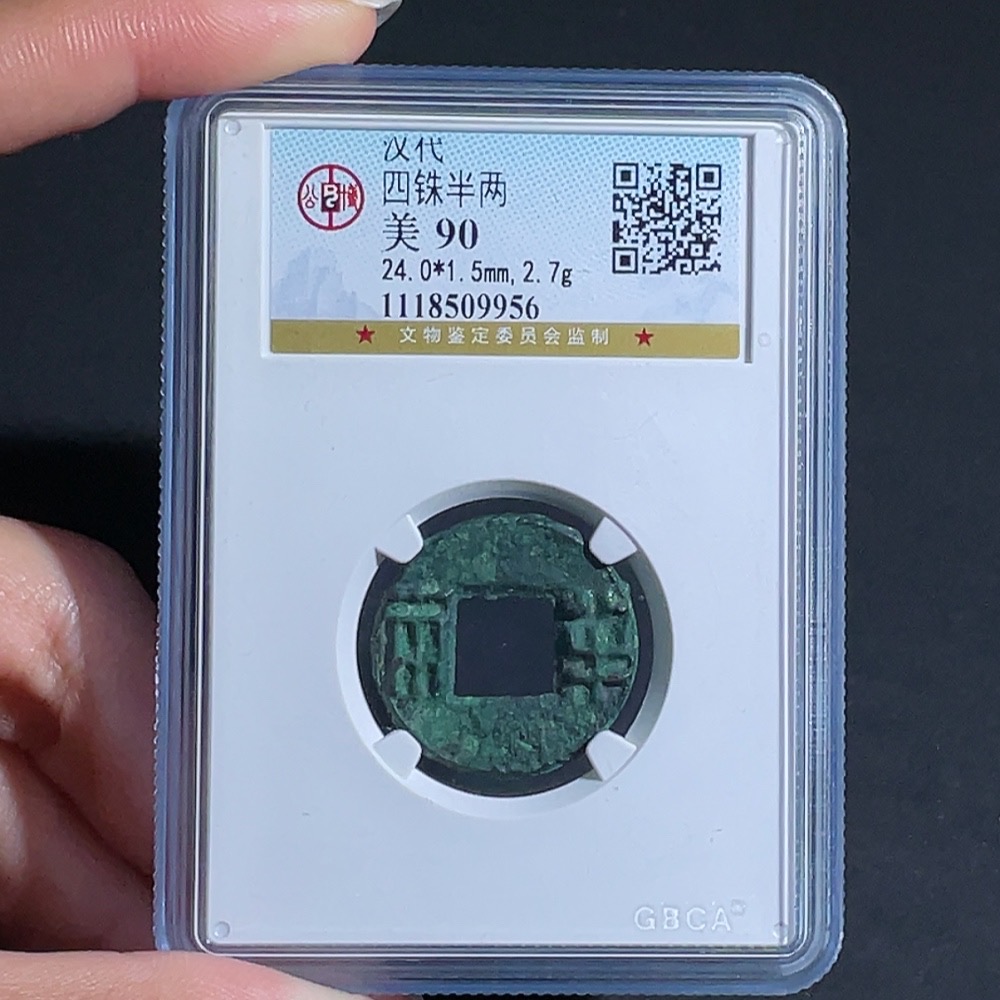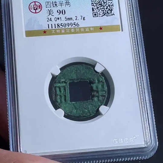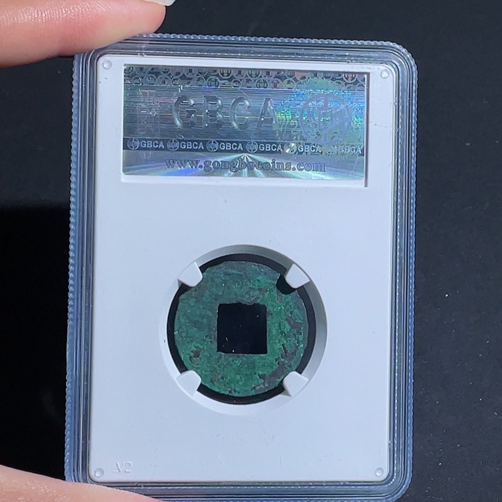 Half-Tael Coin with Four Zhu, Half-Tael, GBCA 90 Points, Explosive Characters, Explosive Green Patina Half-Tael