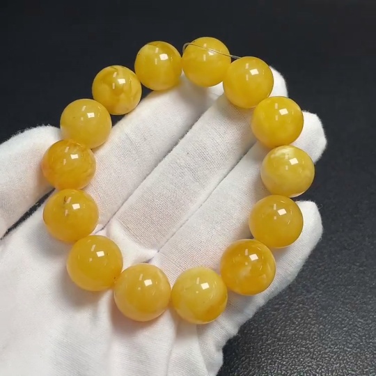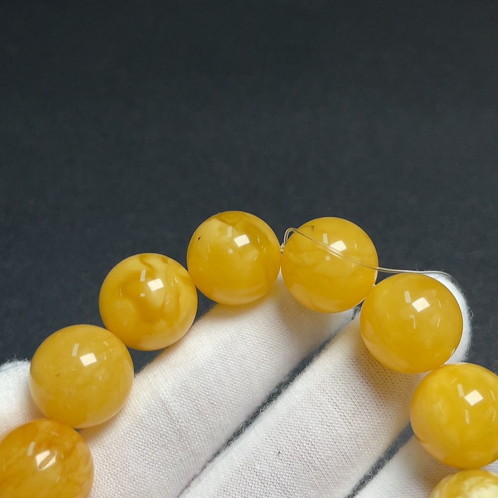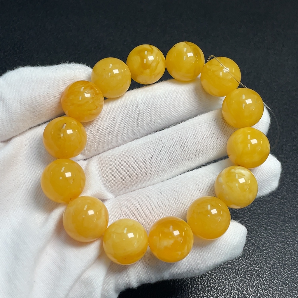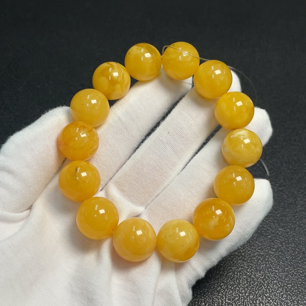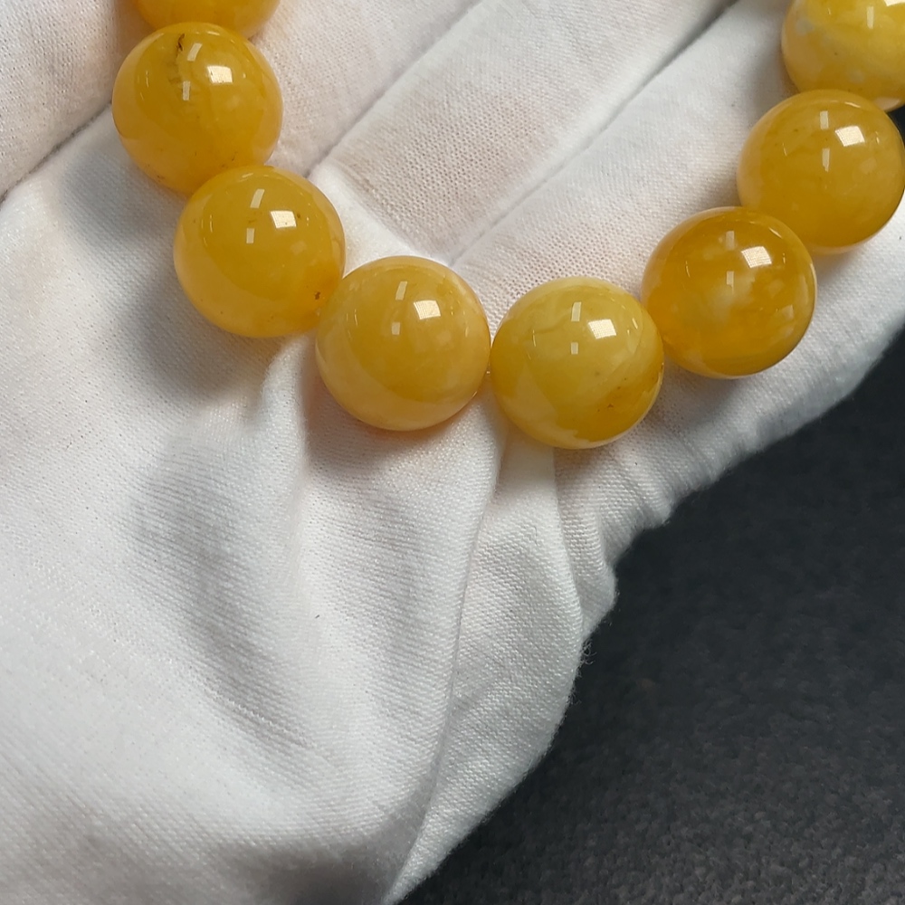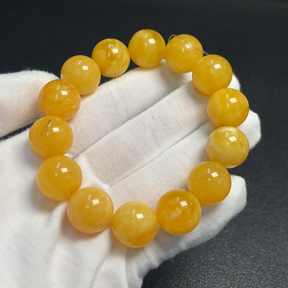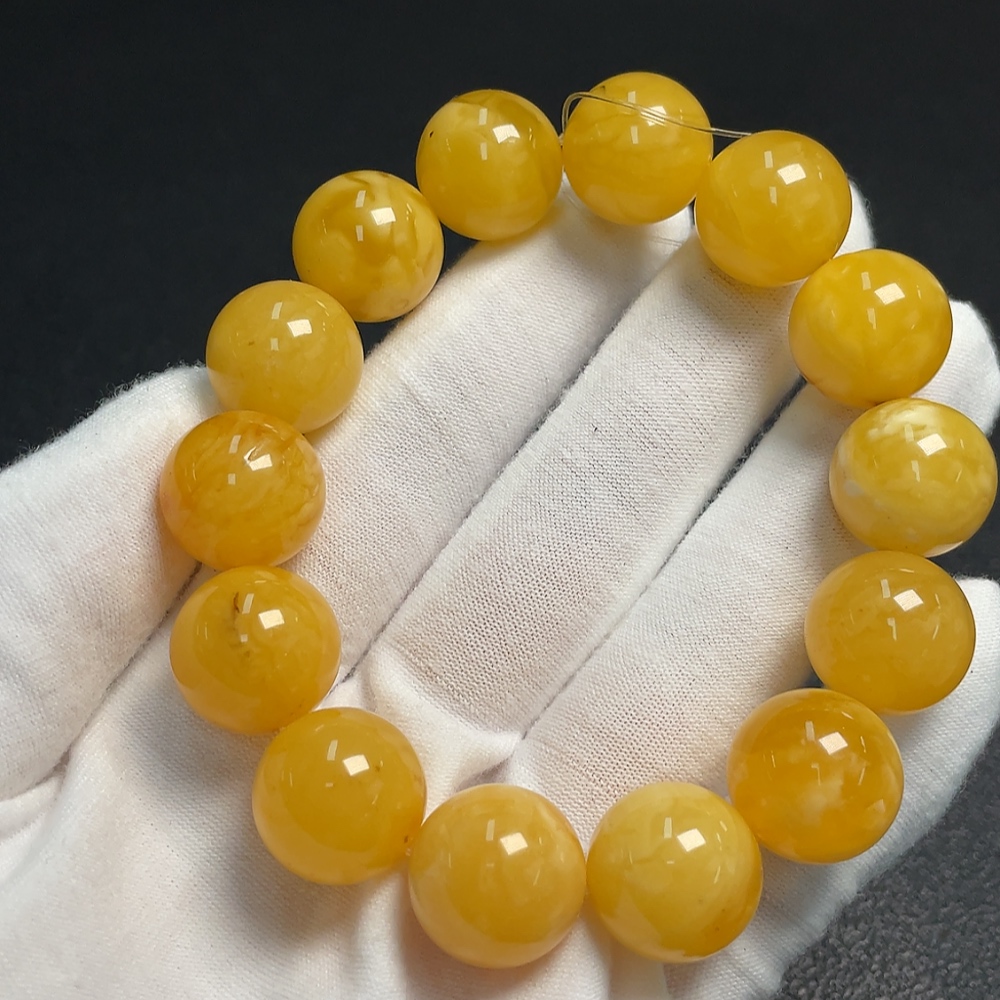 Amber Beeswax Bracelet, Total Weight Approx. 30.92g, Size About 15.7mm, Partial Repairs Visible