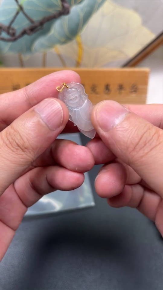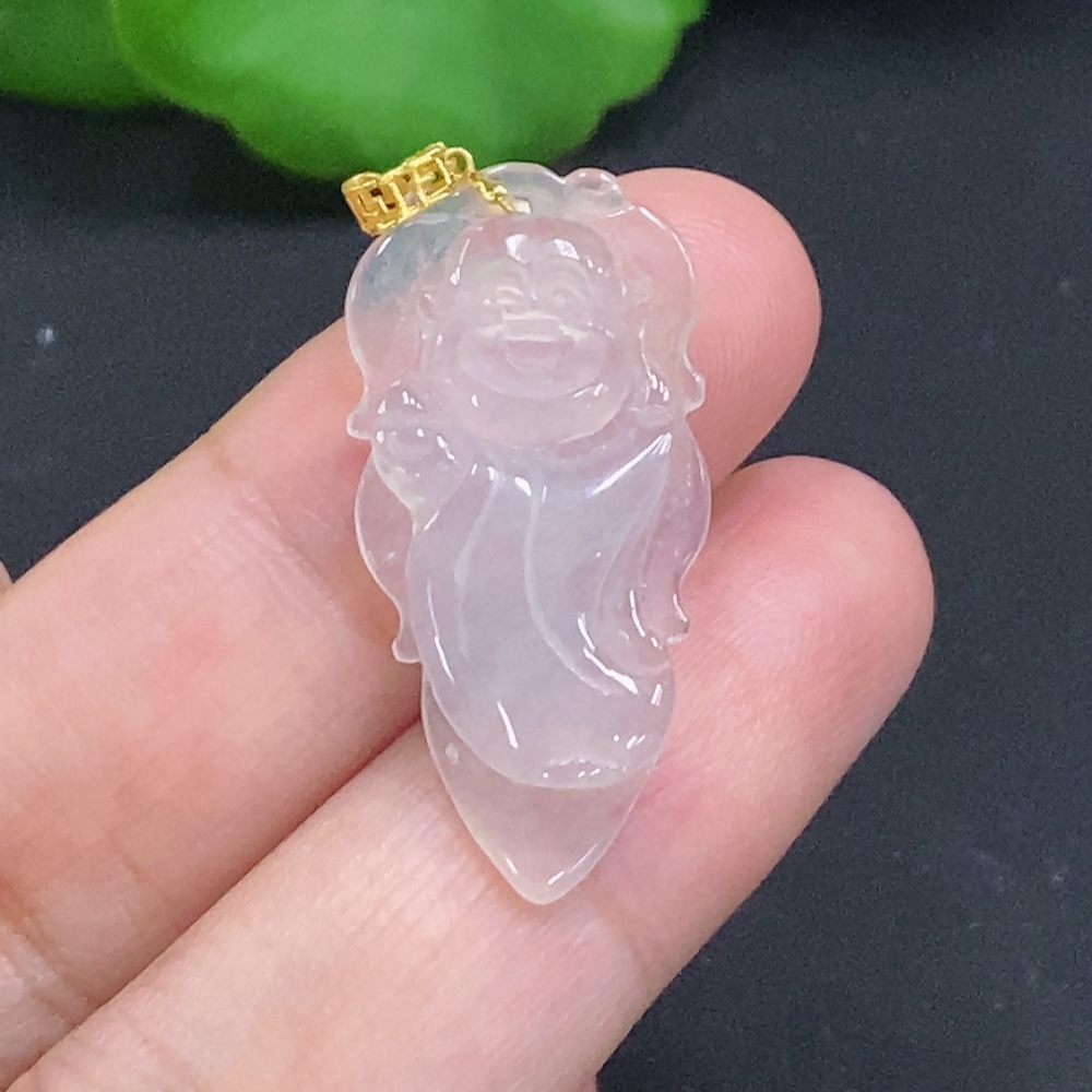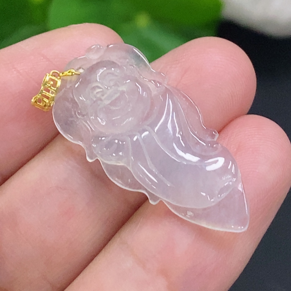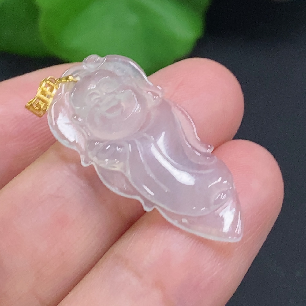 Jadeite Buddha Pendant with 18K Gold Clasp, Total Weight Approximately 1.9g