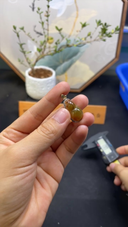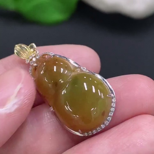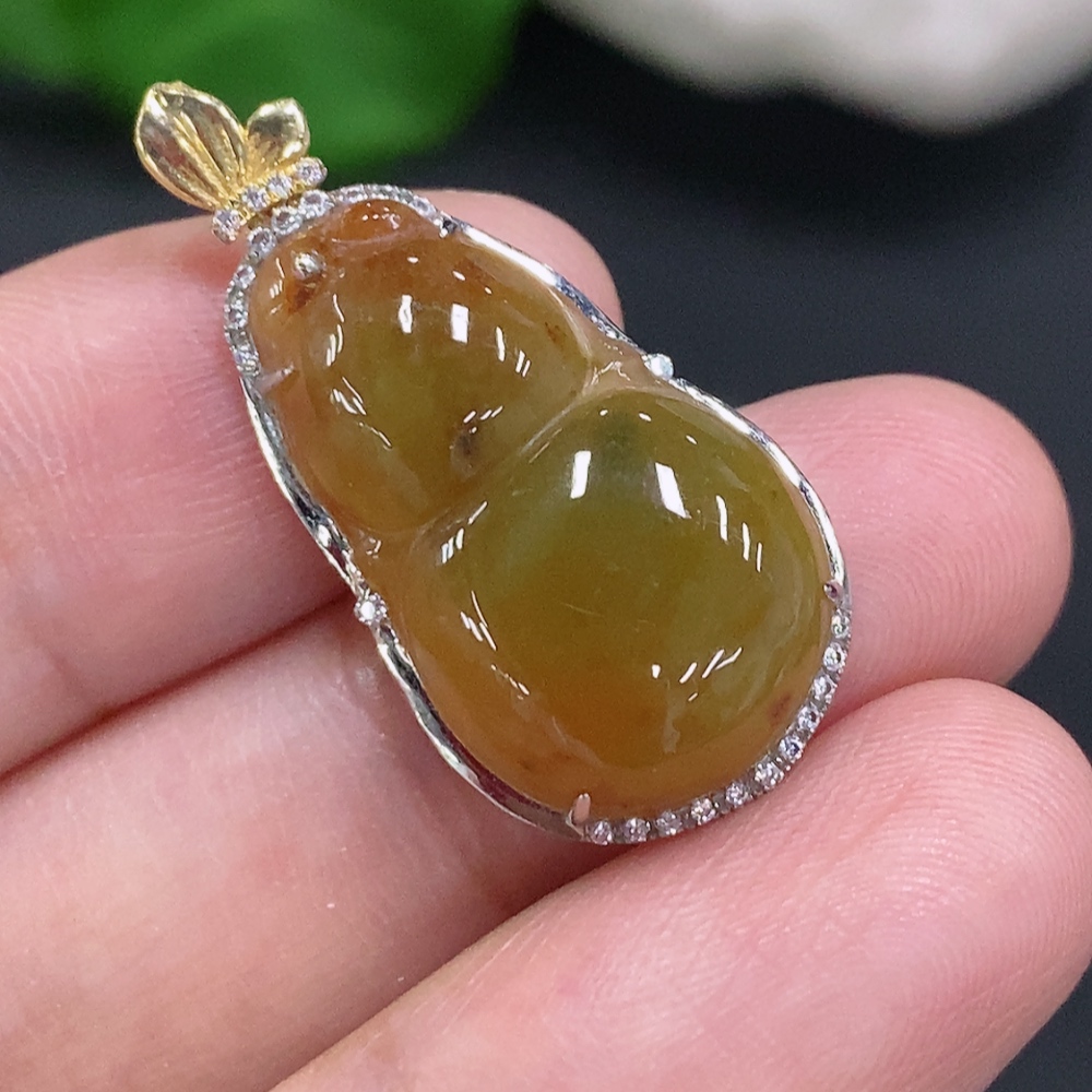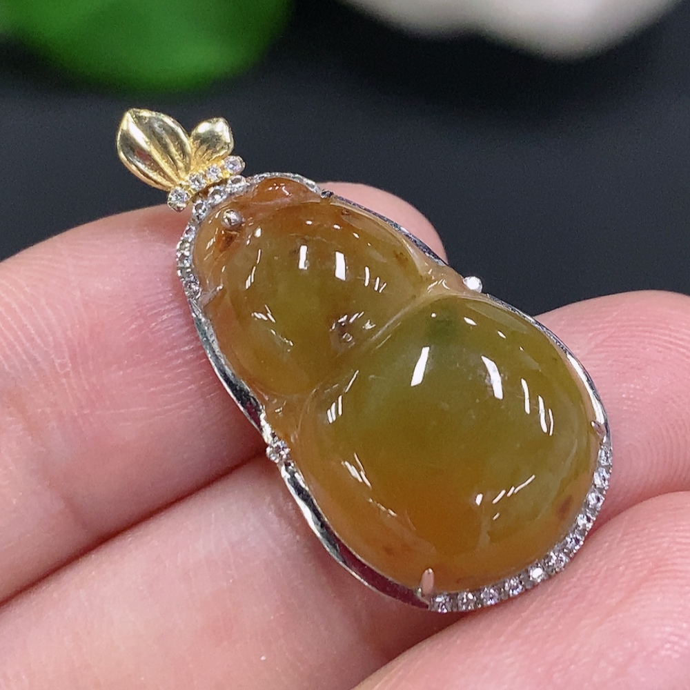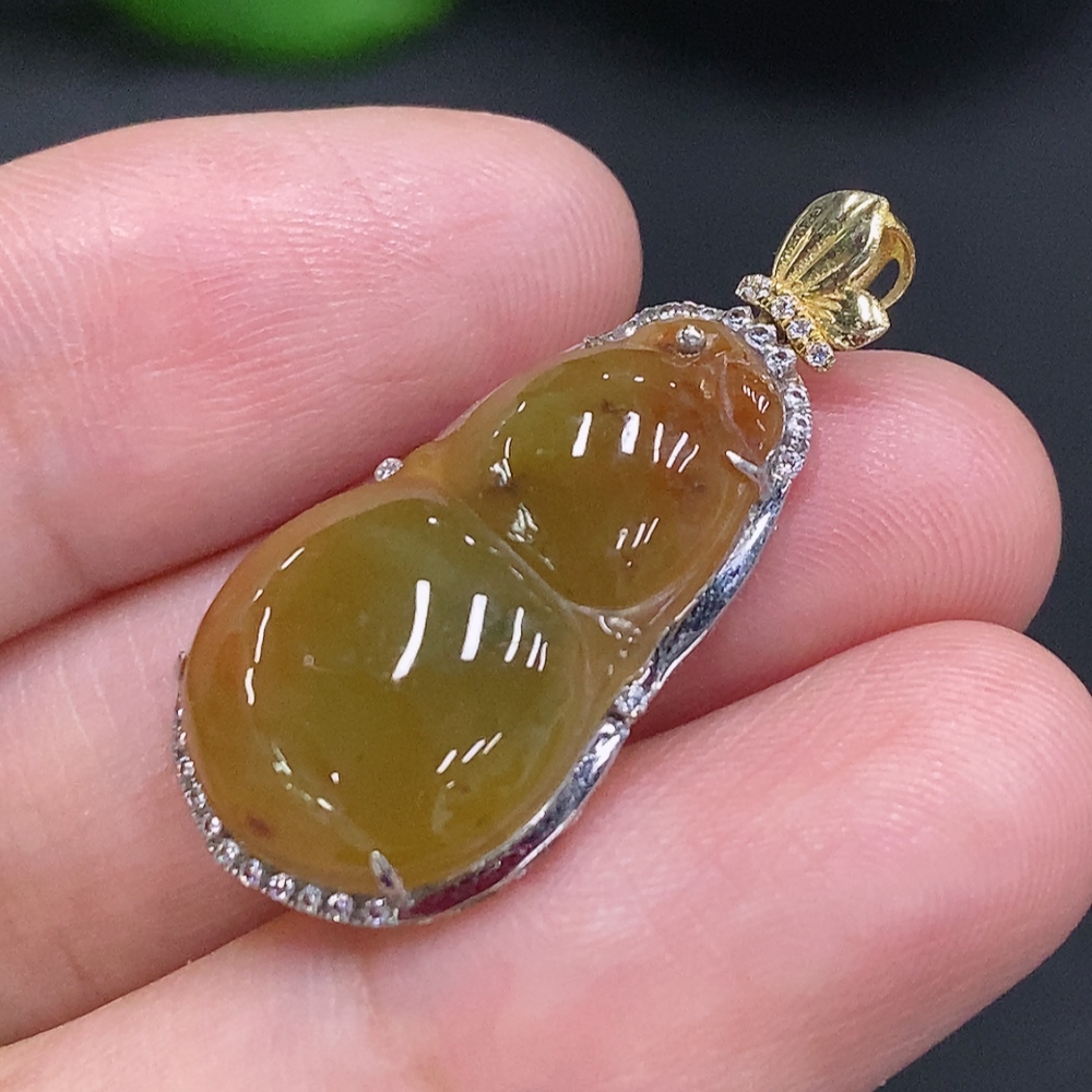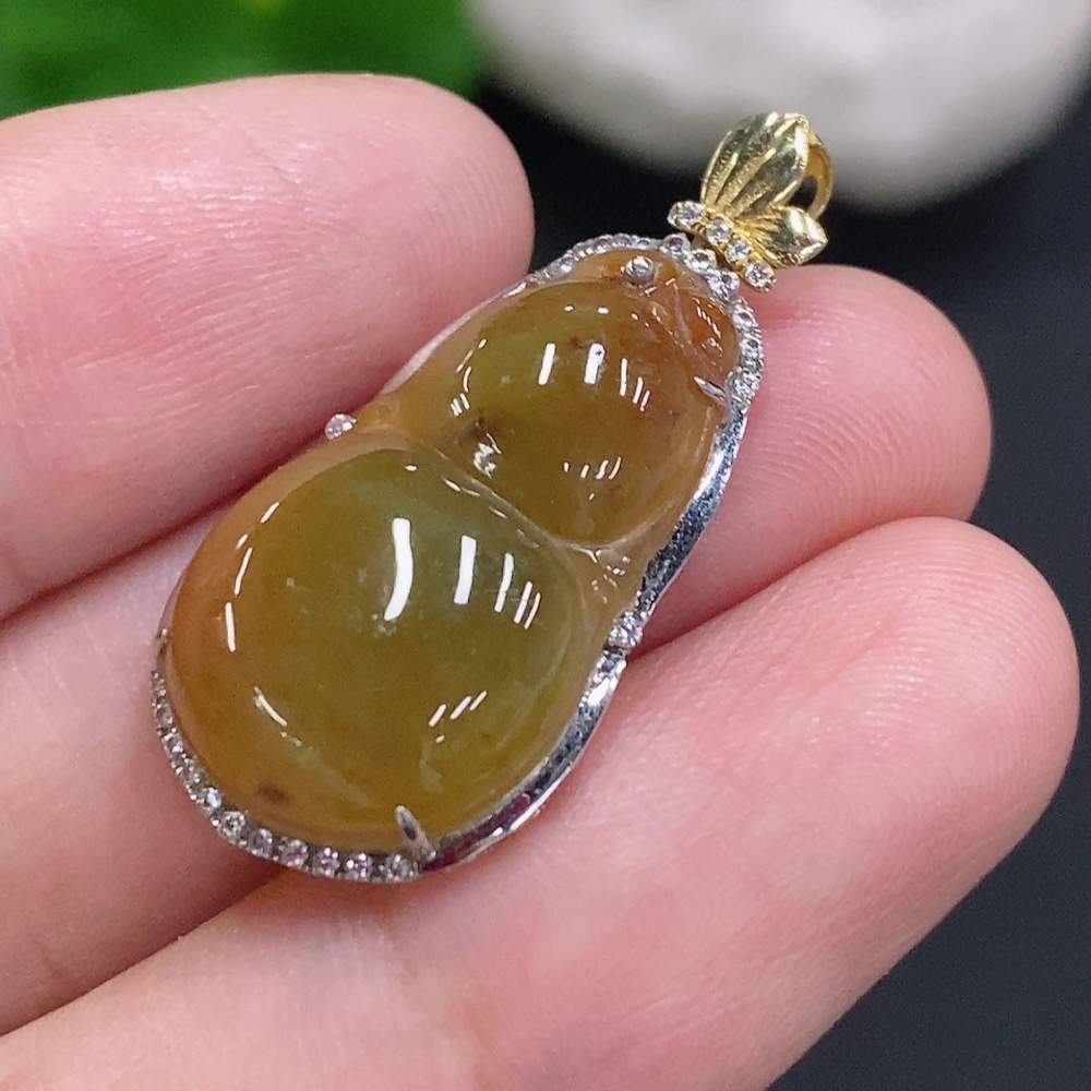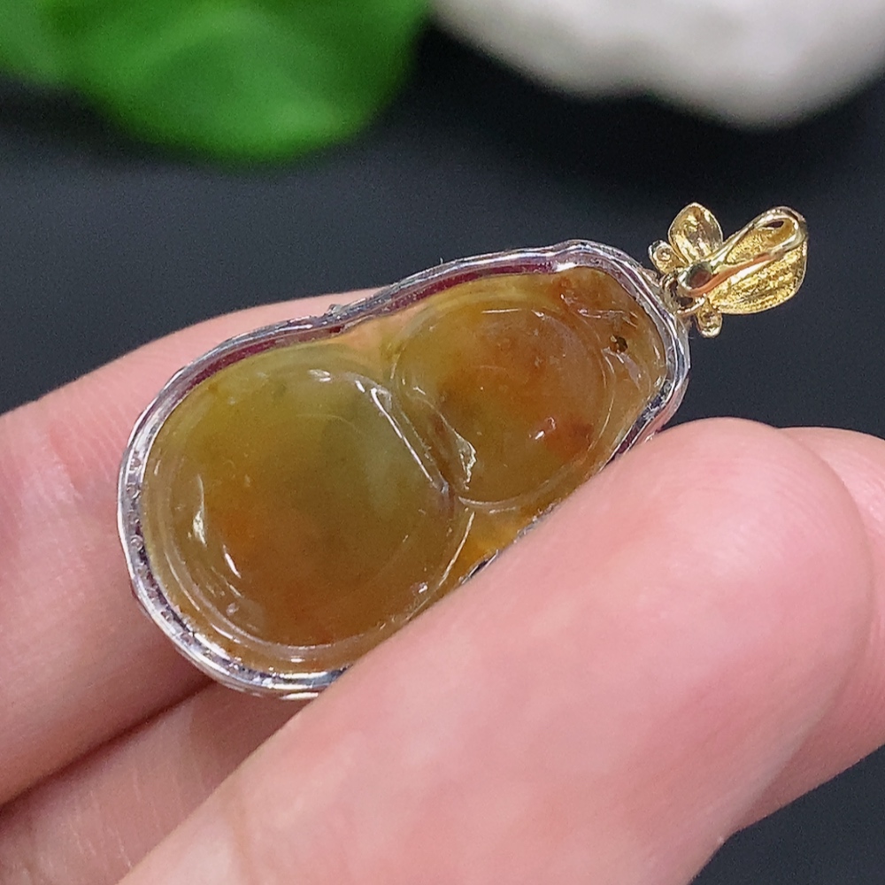 Jadeite Gourd Inlaid Pendant 18K Gold Total Weight Approx. 2.8g (Non-Diamond) (Color Origin Undetermined)