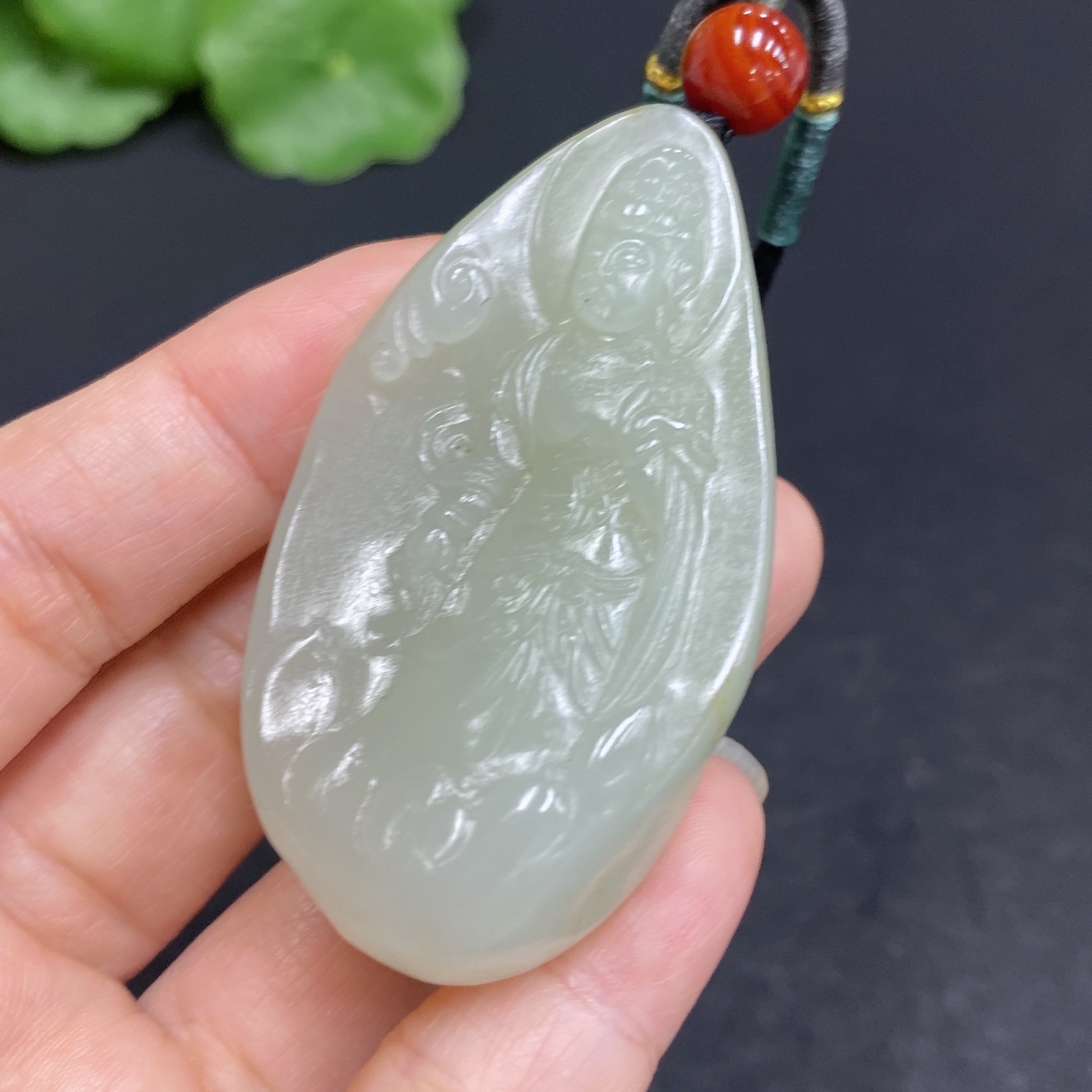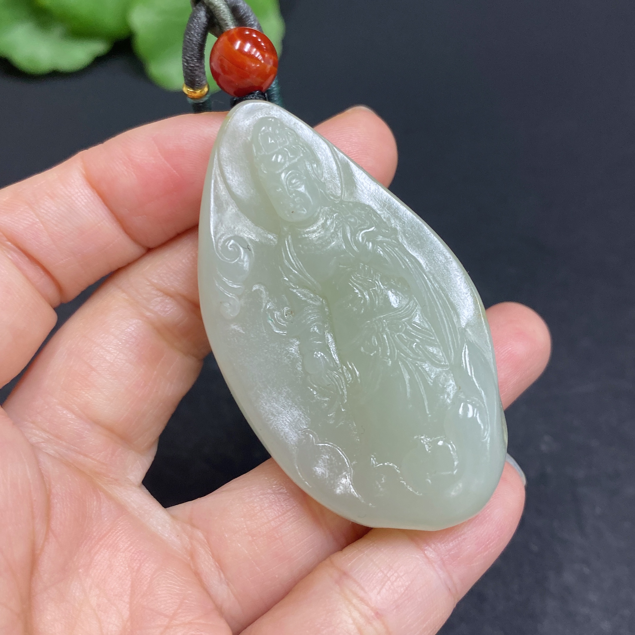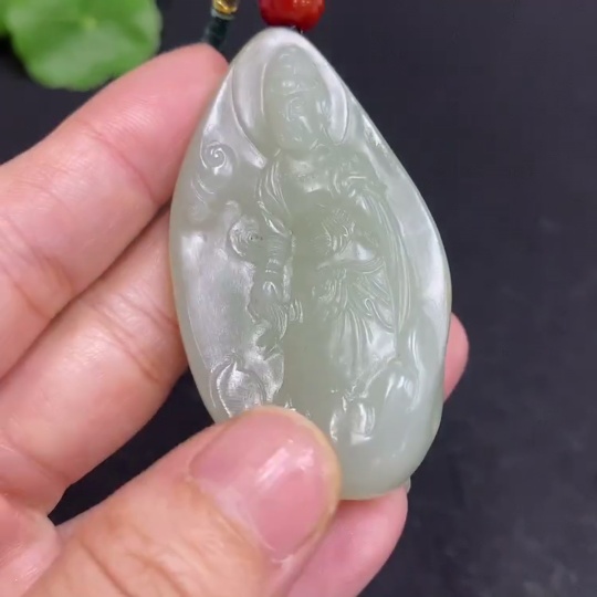 Hetian Jade Pendant Guanyin Total Weight (including rope) Approx. 40.3g Undetermined Skin Color Cause