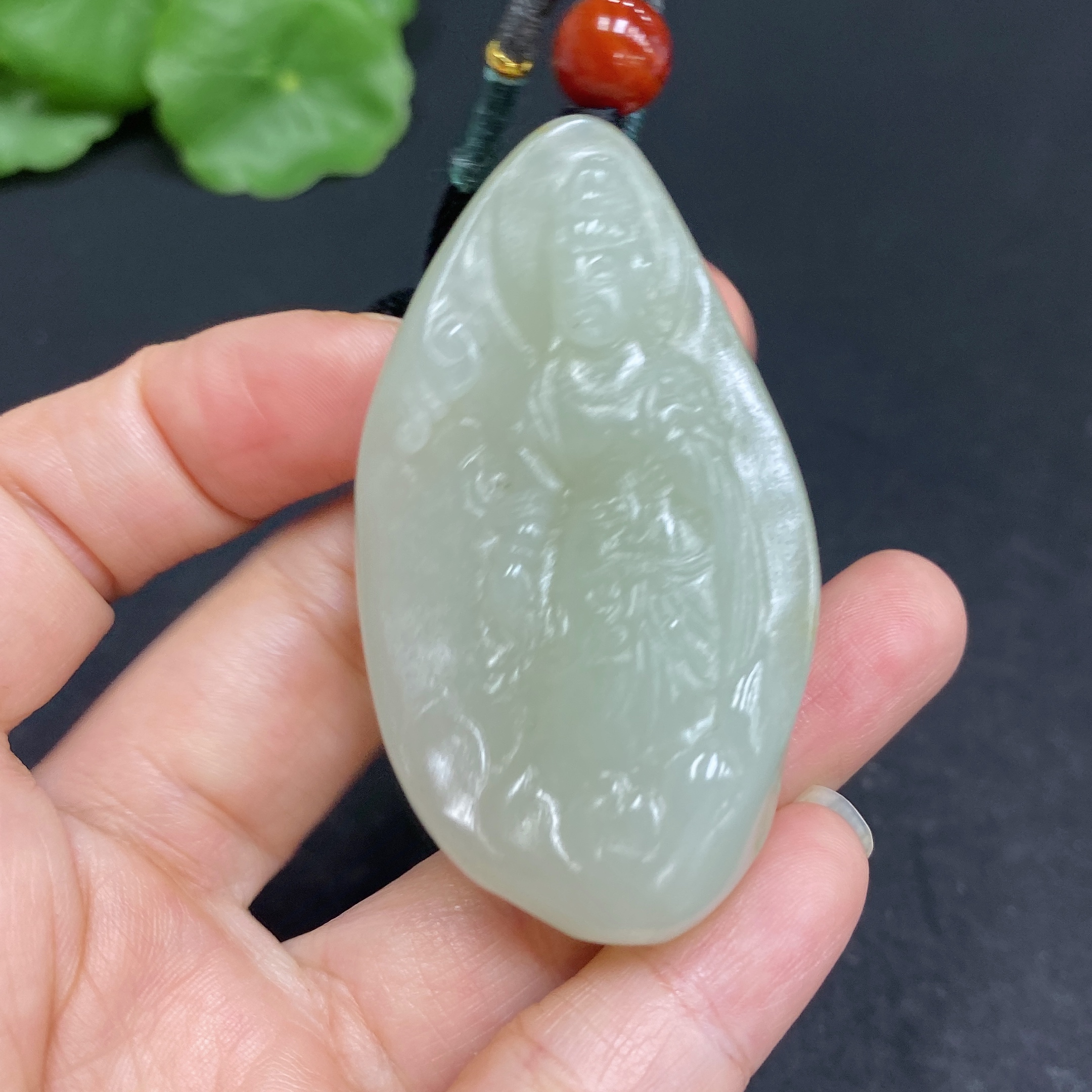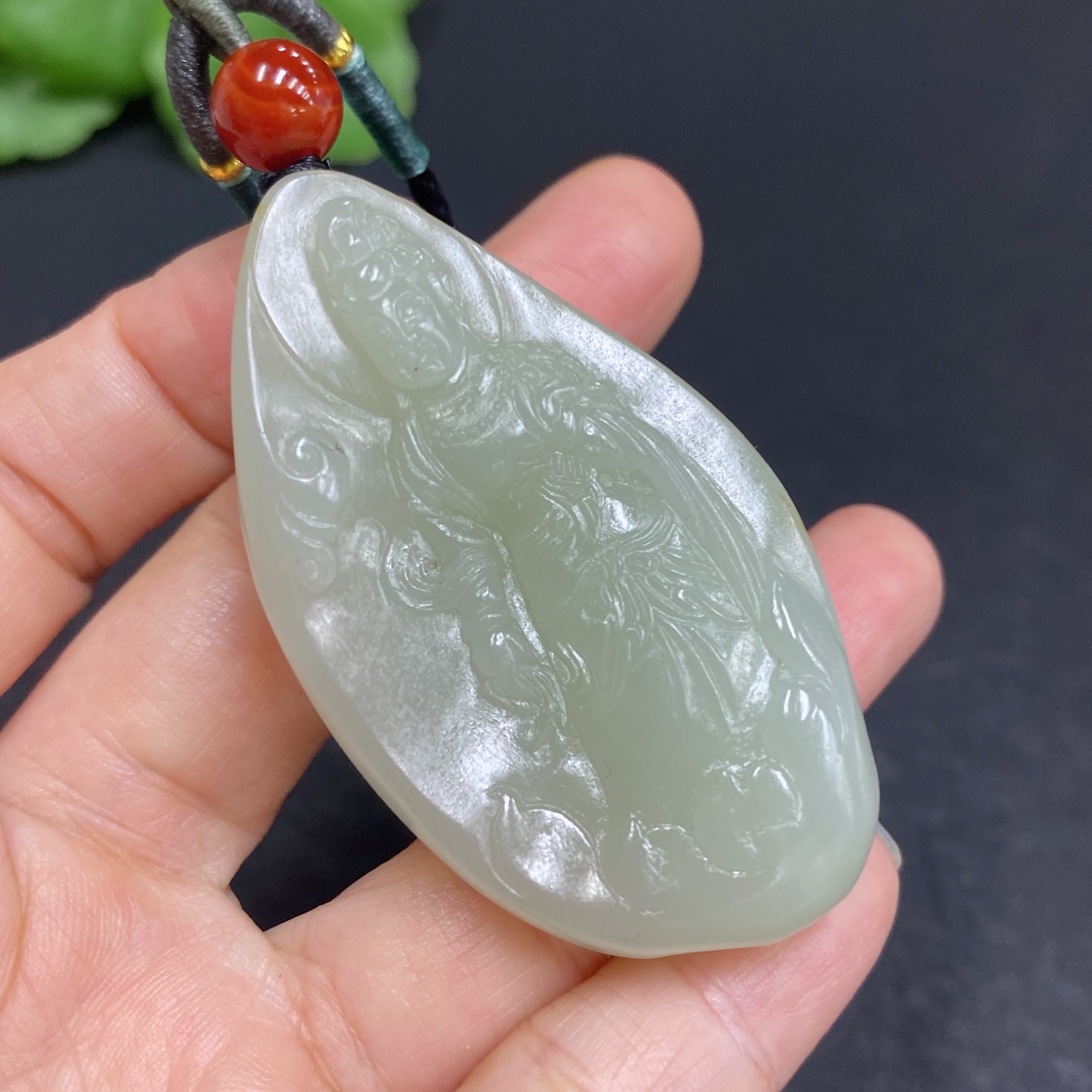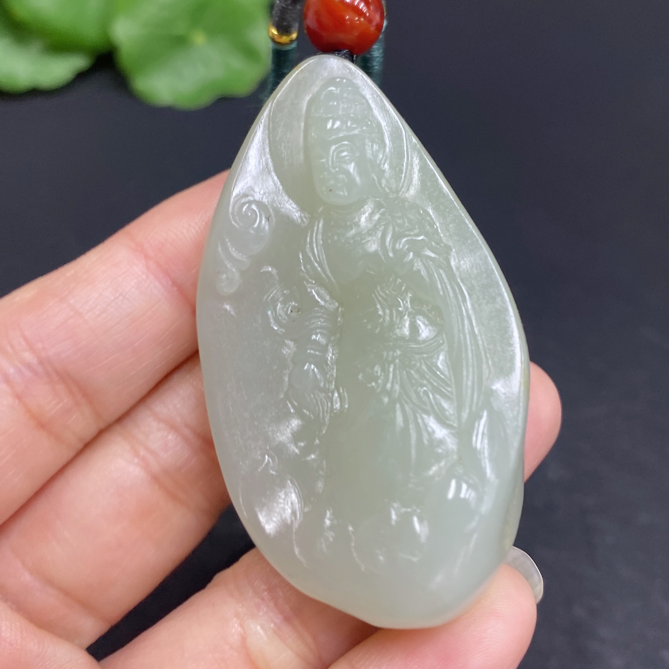 Hetian Jade Pendant Guanyin Total Weight (including rope) Approx. 40.3g Undetermined Skin Color Cause