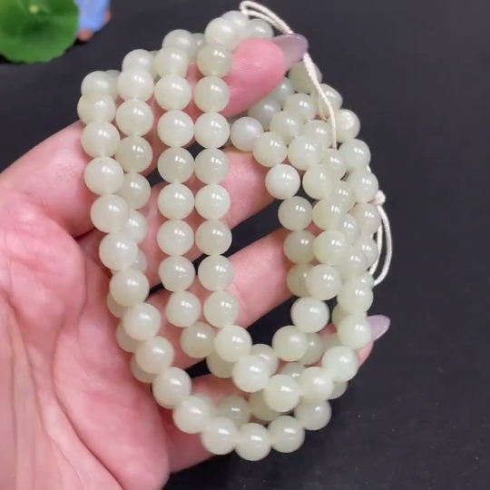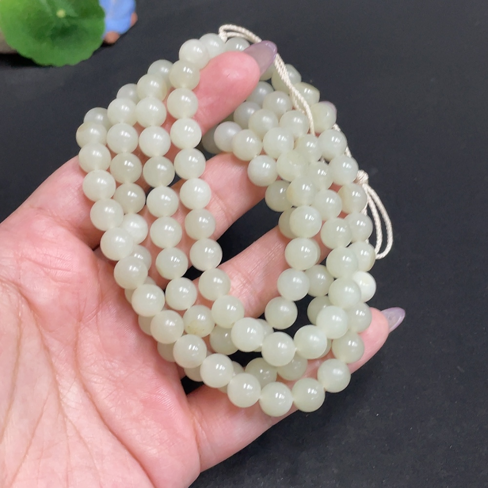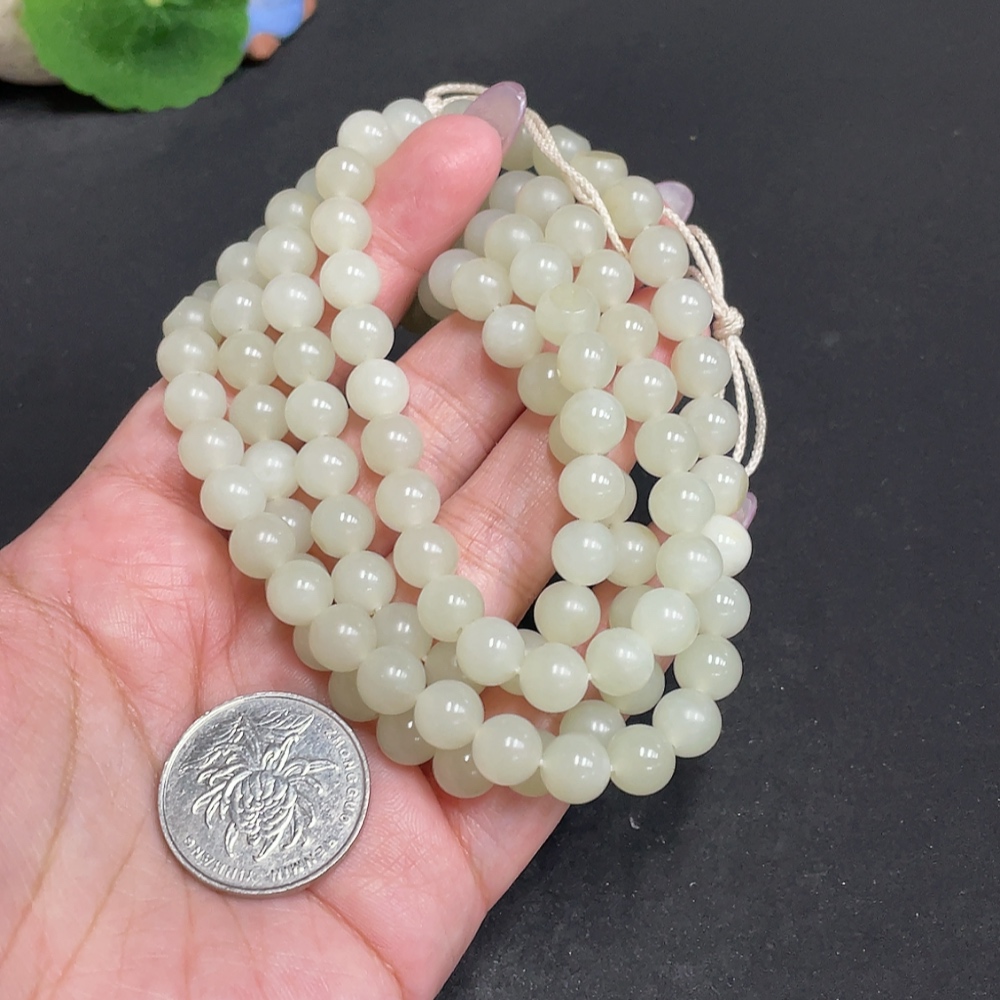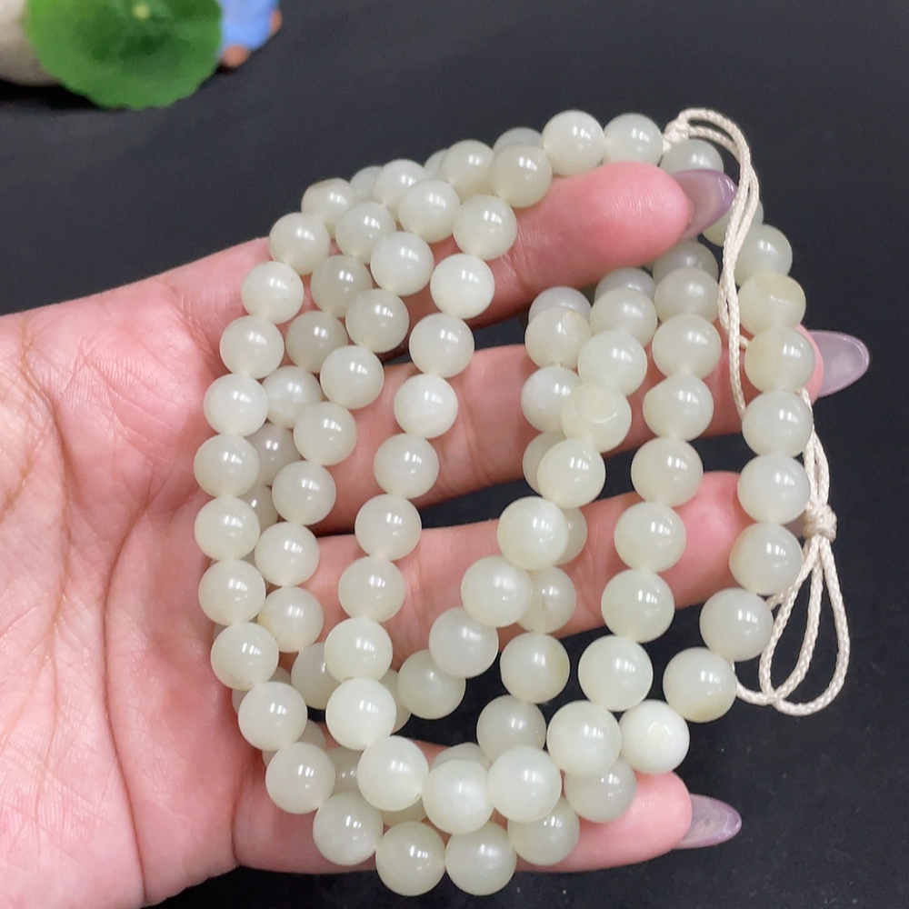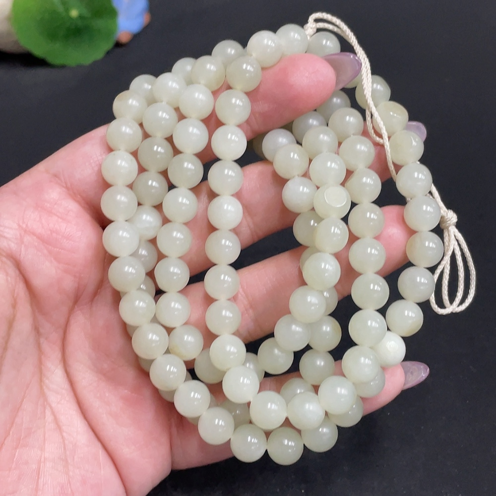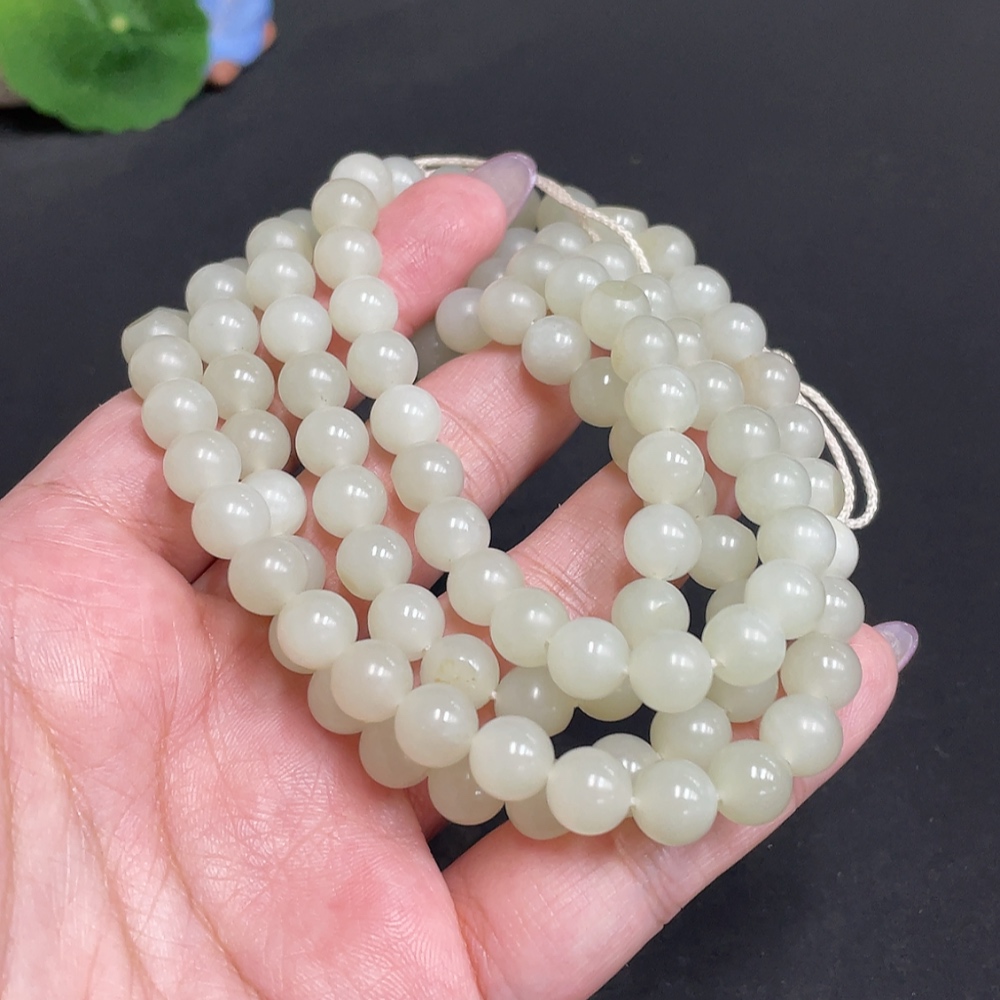 Hetian Jade Bead Necklace Approx. 7.7mm Total Weight About 86g