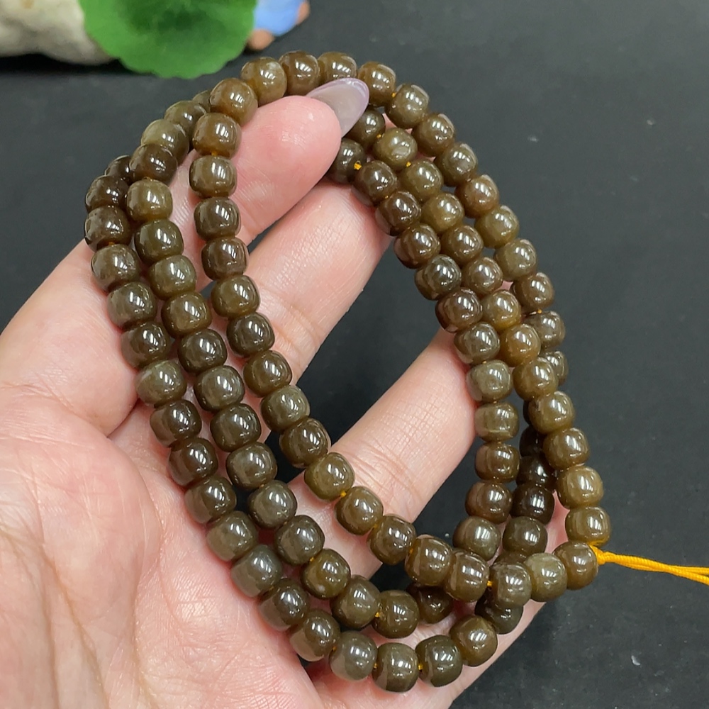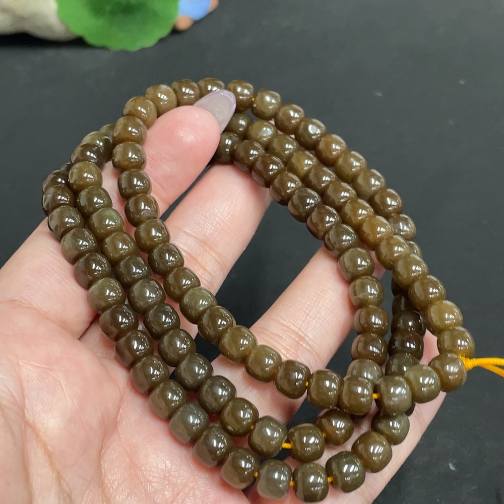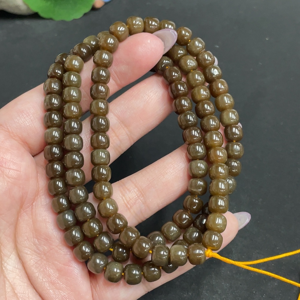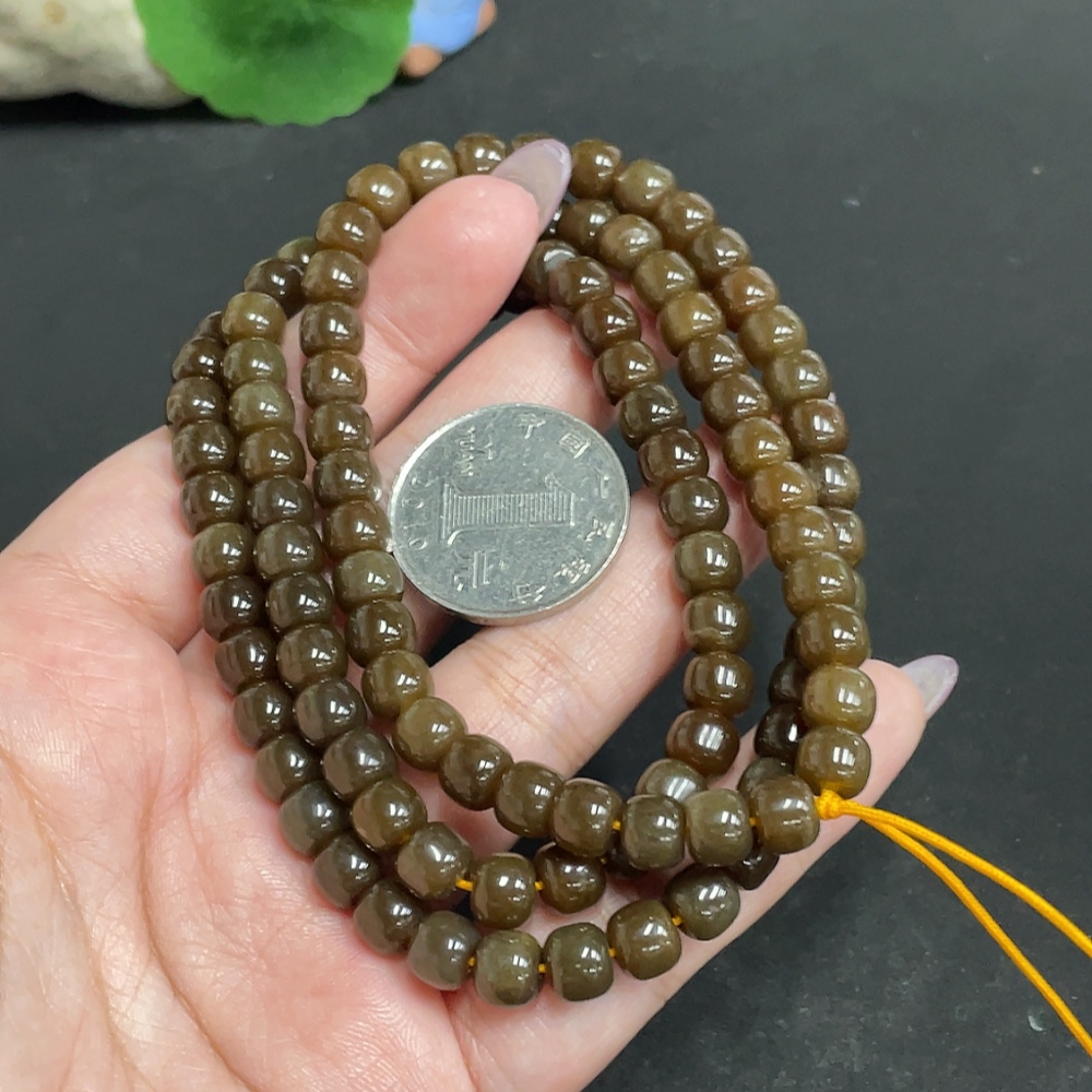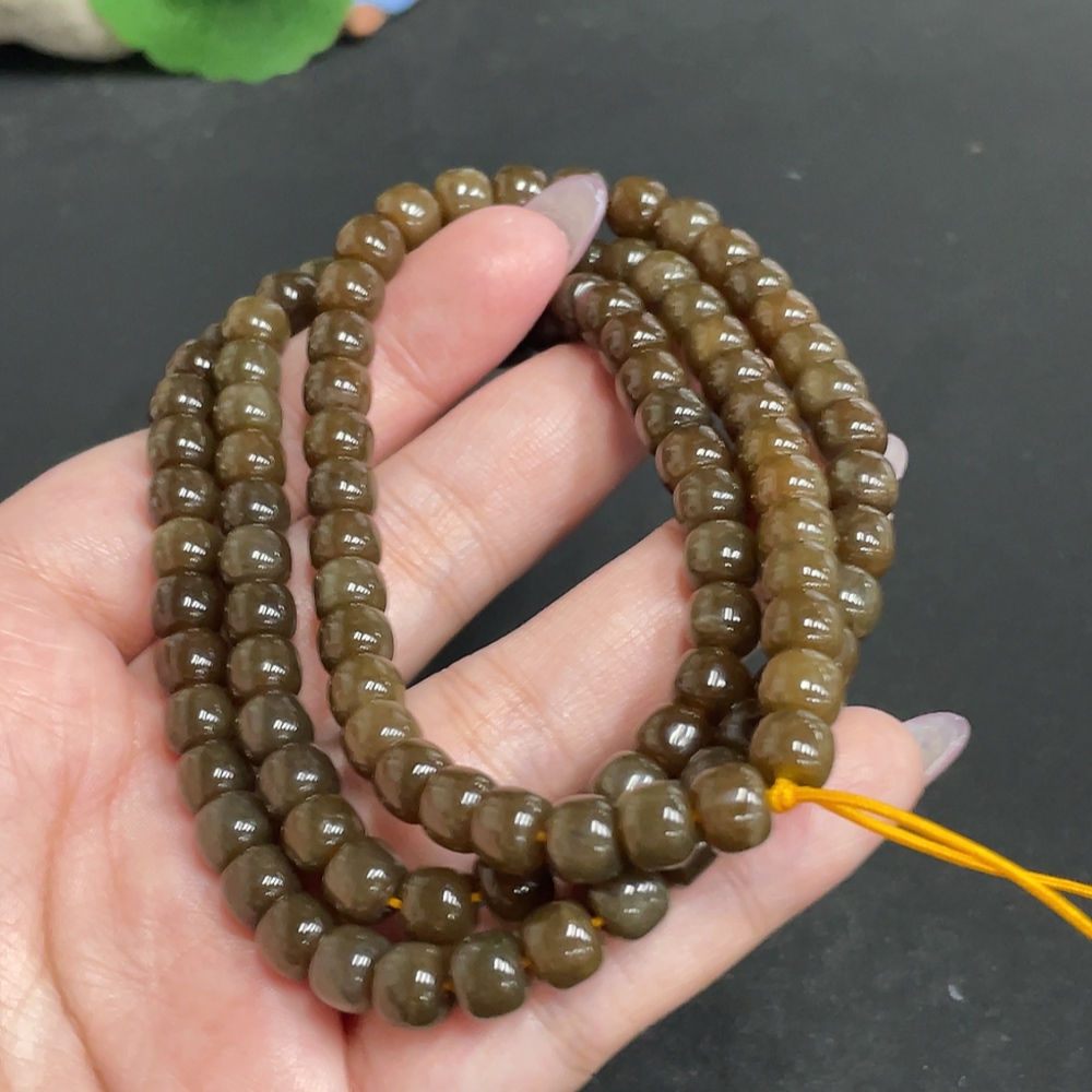Hetian Jade Bead Necklace, Approx. 6.8 mm, Total Weight Approx. 58.3g