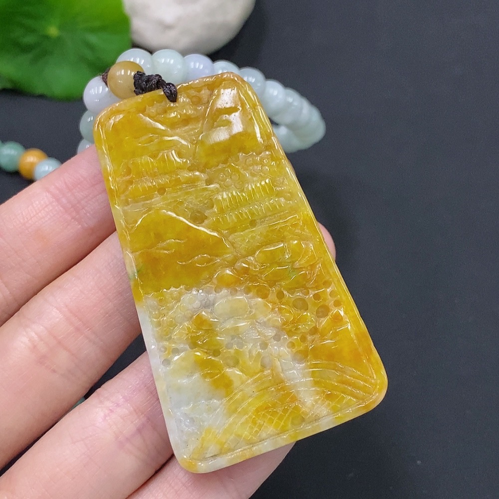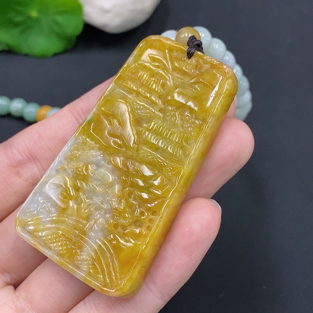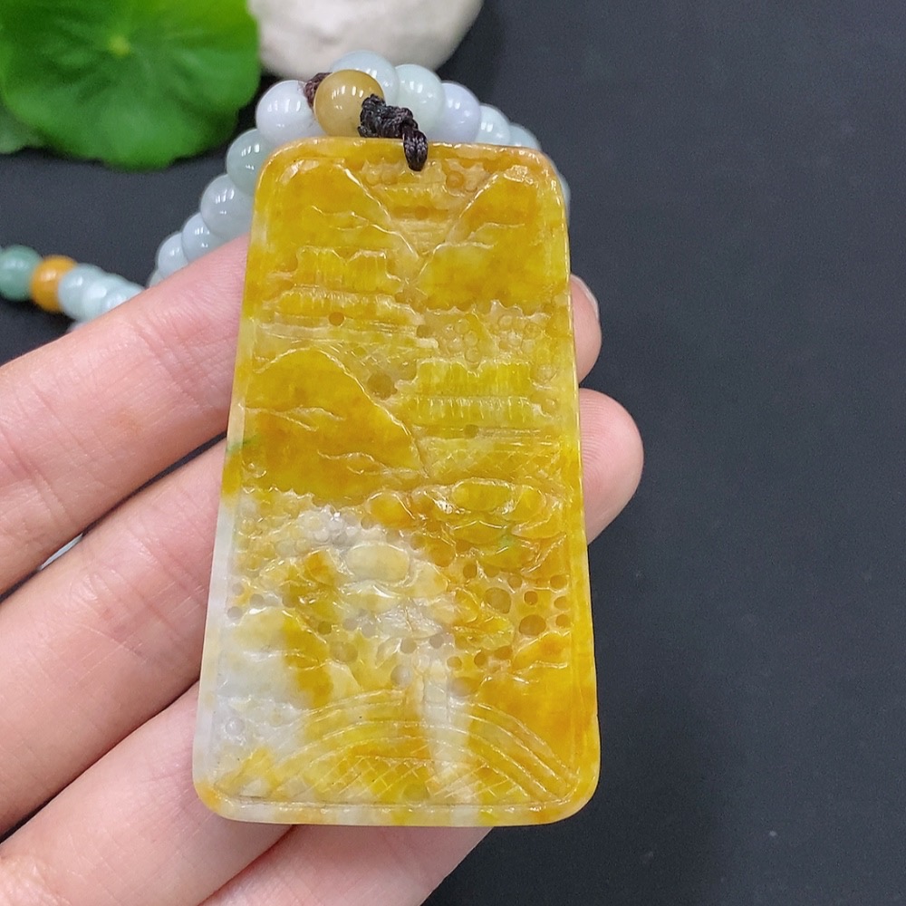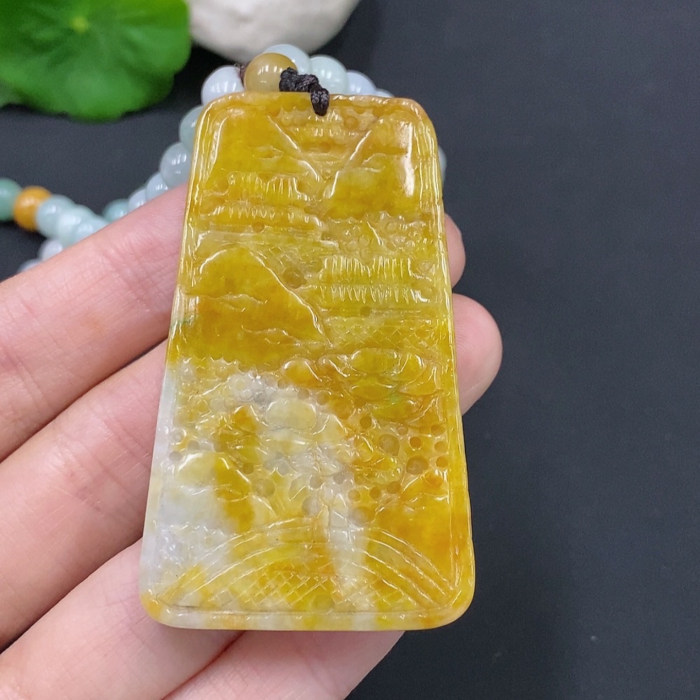 Jadeite Landscape Pendant Total Weight Approx. 117.6g (Including Rope) Color Origin Undetermined