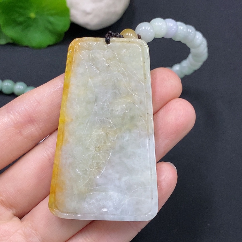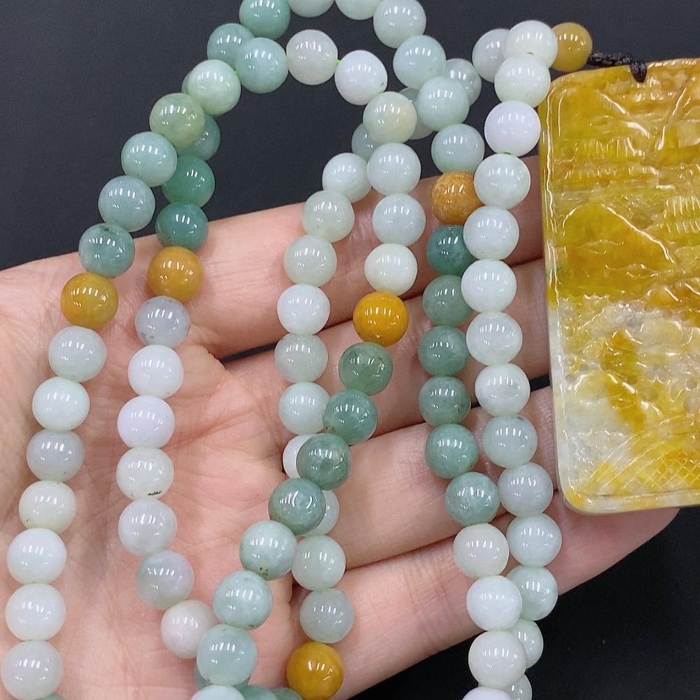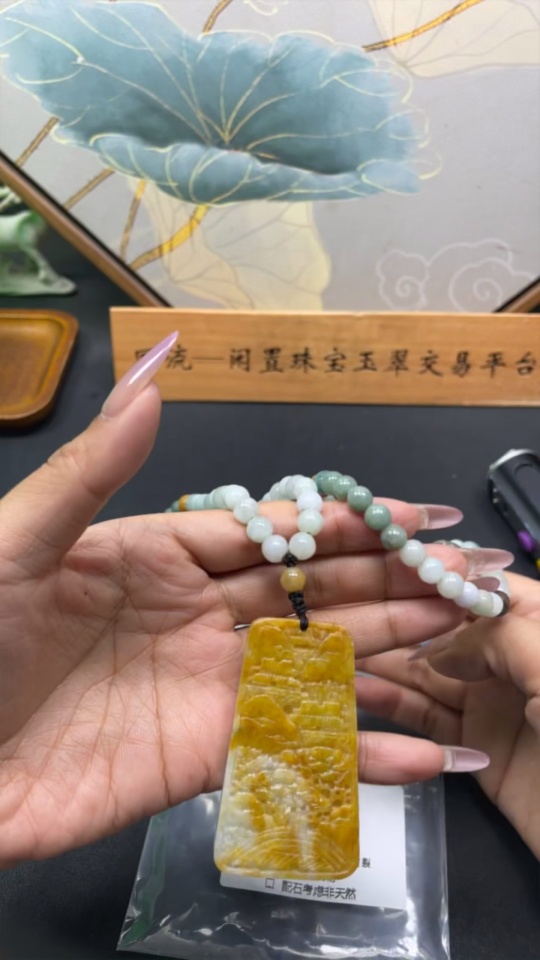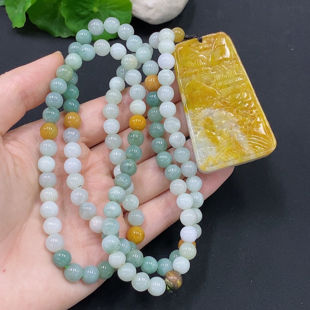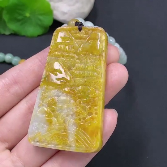 Jadeite Landscape Pendant Total Weight Approx. 117.6g (Including Rope) Color Origin Undetermined