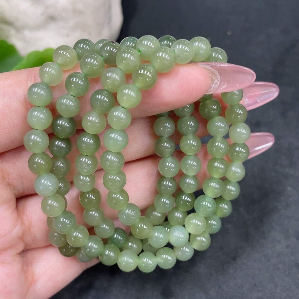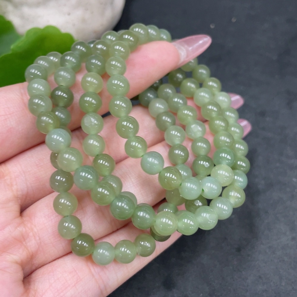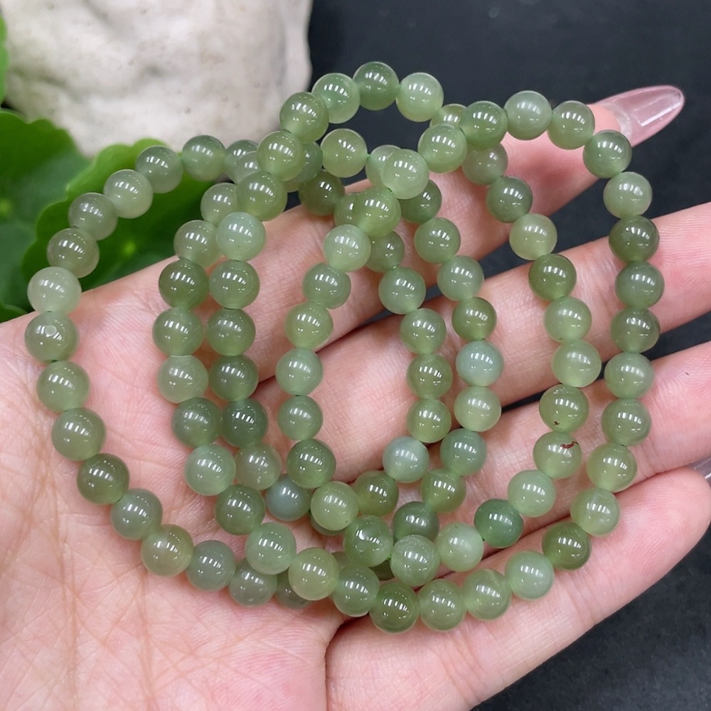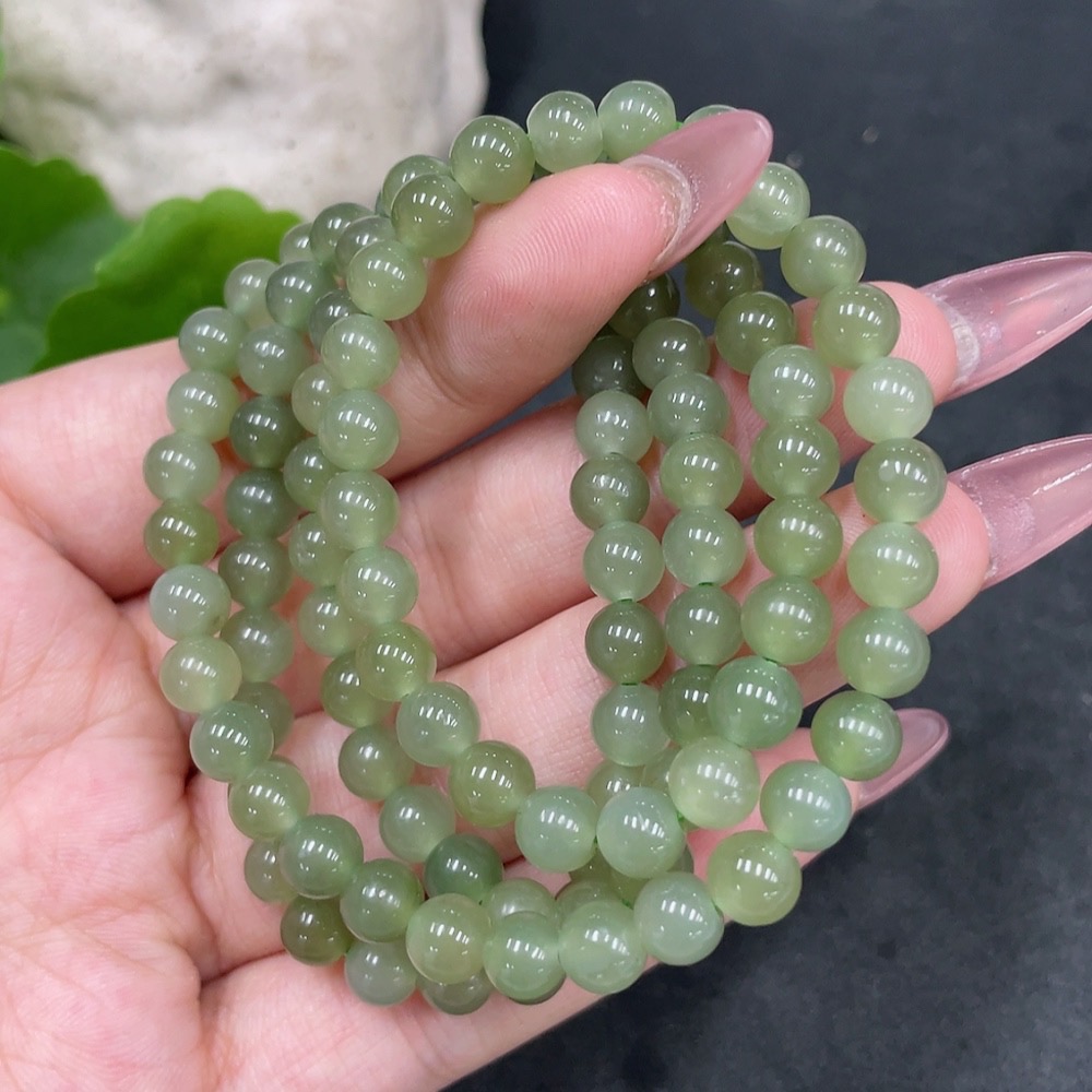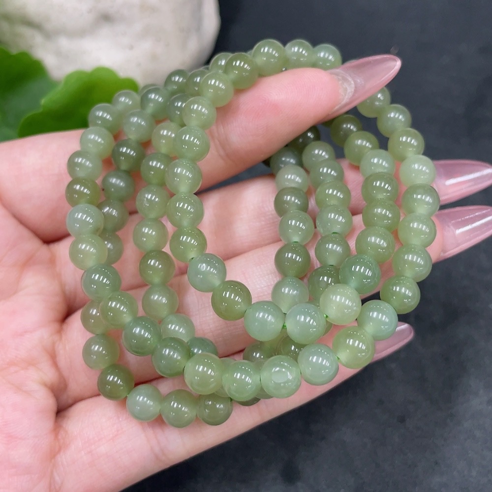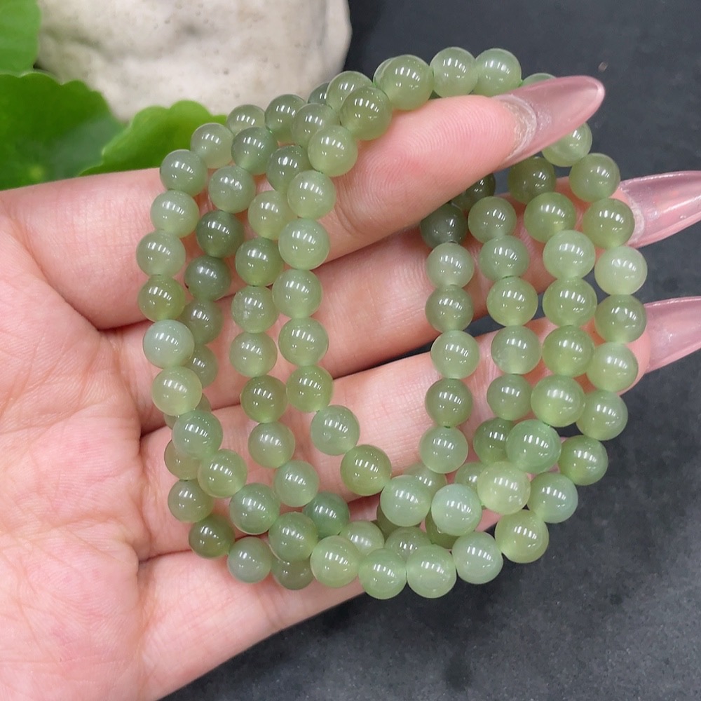 Hetian Jade Bead Necklace Approx. 6mm Total Weight About 34.7g