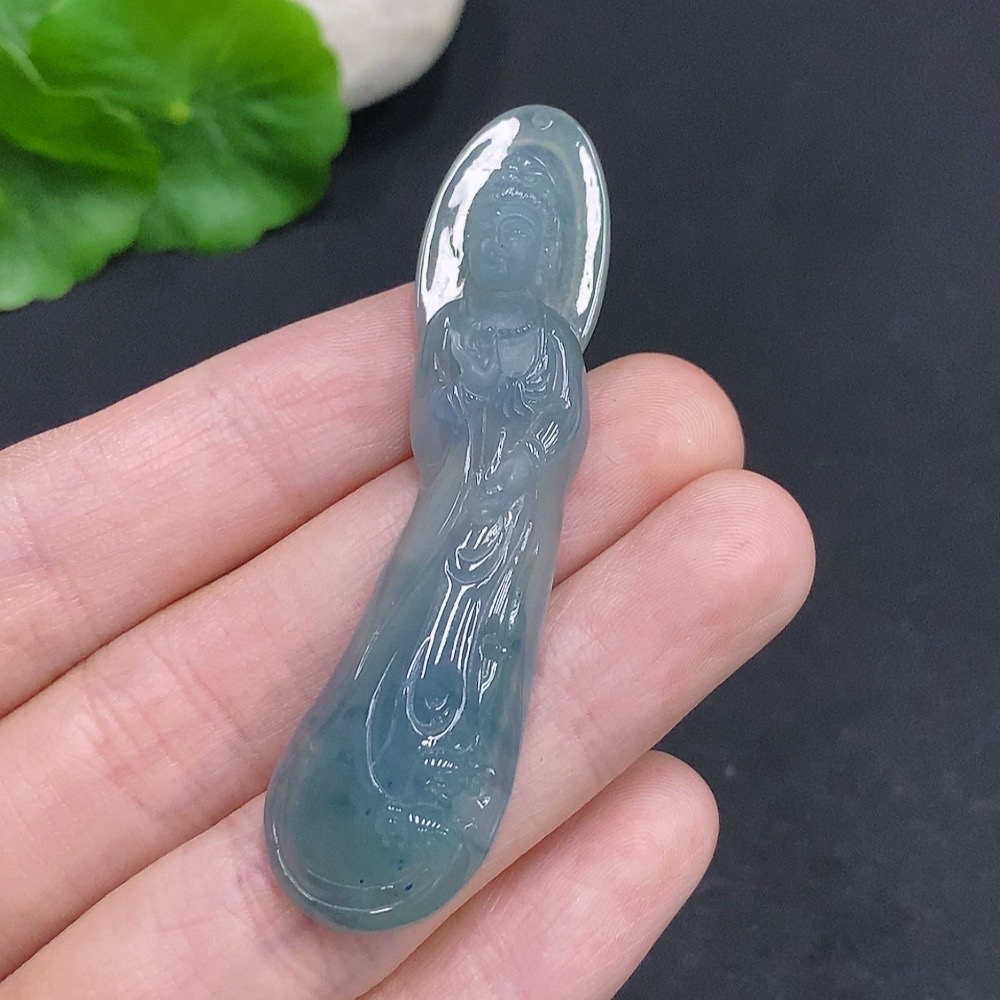 Jadeite Guanyin Pendant, Total Weight Approximately 11.1g