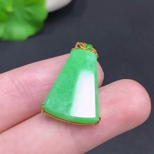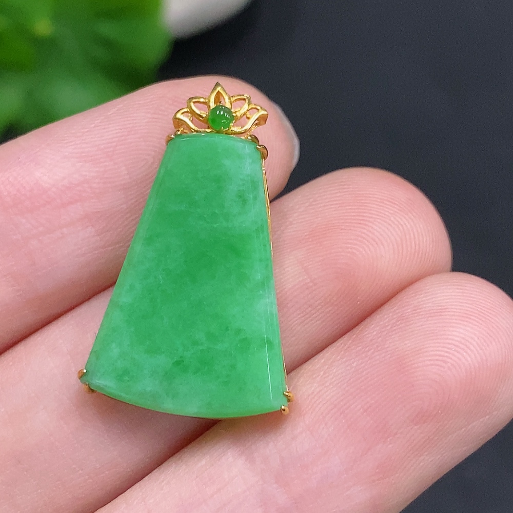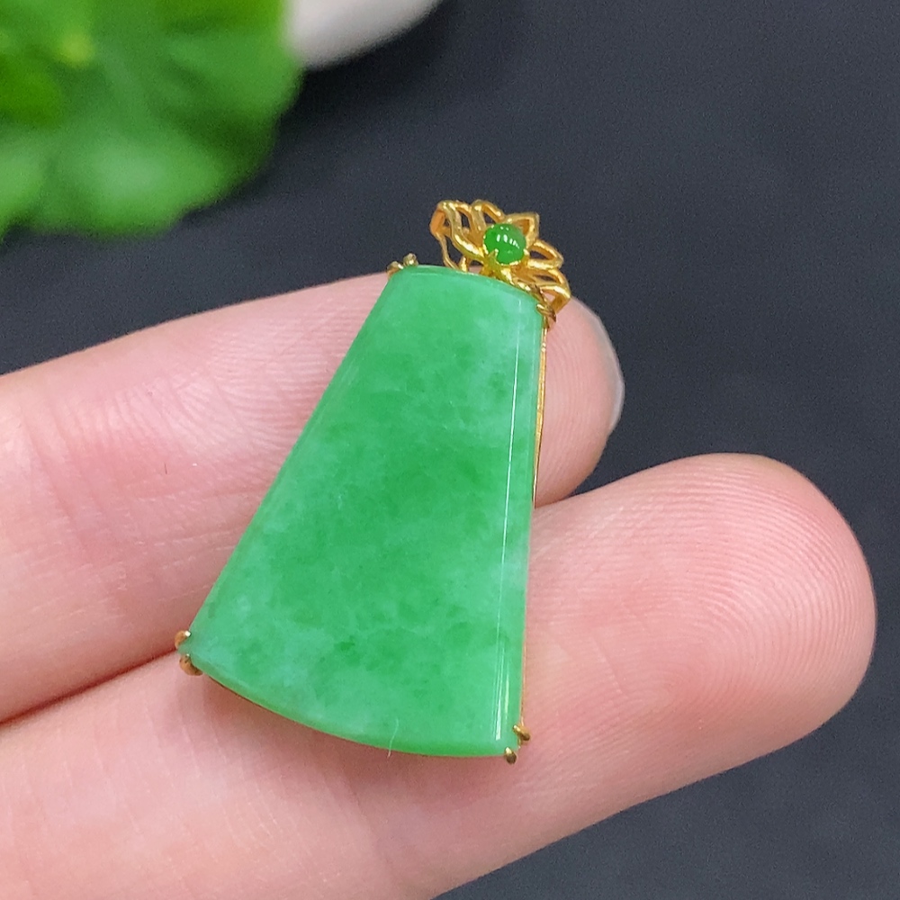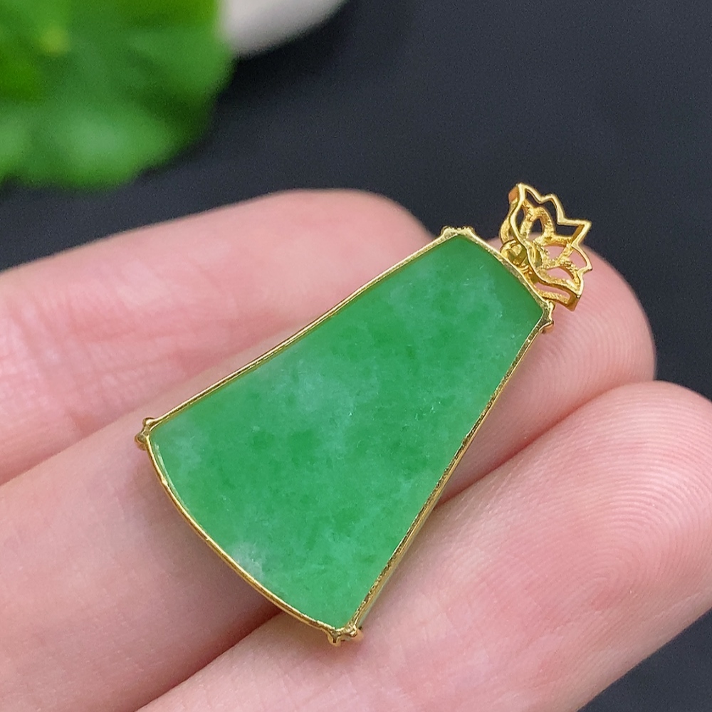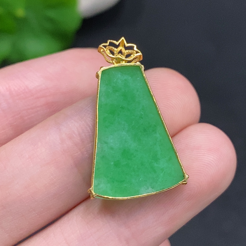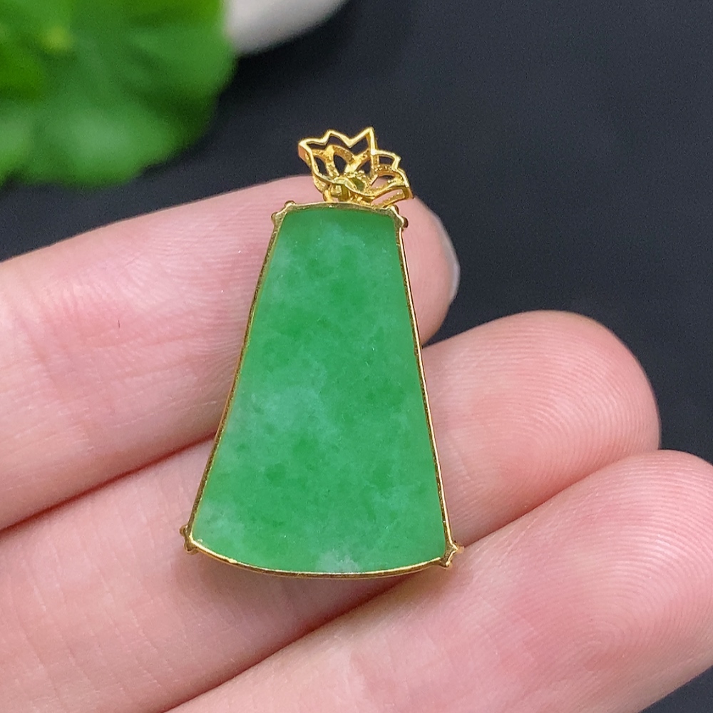 Jadeite Plain Pendant Necklace with 18K Gold, Total Weight Approx. 2.5g
