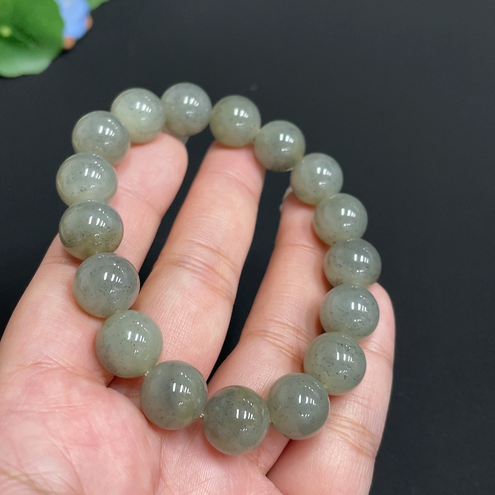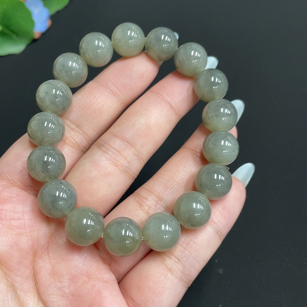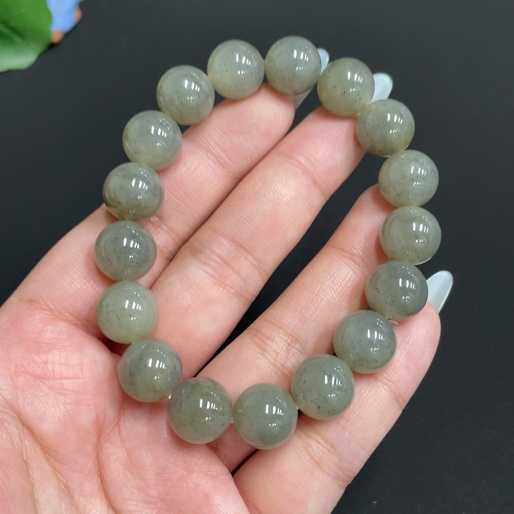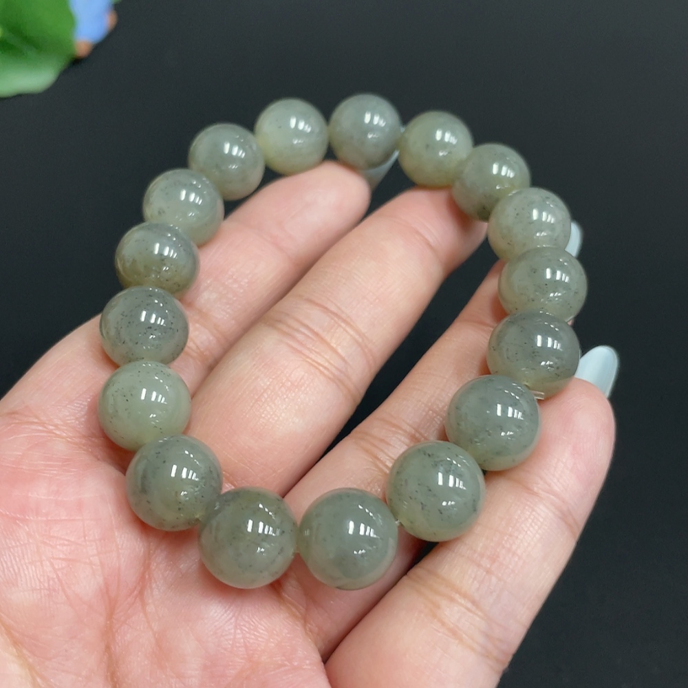 Hetian Jade Bracelet, approx. 11.8mm beads, total weight about 46g