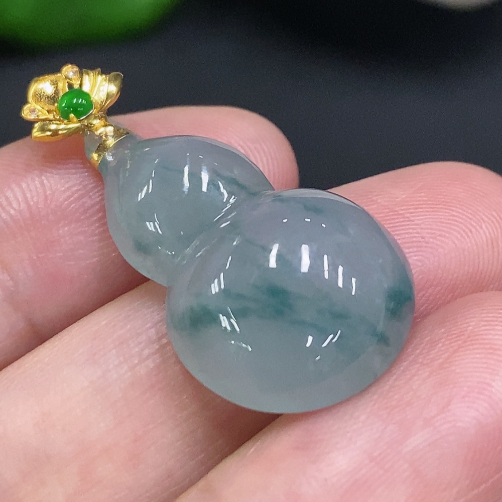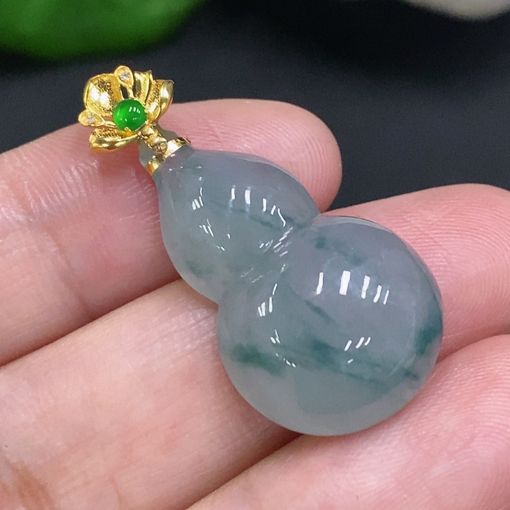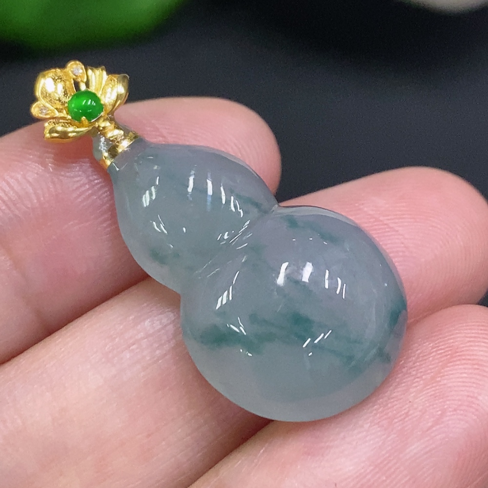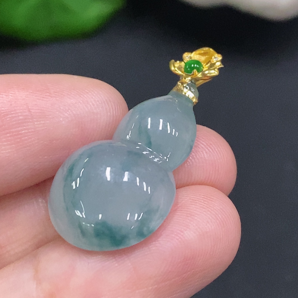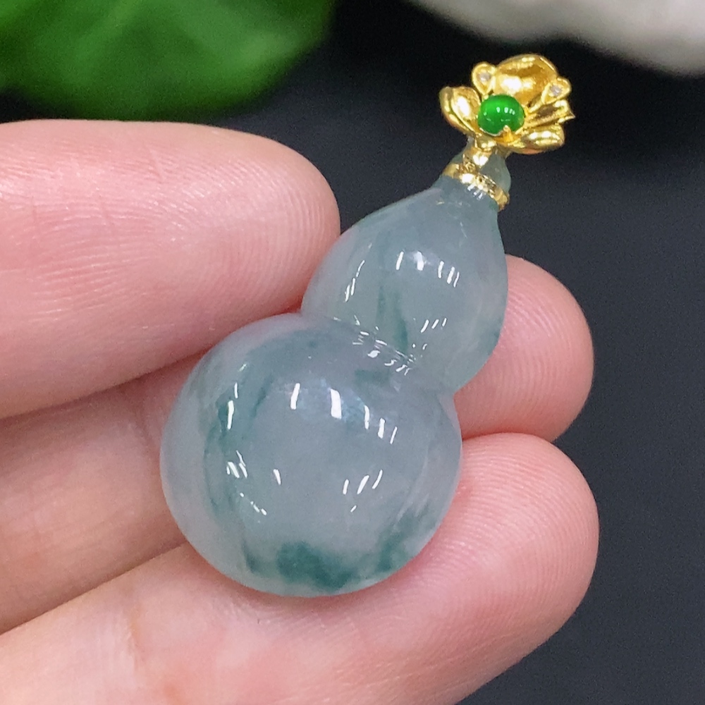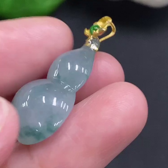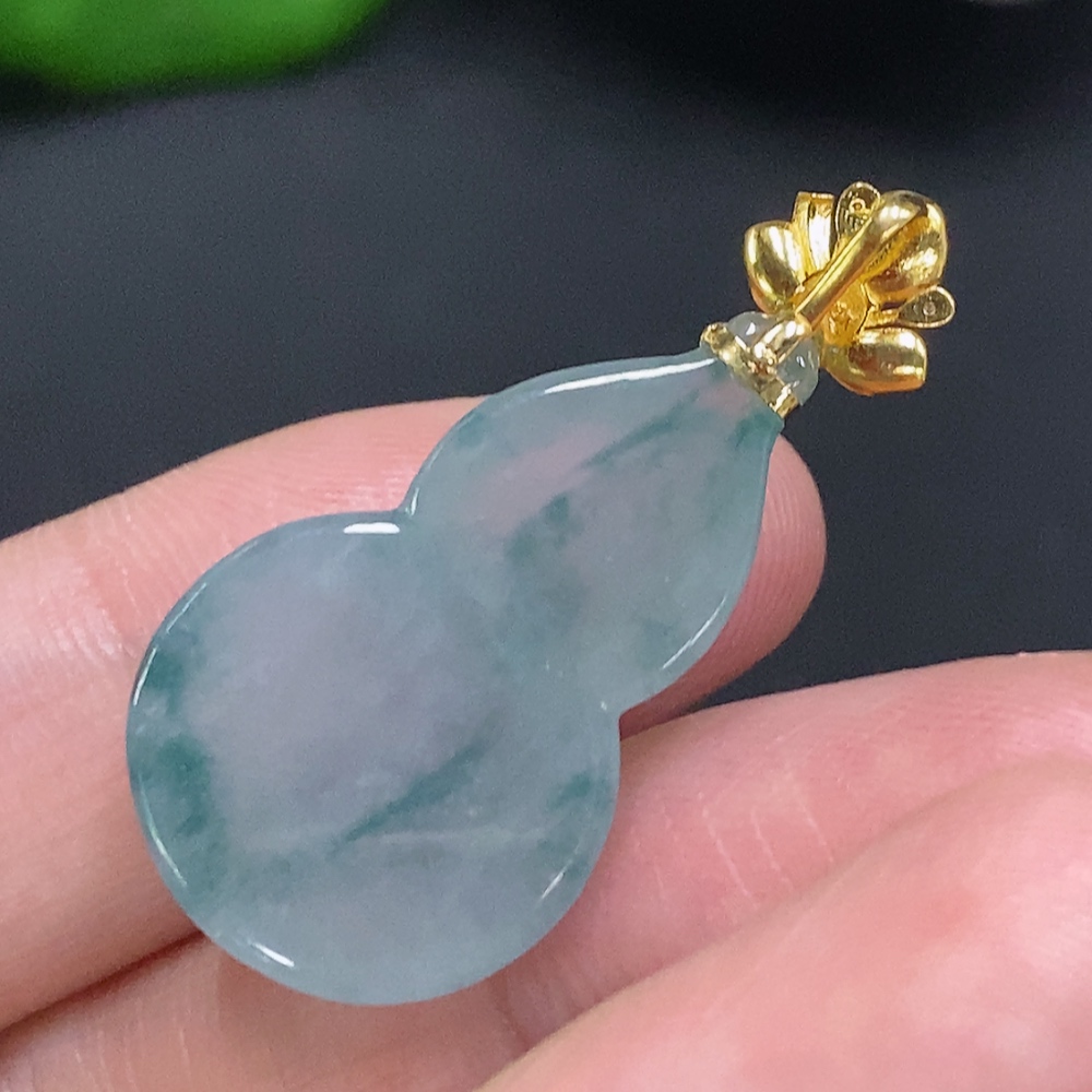 Jadeite Gourd Pendant with 18K Gold Clasp, Total Weight Approximately 4.5g